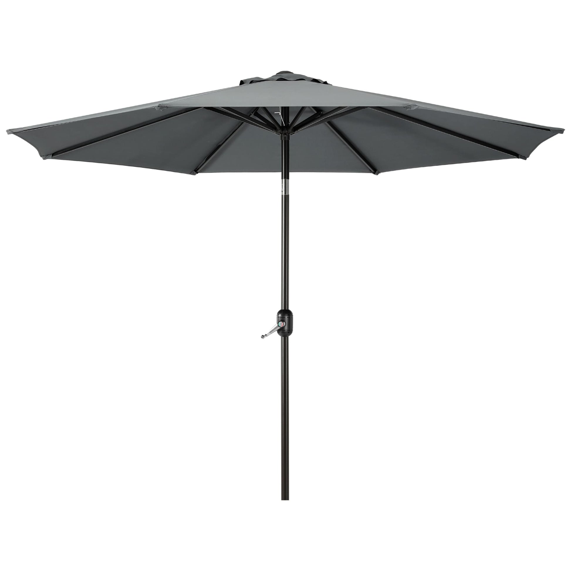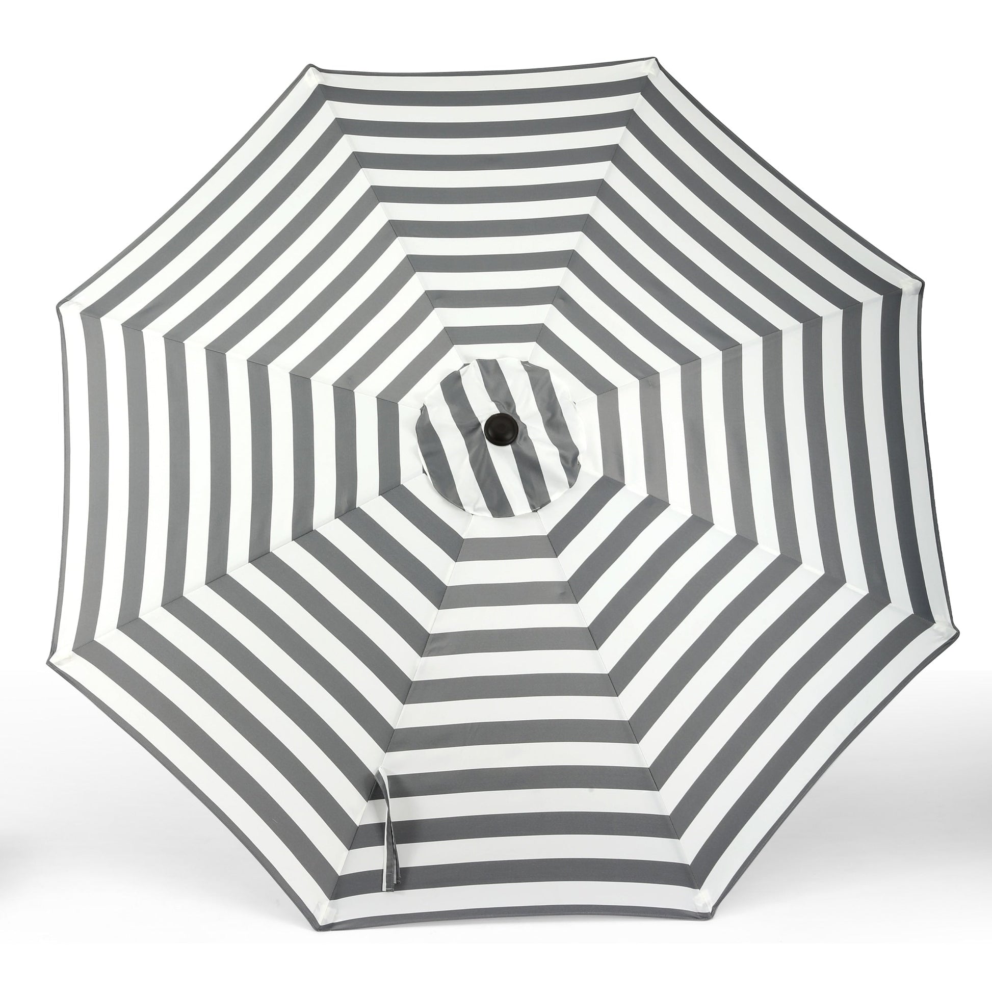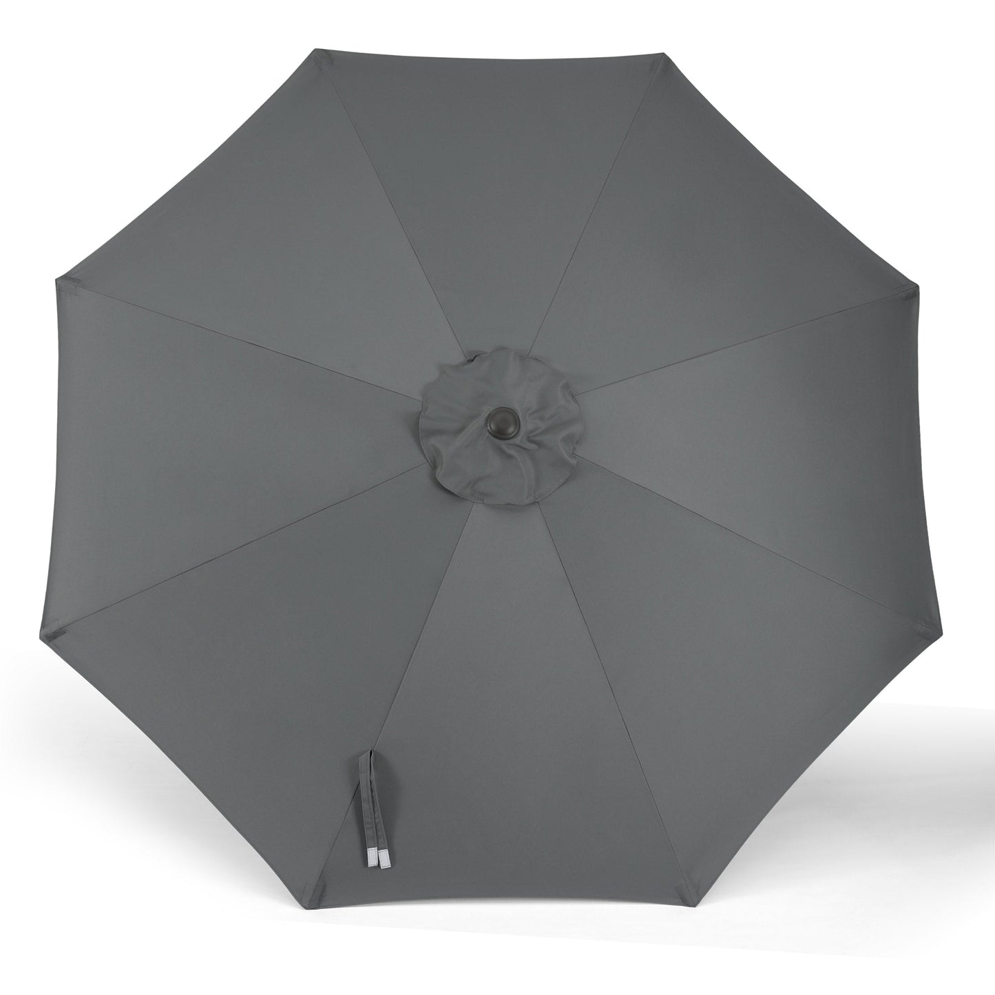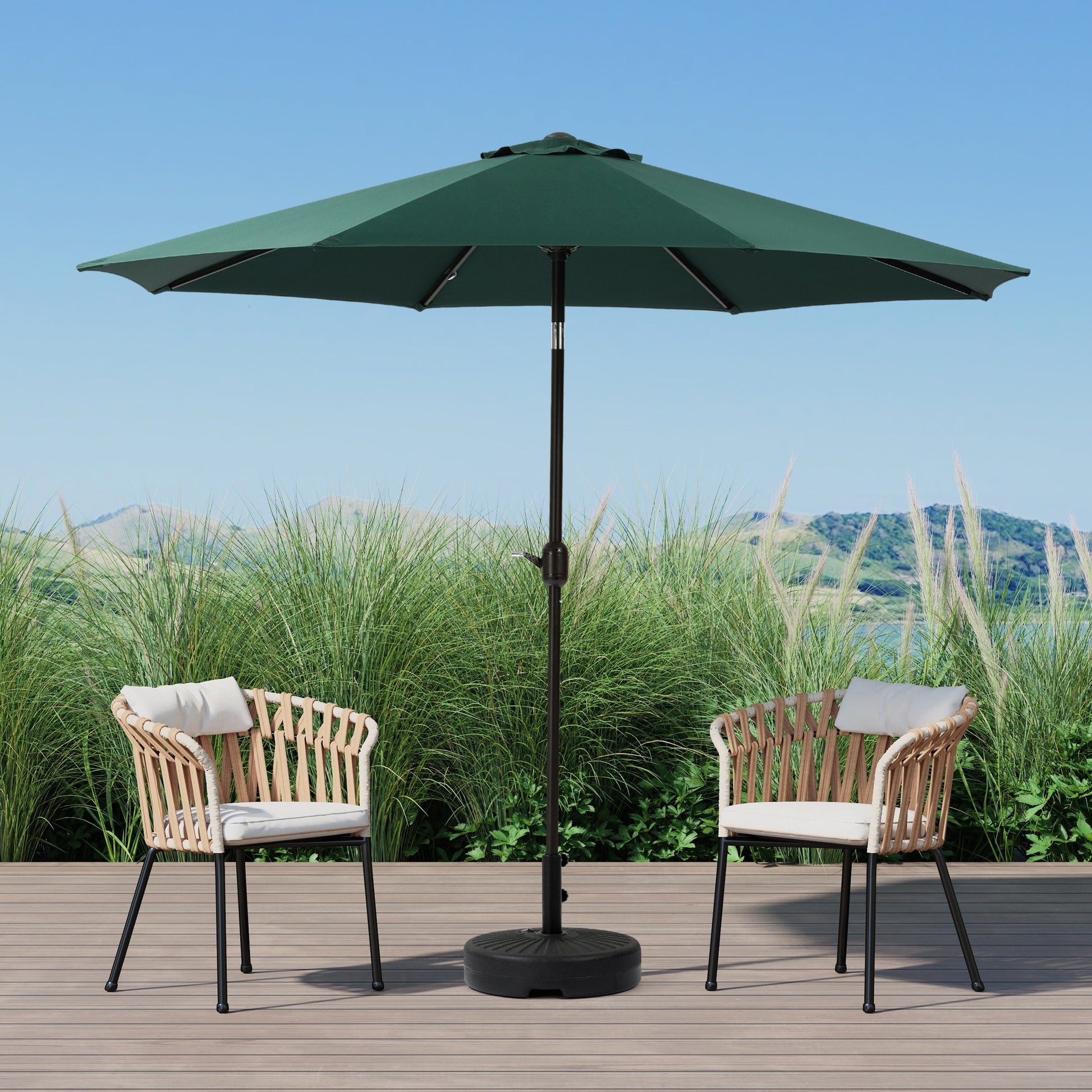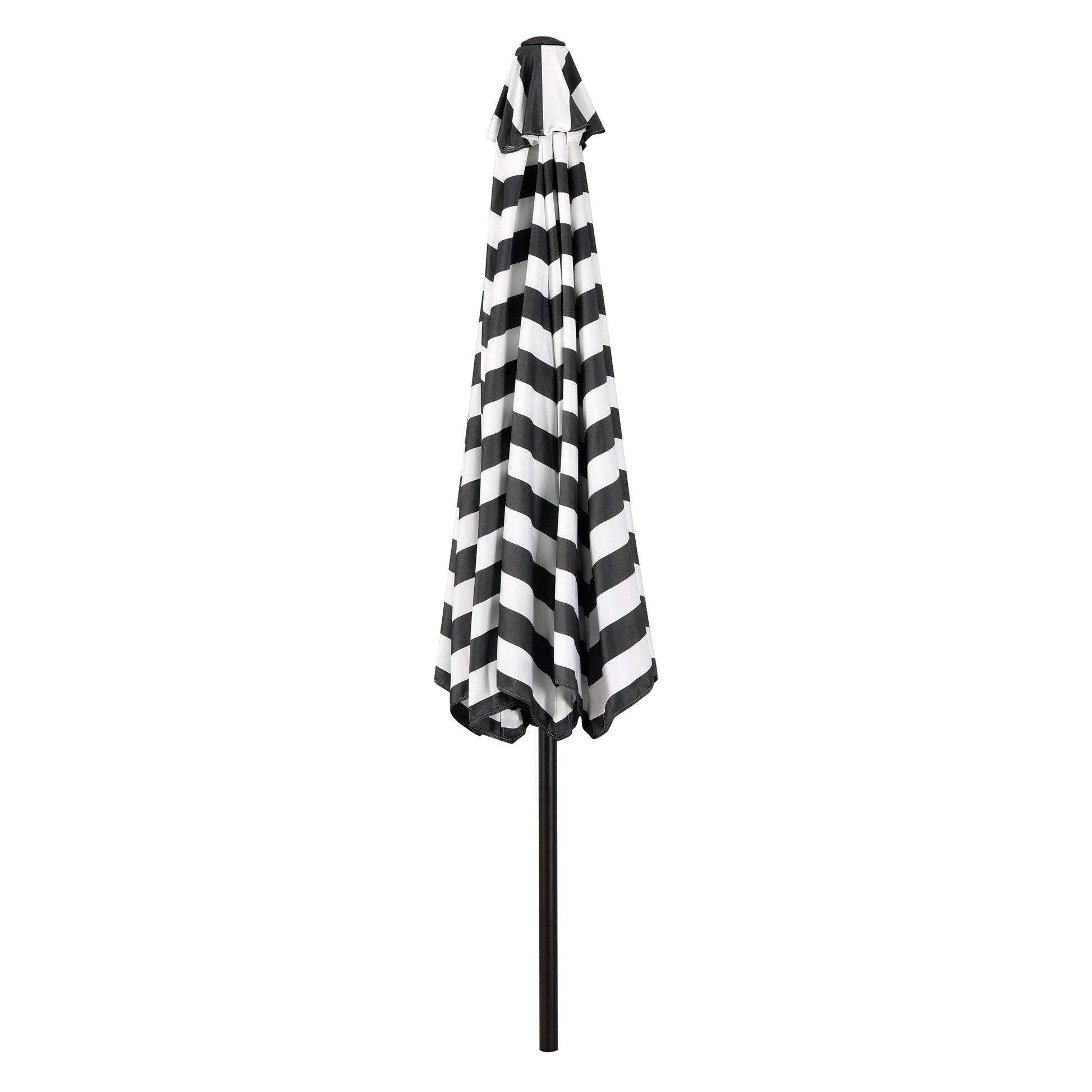 Enjoy the sunshine and scenery while keeping cool under this 9-foot steel outdoor patio table umbrella. Designed with style and durability in mind, this piece is built with a rust- and water-resistant steel frame and polyester fabric that blocks up to 95% of UV rays. The easy-to-crank lift mechanism allows for a simple open and close system when not in use. This 9-foot umbrella is perfect for your patio, garden table, outdoor dining table, pool, or lounge area. Available in multiple colors to fit your décor needs.