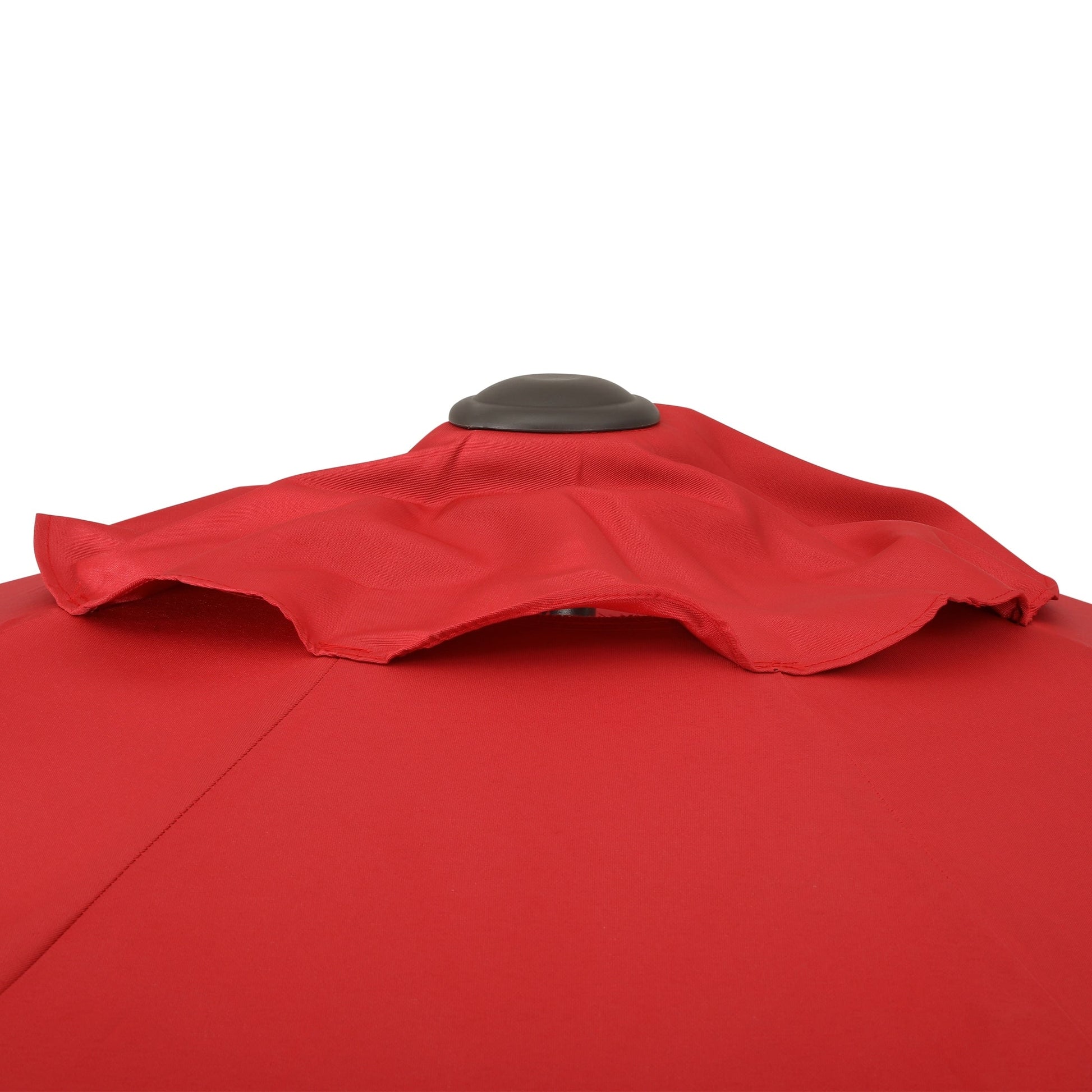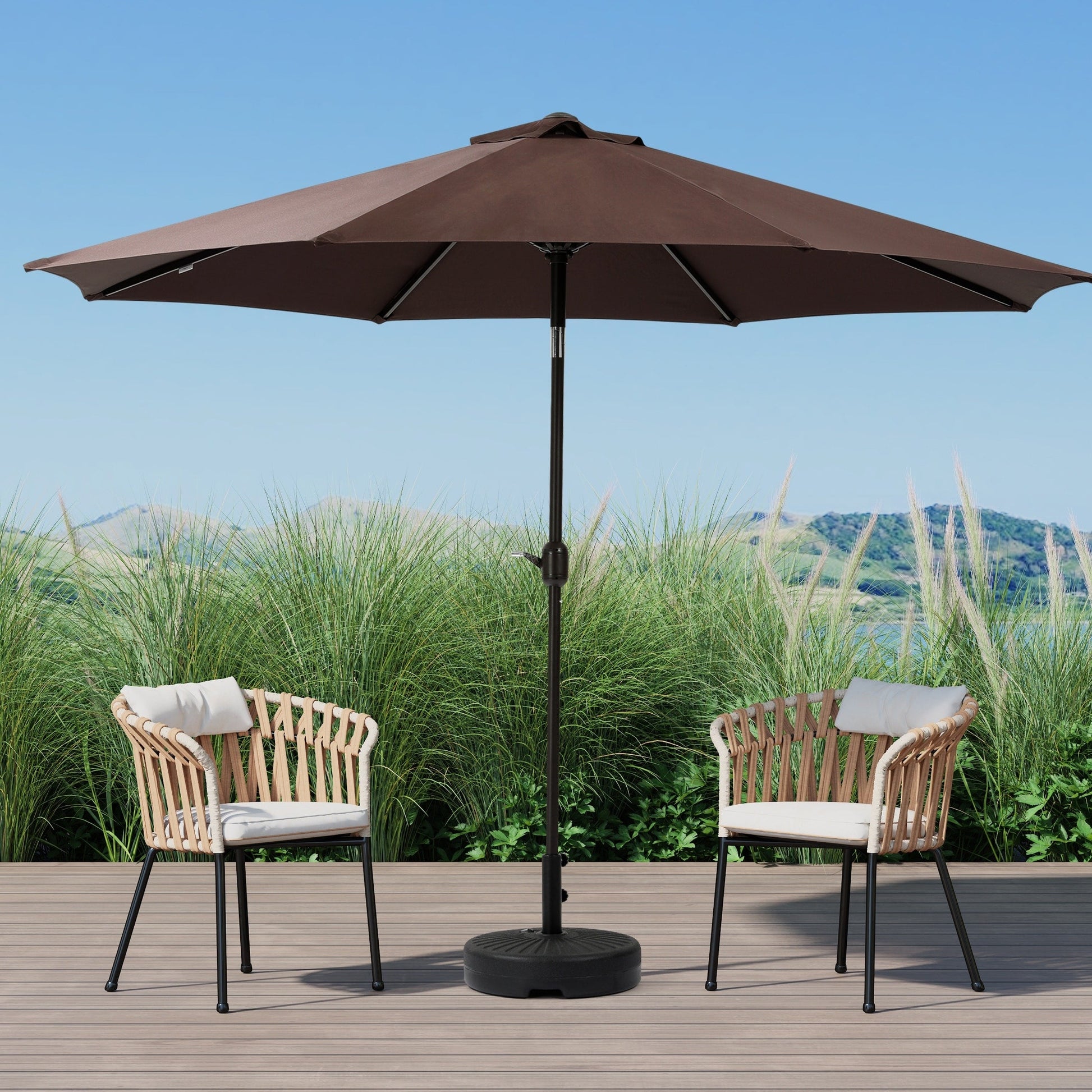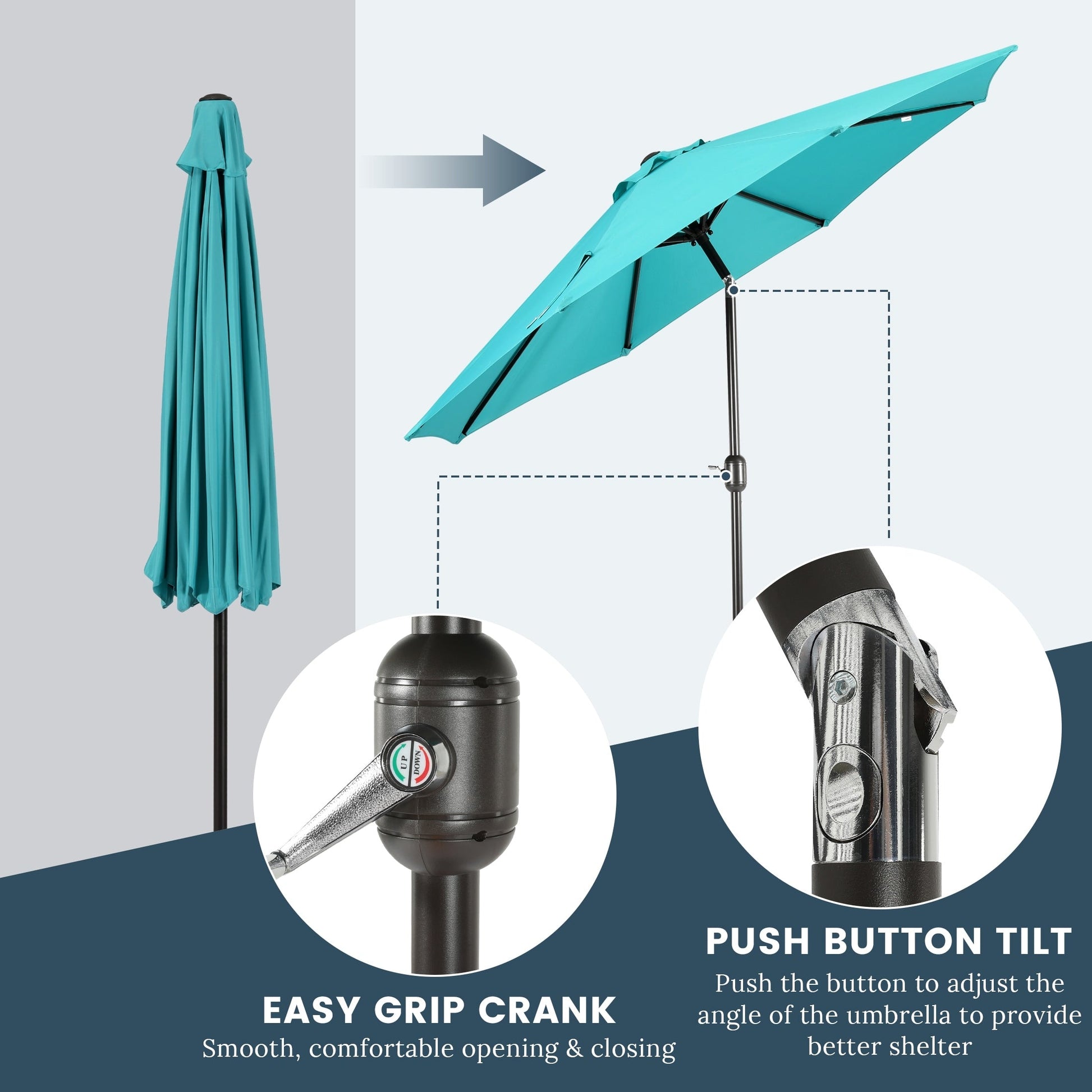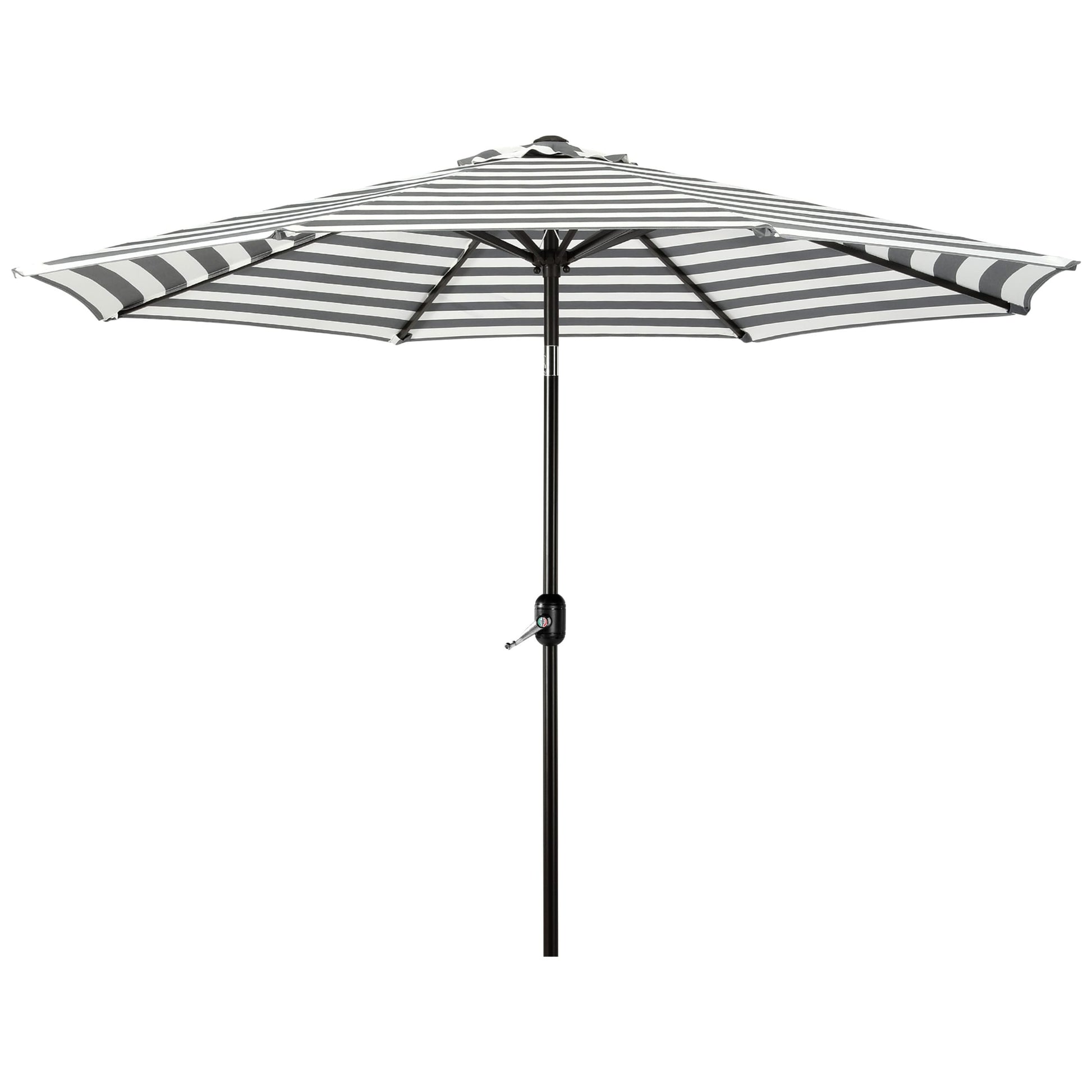 Enjoy the sunshine and scenery while keeping cool under this 9-foot steel outdoor patio table umbrella. Designed with style and durability in mind, this piece is built with a rust- and water-resistant steel frame and polyester fabric that blocks up to 95% of UV rays. The easy-to-crank lift mechanism allows for a simple open and close system when not in use. This 9-foot umbrella is perfect for your patio, garden table, outdoor dining table, pool, or lounge area. Available in multiple colors to fit your décor needs.