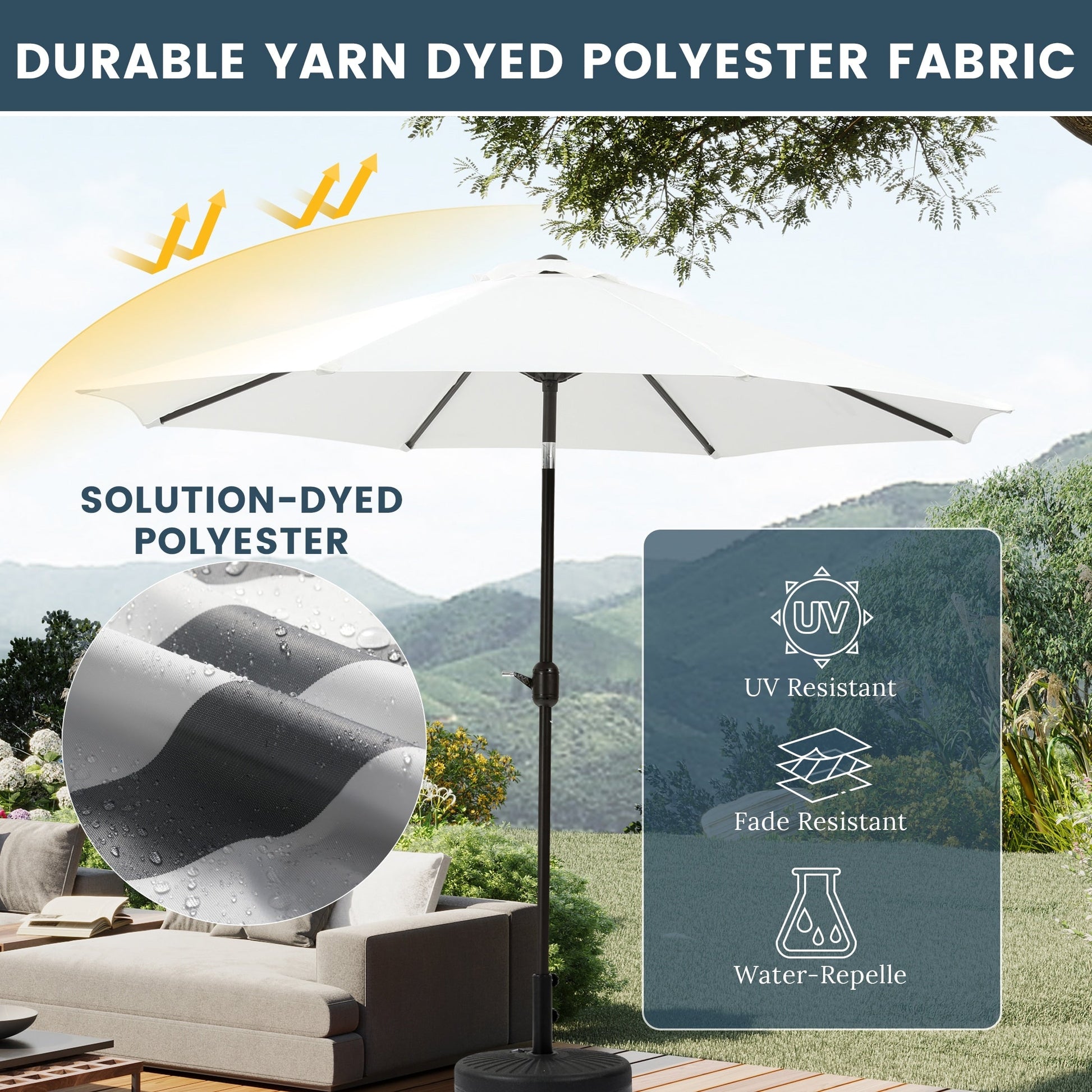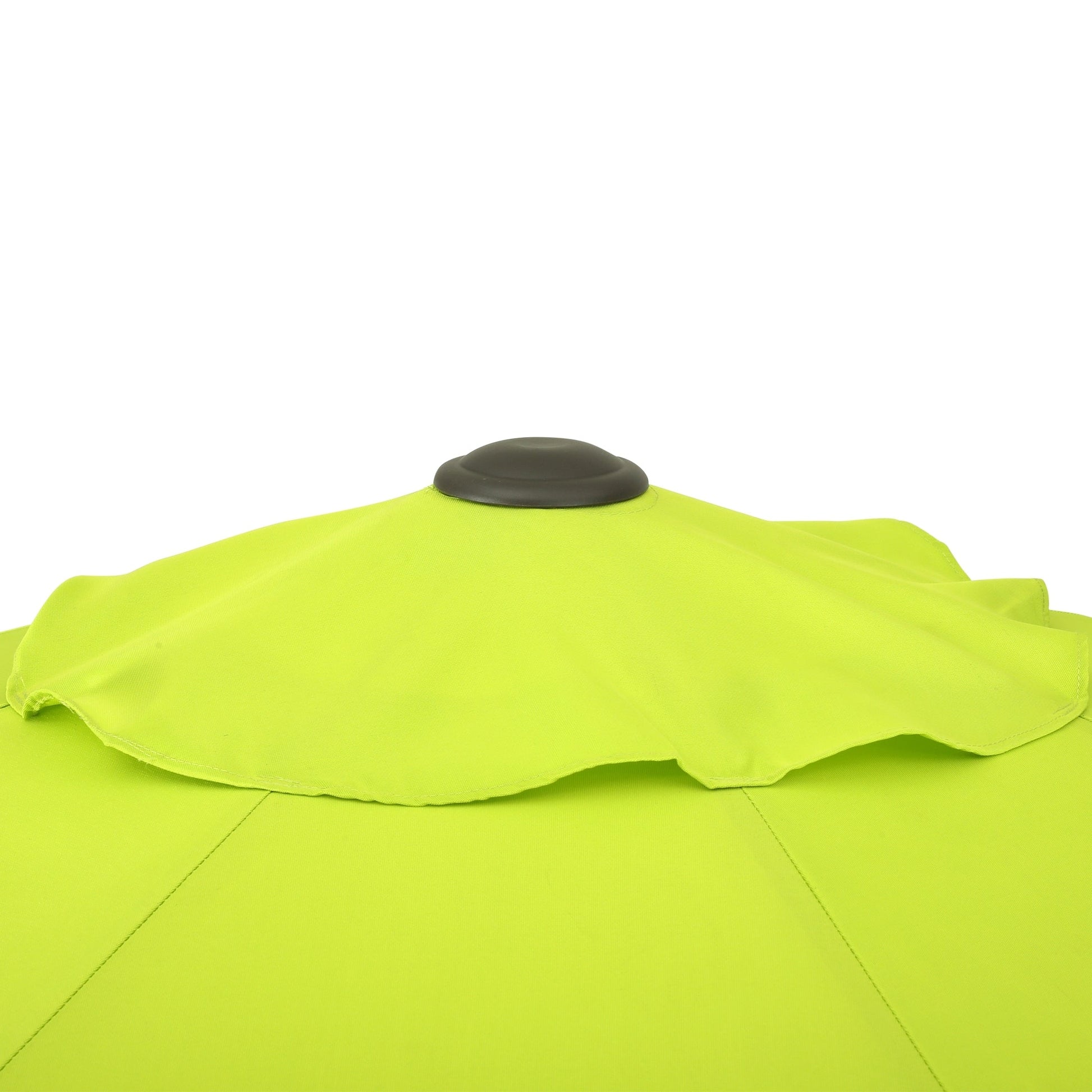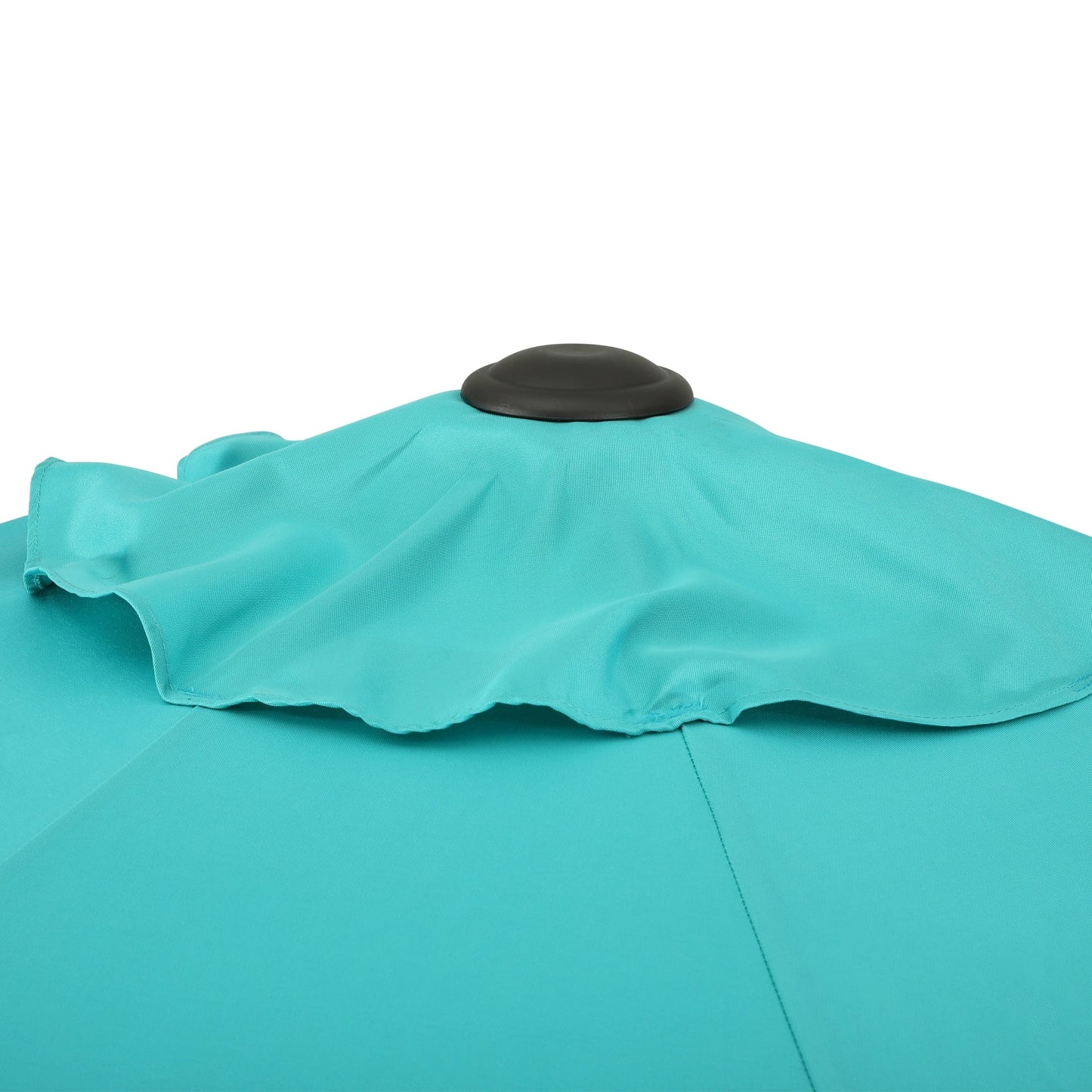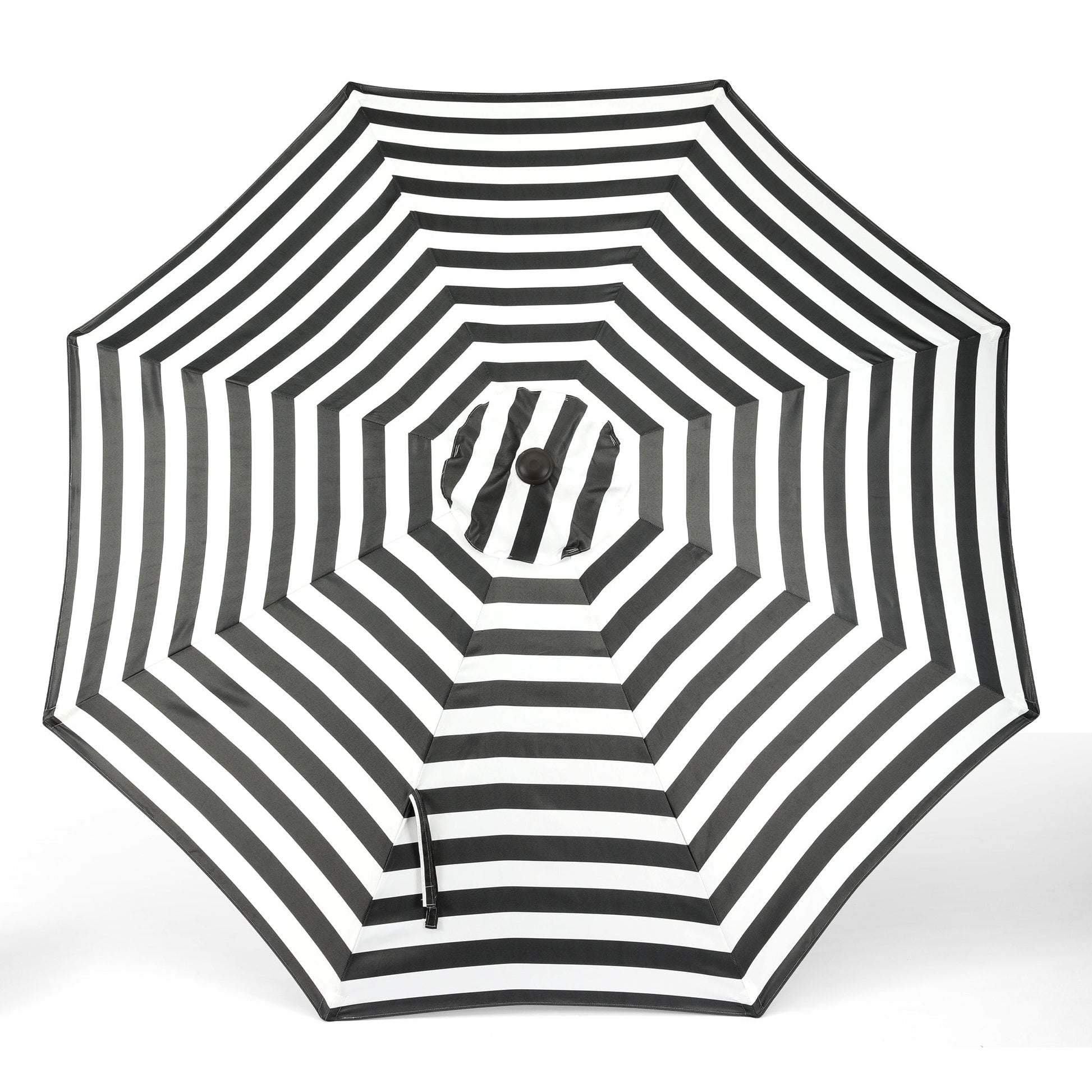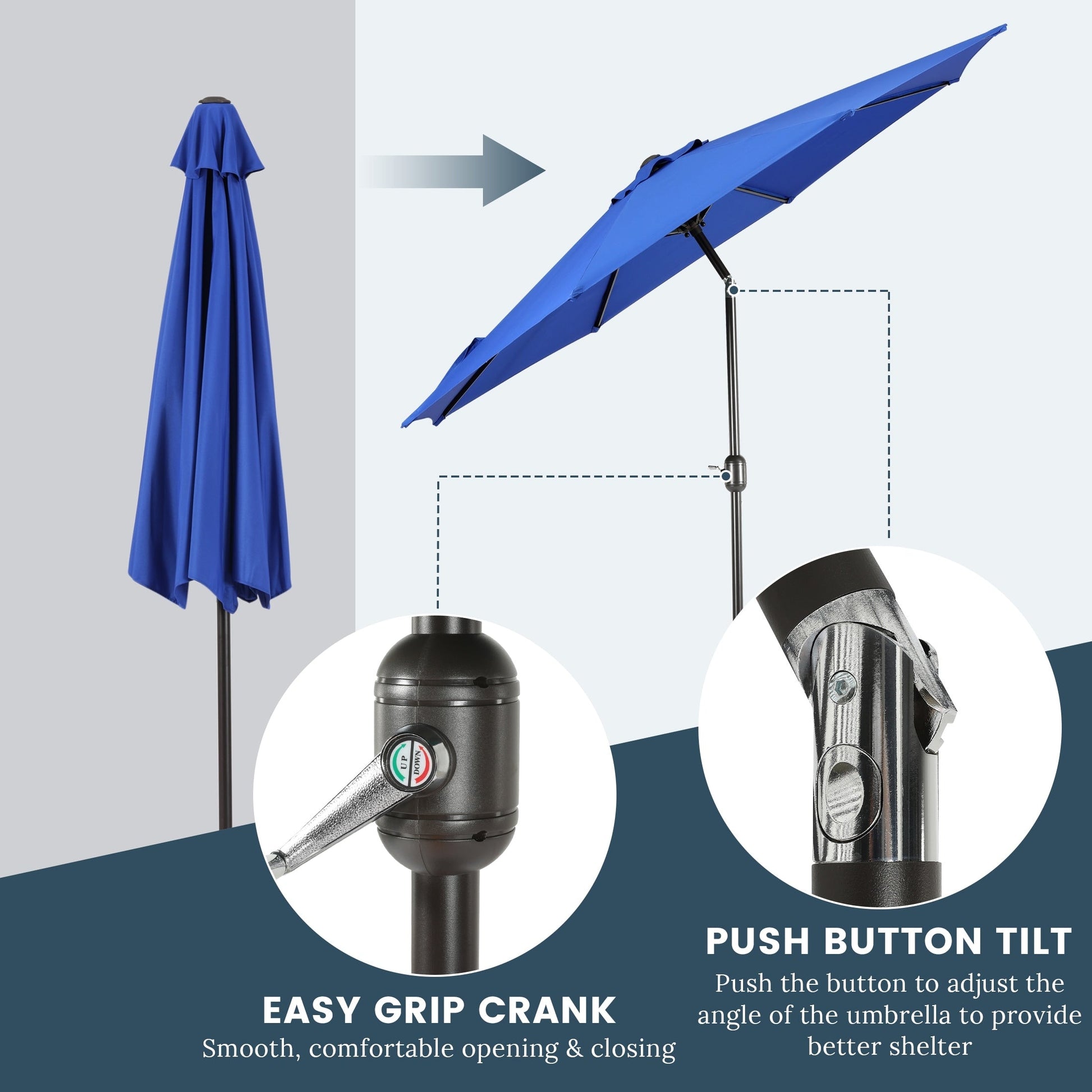 Enjoy the sunshine and scenery while keeping cool under this 9-foot steel outdoor patio table umbrella. Designed with style and durability in mind, this piece is built with a rust- and water-resistant steel frame and polyester fabric that blocks up to 95% of UV rays. The easy-to-crank lift mechanism allows for a simple open and close system when not in use. This 9-foot umbrella is perfect for your patio, garden table, outdoor dining table, pool, or lounge area. Available in multiple colors to fit your décor needs.