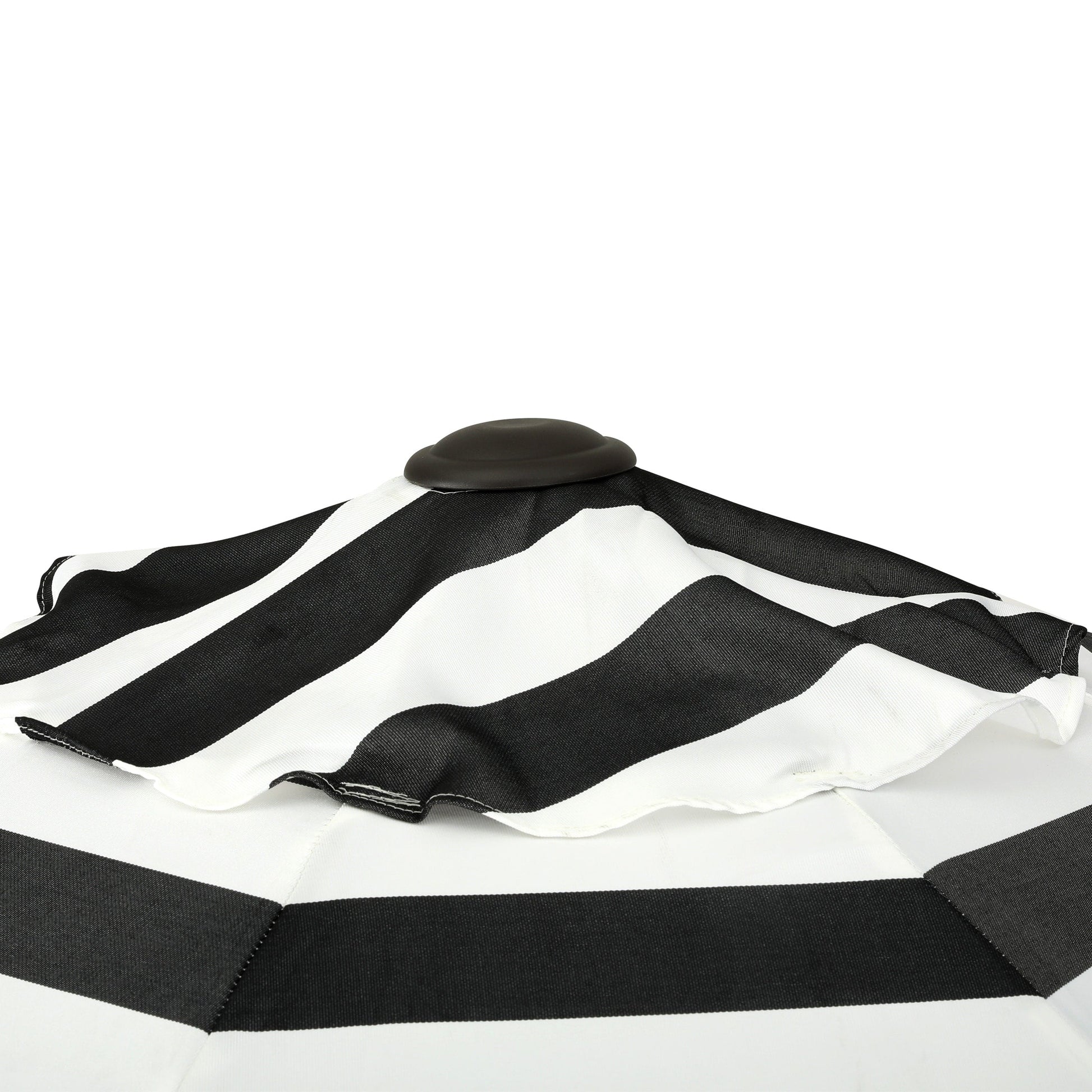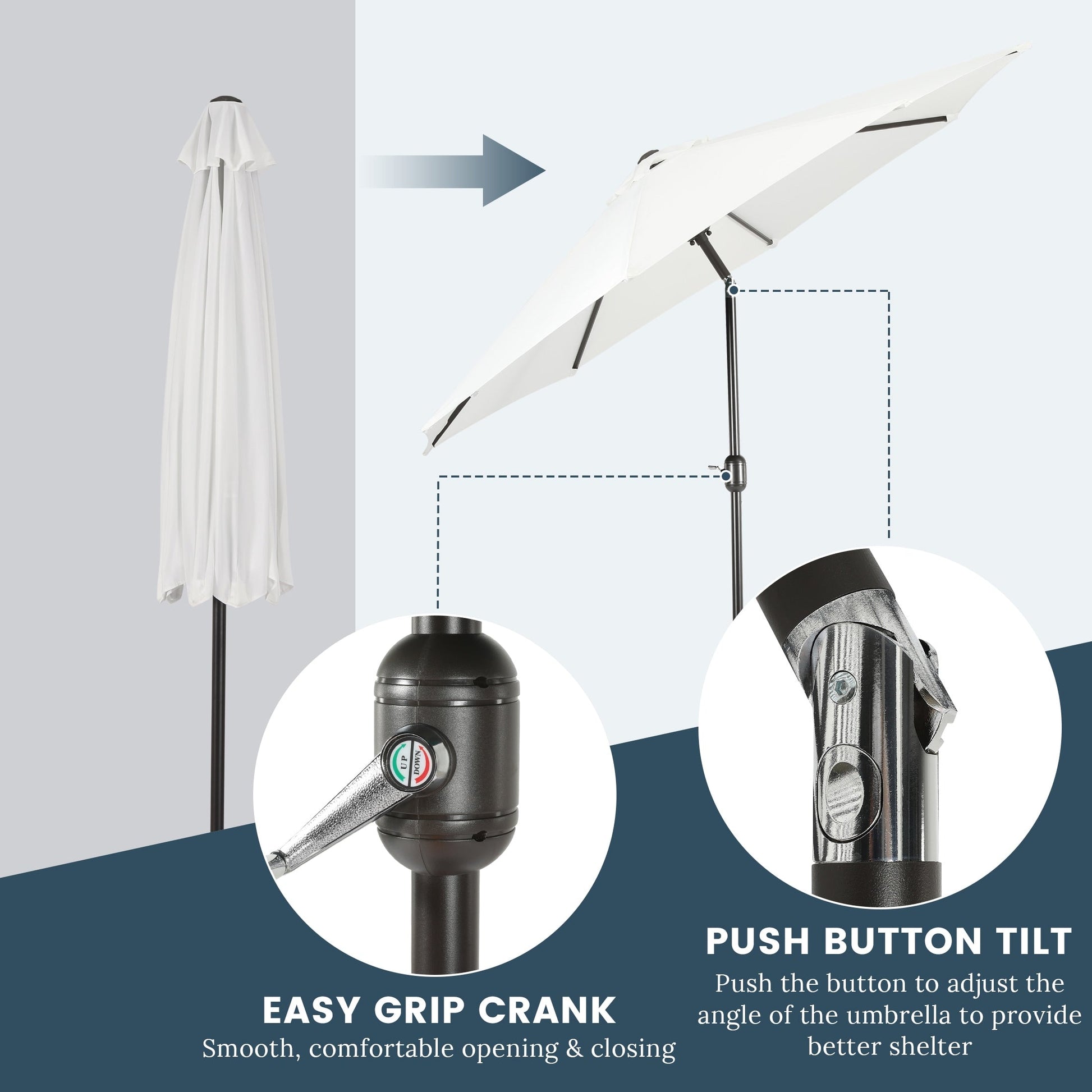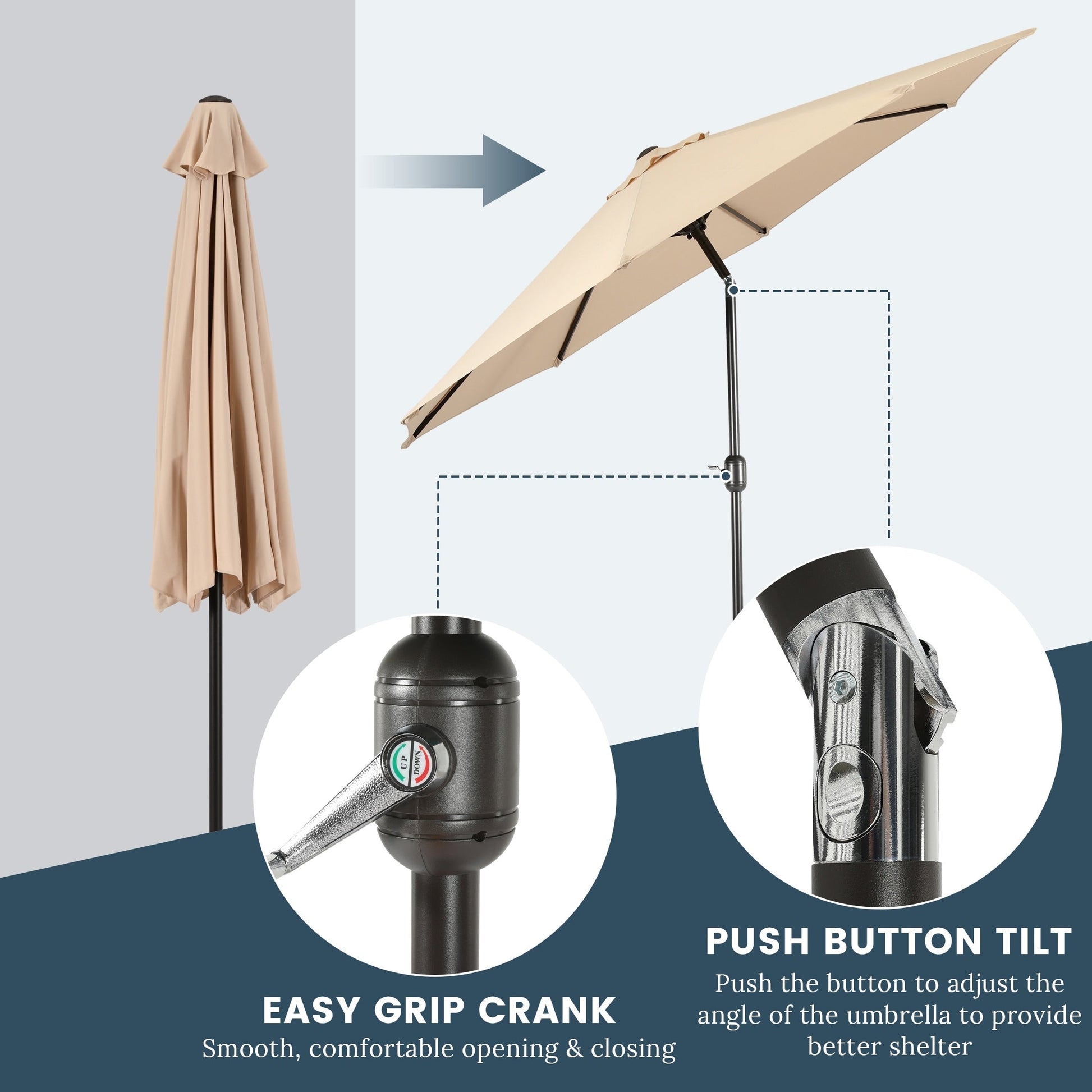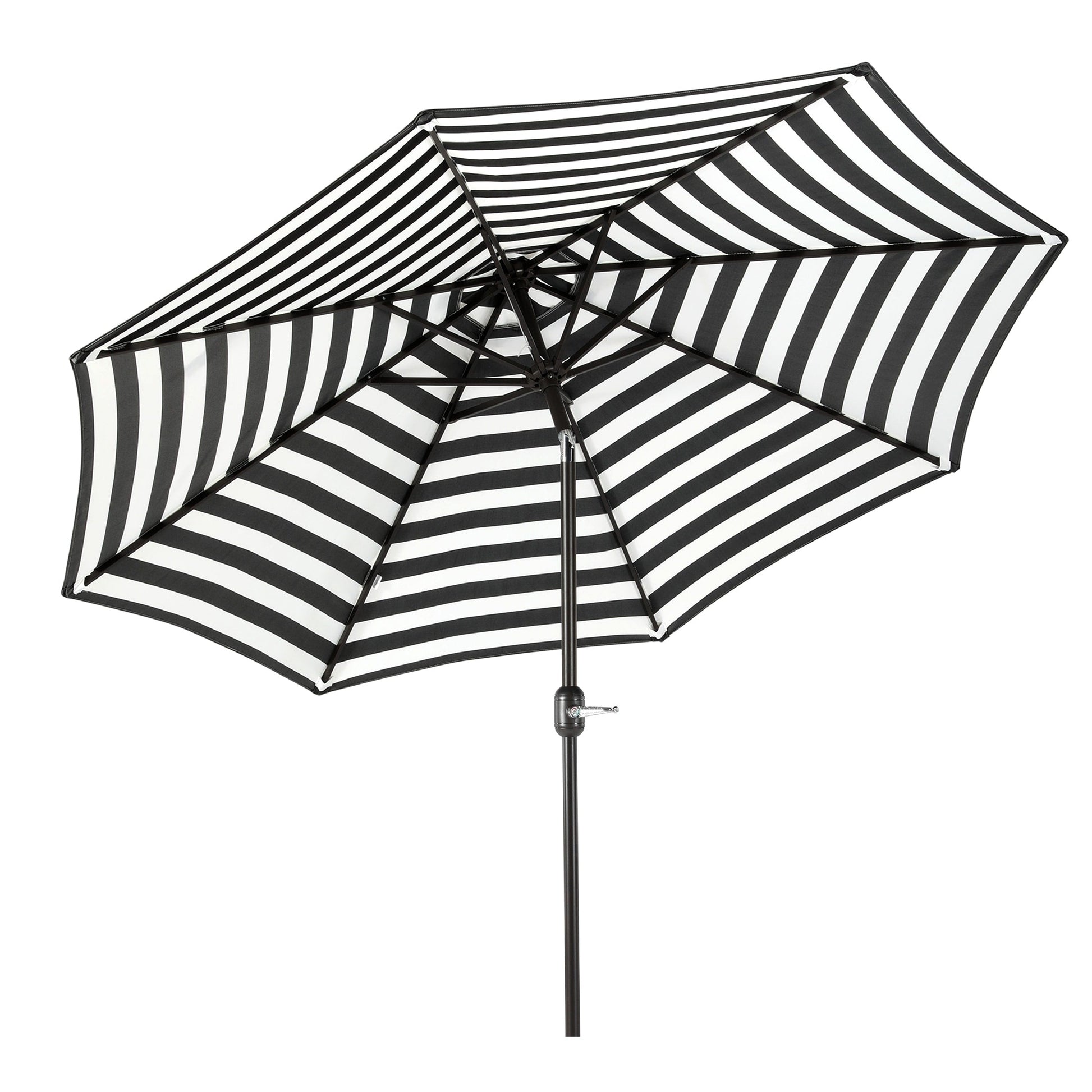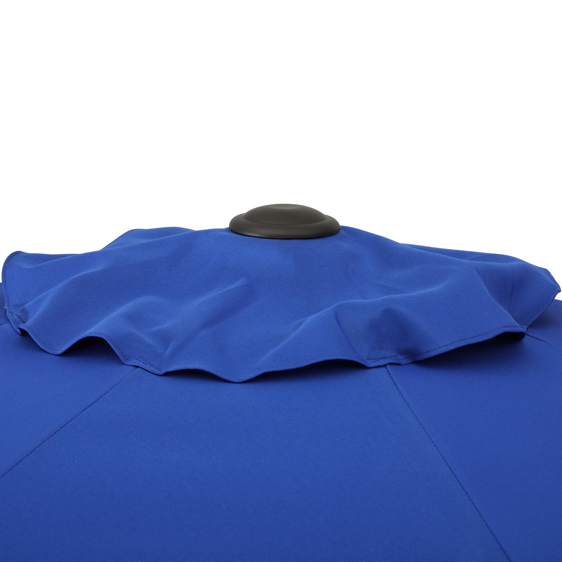 Enjoy the sunshine and scenery while keeping cool under this 9-foot steel outdoor patio table umbrella. Designed with style and durability in mind, this piece is built with a rust- and water-resistant steel frame and polyester fabric that blocks up to 95% of UV rays. The easy-to-crank lift mechanism allows for a simple open and close system when not in use. This 9-foot umbrella is perfect for your patio, garden table, outdoor dining table, pool, or lounge area. Available in multiple colors to fit your décor needs.
