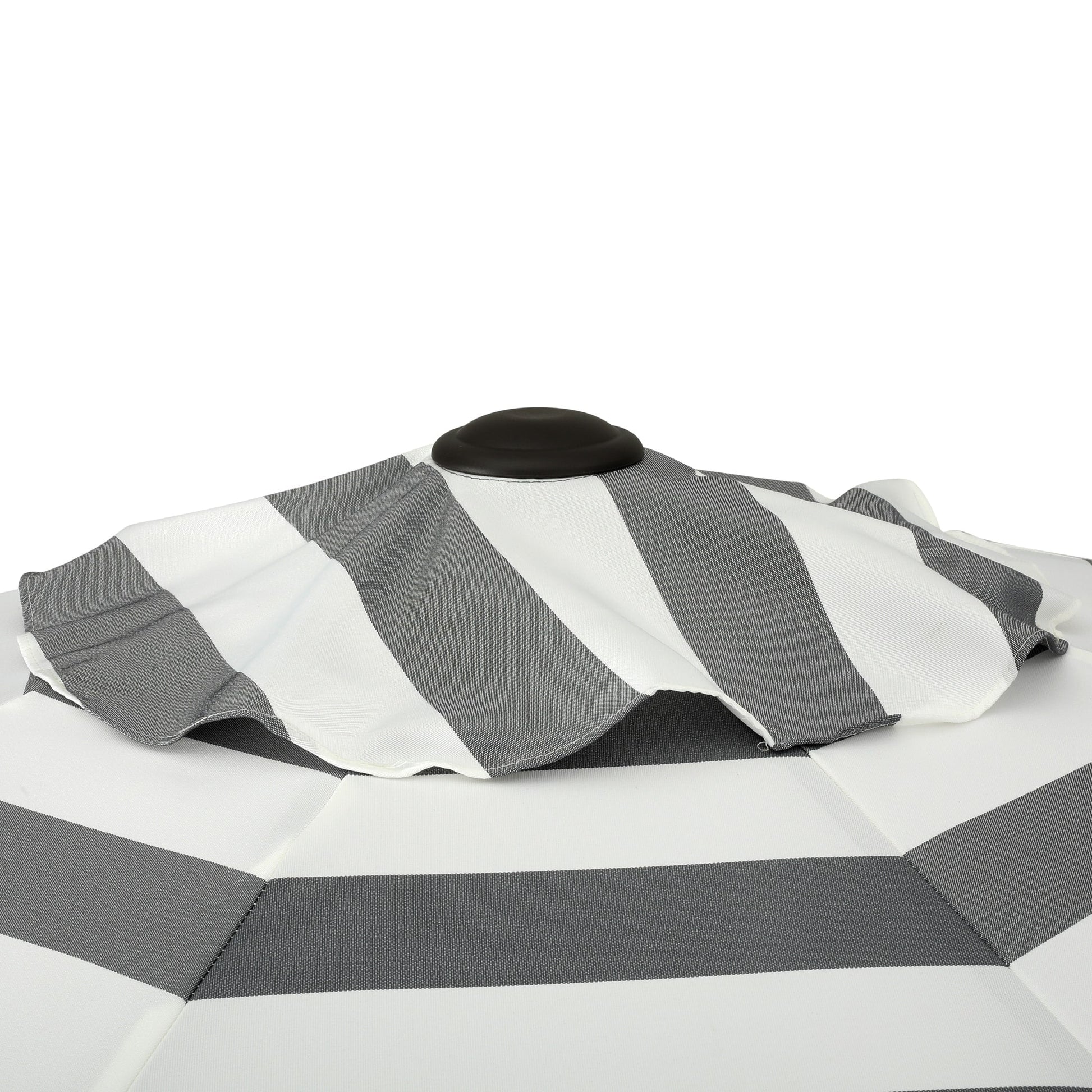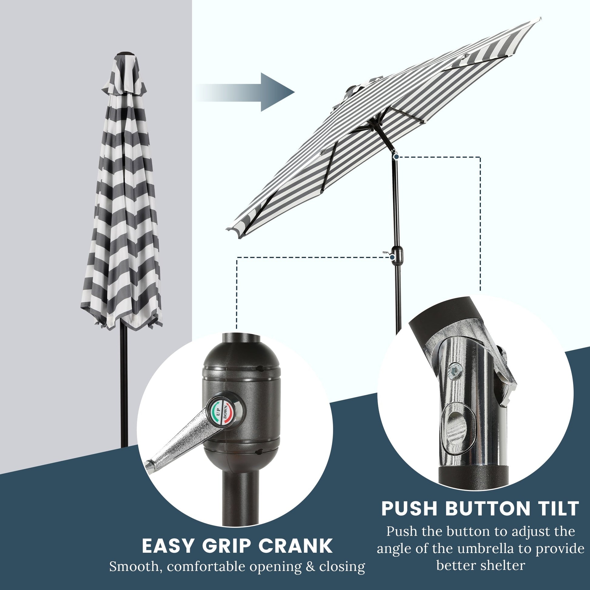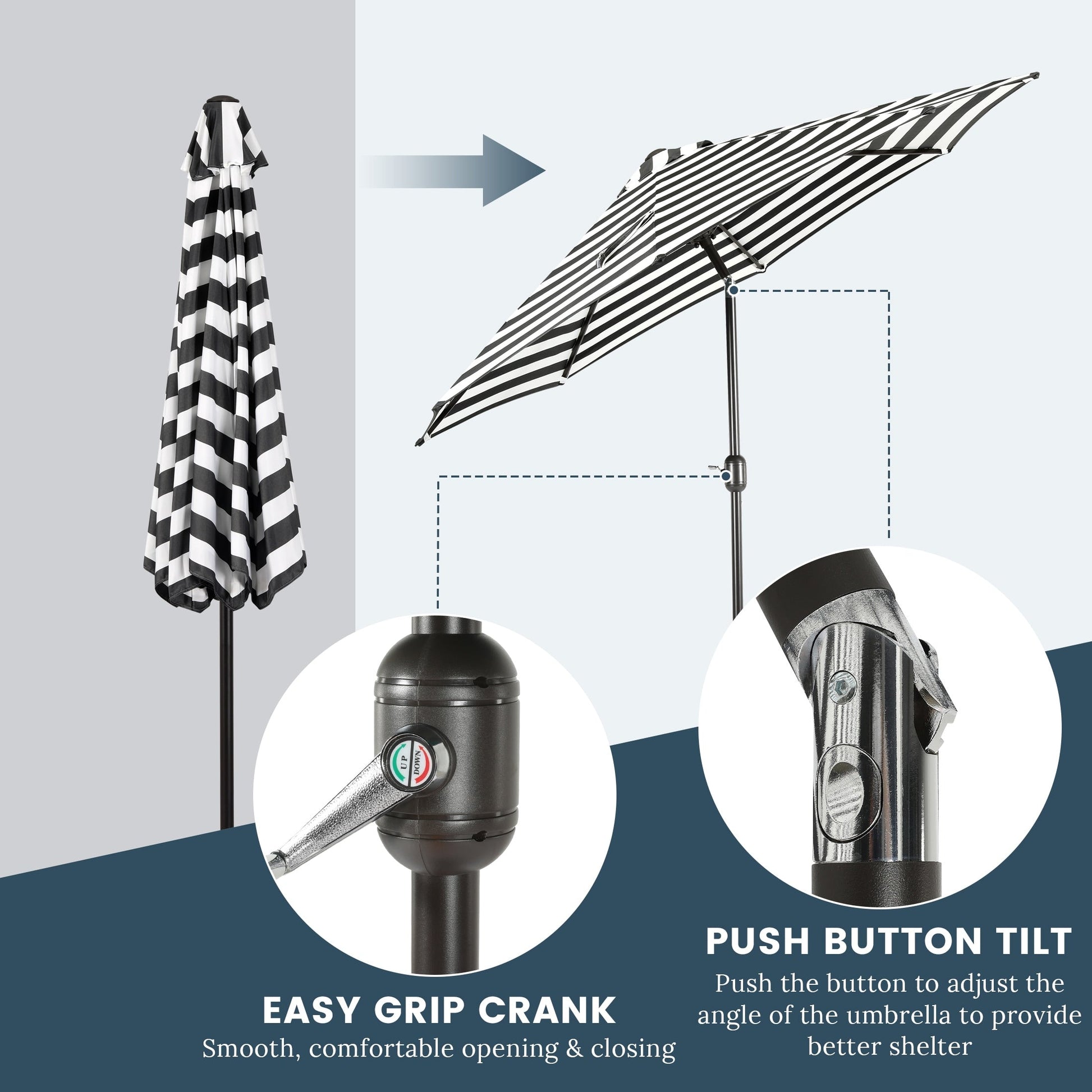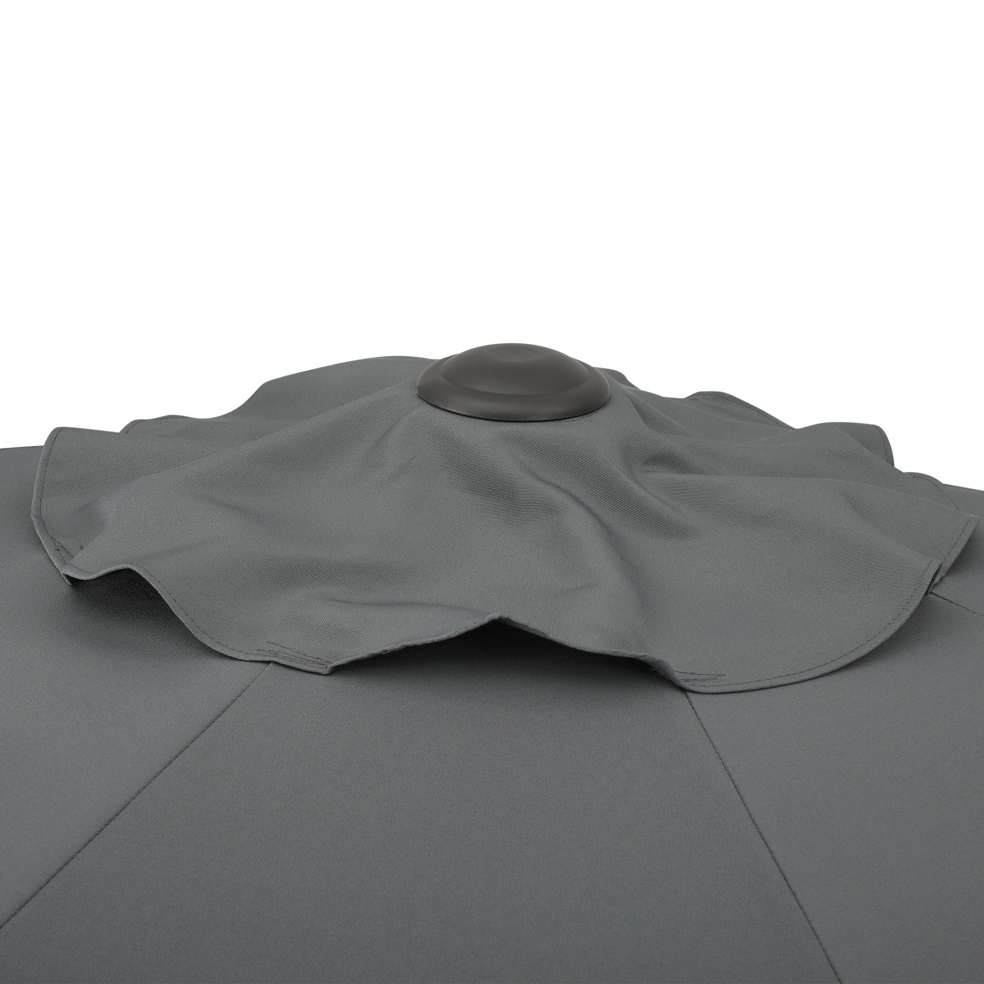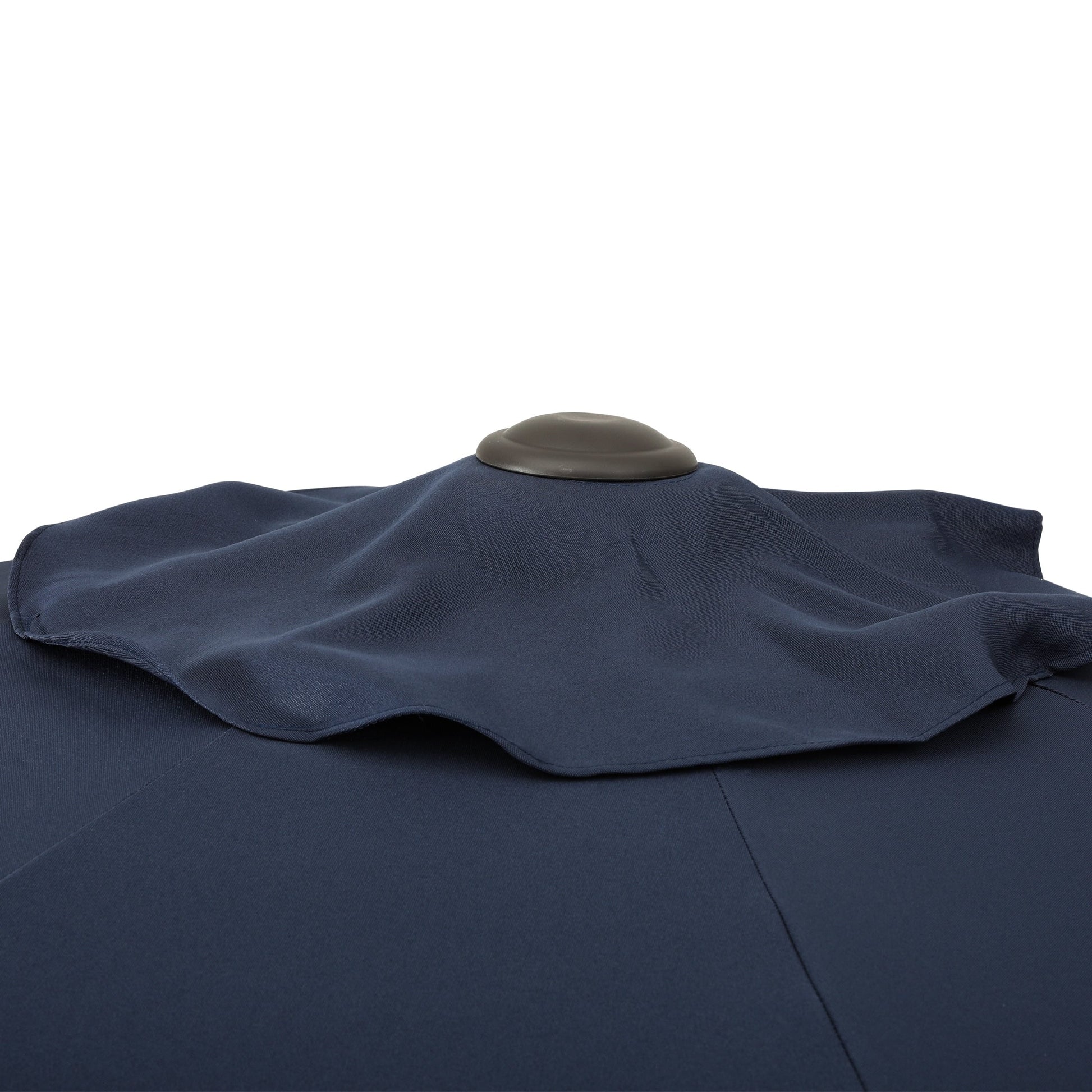Enjoy the sunshine and scenery while keeping cool under this 9-foot steel outdoor patio table umbrella. Designed with style and durability in mind, this piece is built with a rust- and water-resistant steel frame and polyester fabric that blocks up to 95% of UV rays. The easy-to-crank lift mechanism allows for a simple open and close system when not in use. This 9-foot umbrella is perfect for your patio, garden table, outdoor dining table, pool, or lounge area. Available in multiple colors to fit your décor needs.