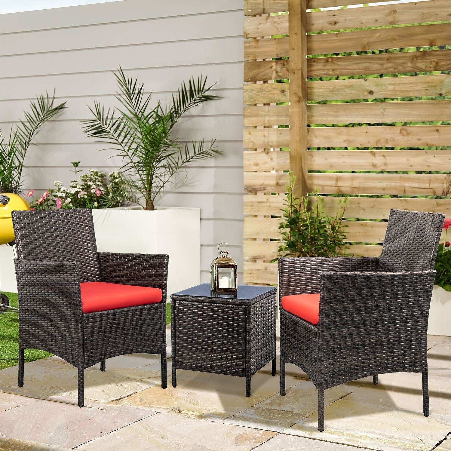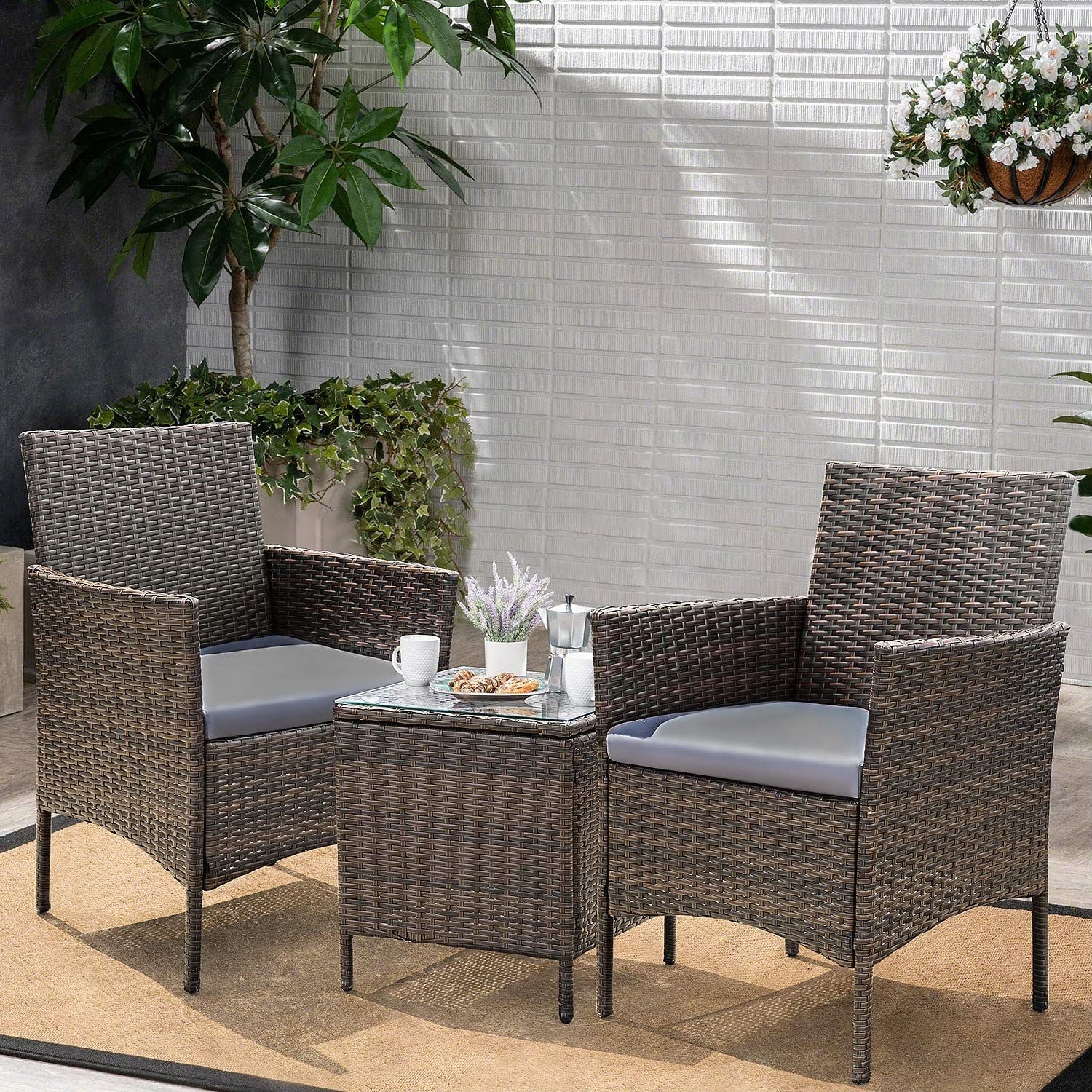 Homall 3 Pieces Patio Porch Furniture Sets PE Rattan Wicker Chairs with Table Outdoor Garden Furniture Sets