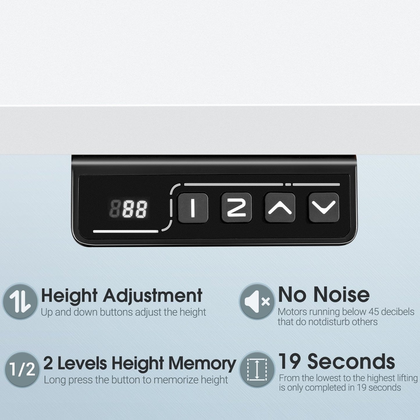 Upgrade your home office setup with the Homall Electric Height Adjustable Standing Office Desk. Designed to provide a comfortable and customizable workspace, this desk is available in multiple colors and sizes to suit your needs. The electric motor system allows you to adjust the desk height smoothly and quickly, with the added convenience of a 2-position memory function. The desk operates with low noise, ensuring a quiet work environment. With an industrial-grade steel frame and a solid desktop, this desk can support up to 176 lbs of weight. Assembly is quick and easy, taking less than 30 minutes with the provided manual.