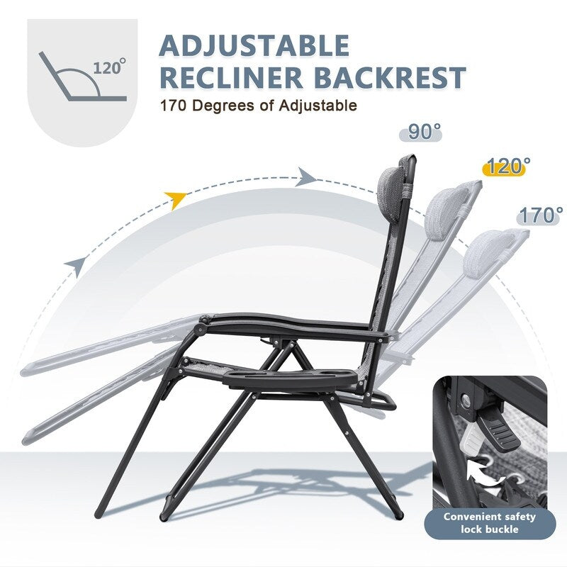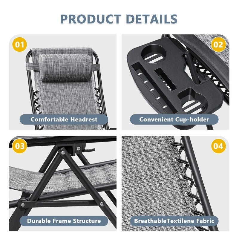 - Durable Steel Tube & Superior Textilene Fabric: This zero gravity chair features a high-quality steel tube including an inverted triangular structure for a comfortable seat experience even in the summer. Textilene fabrics have excellent breathability and high strength support, while Textilene is UV resistant and has excellent sun protection.