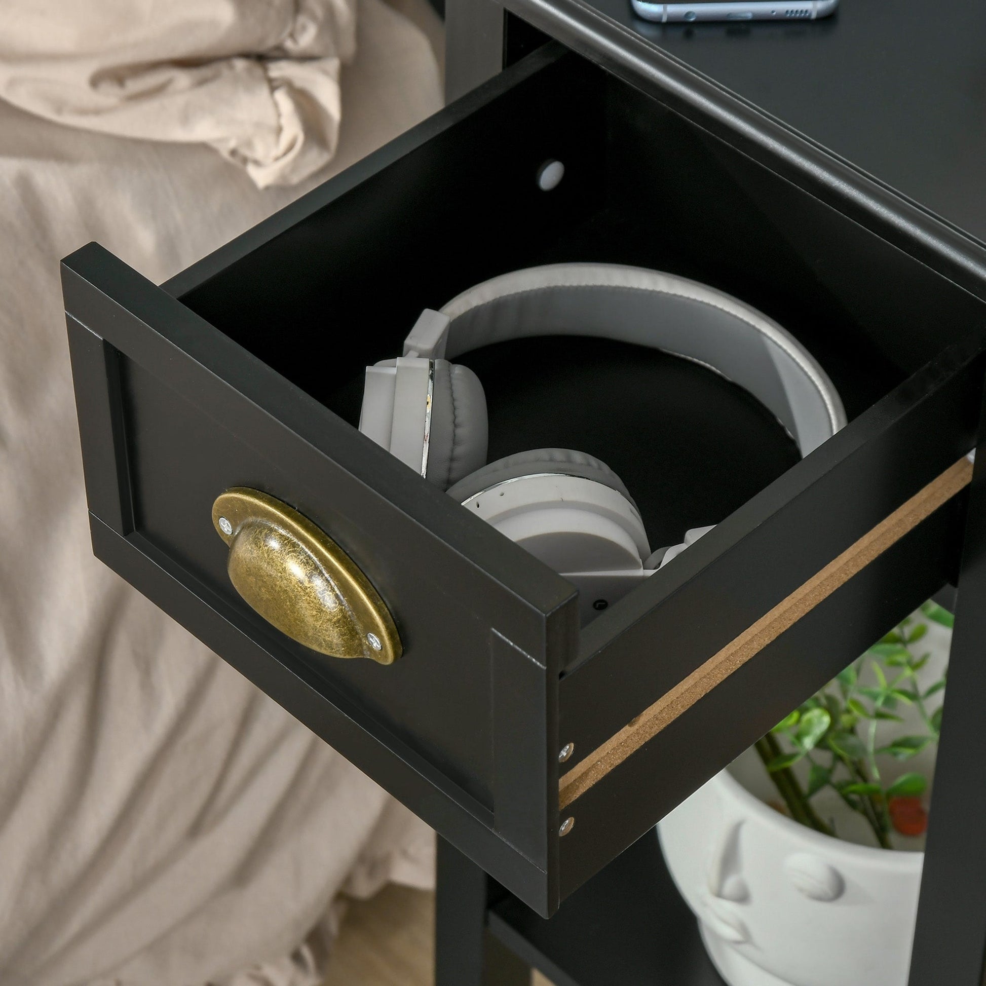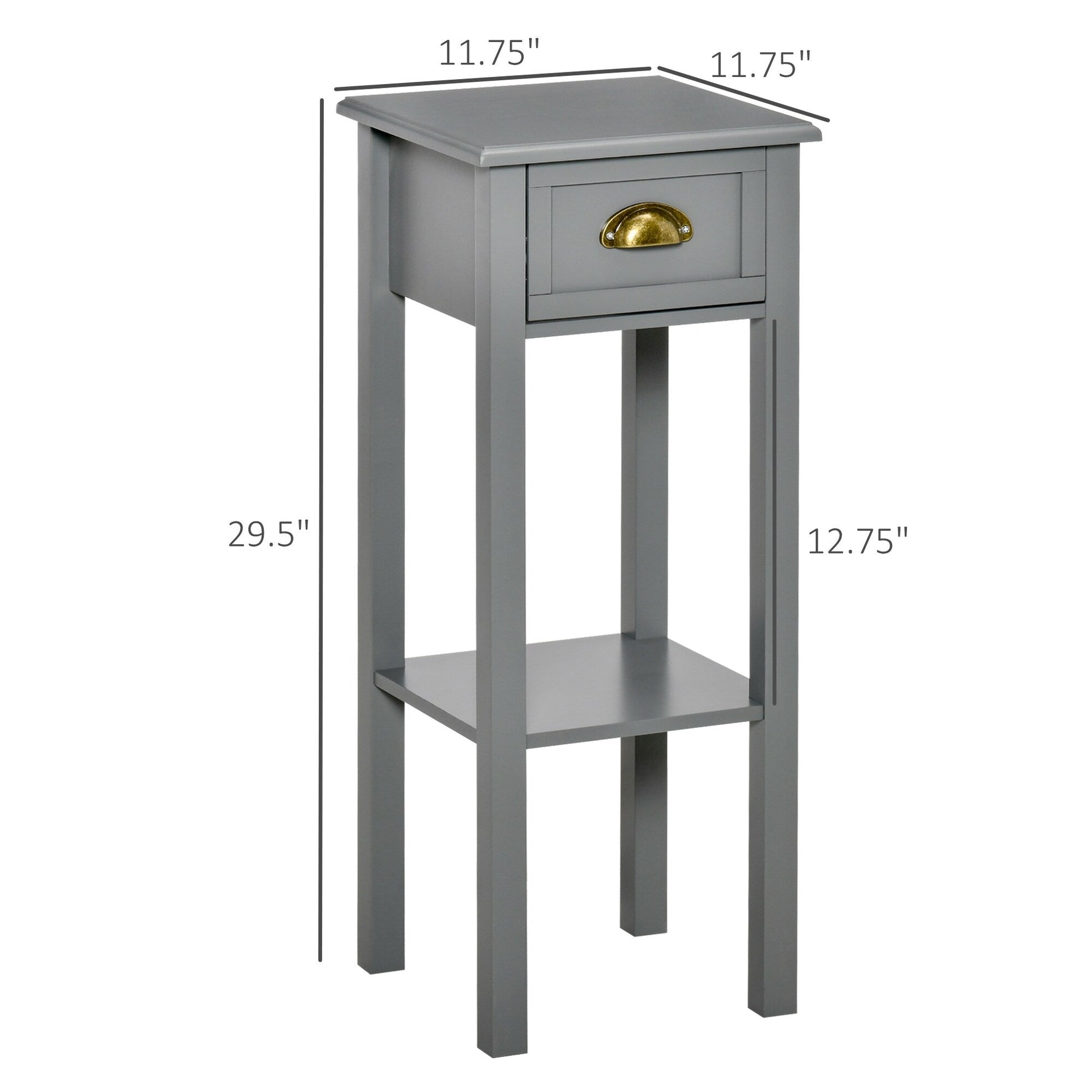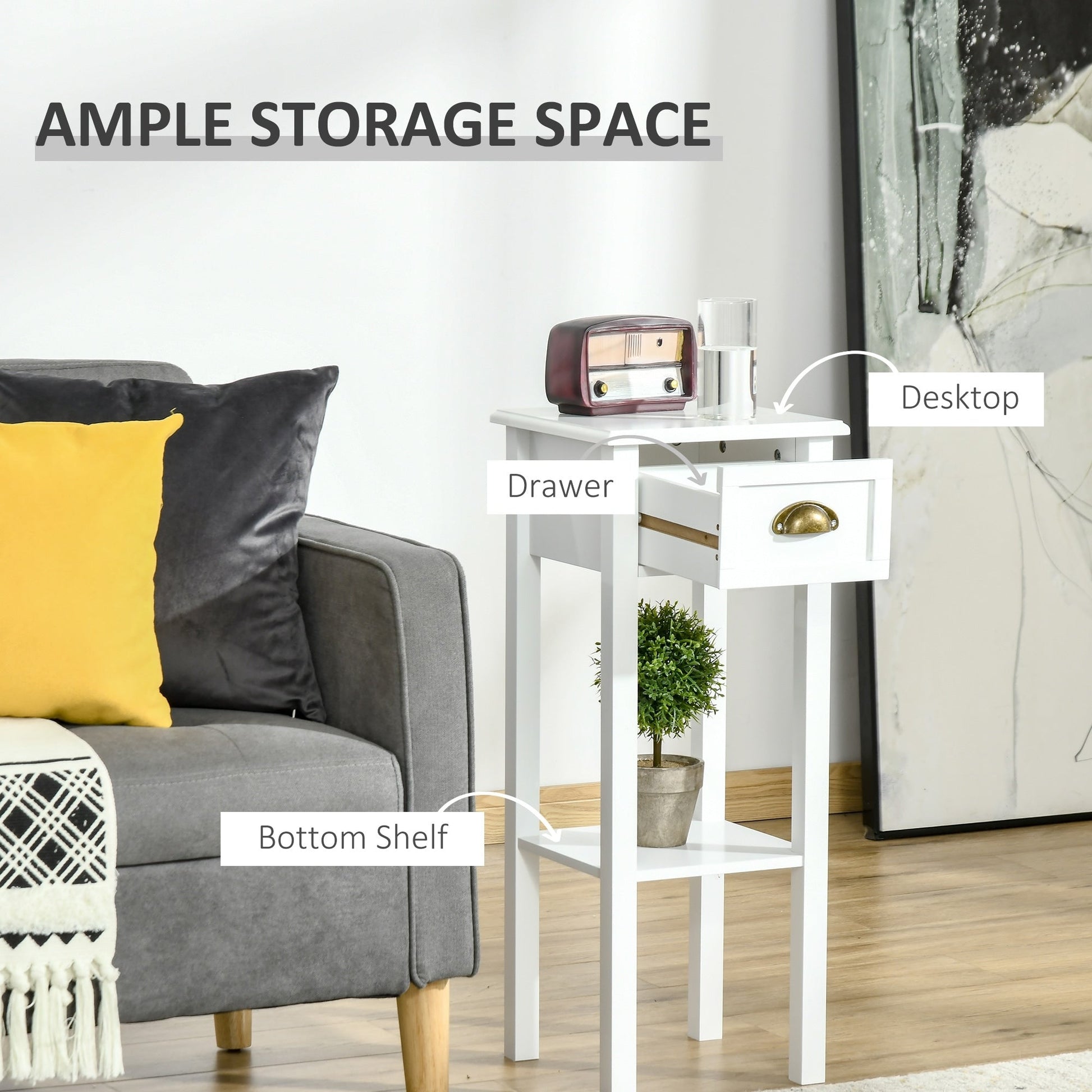 HOMCOM 2-Tier Night Stand with Drawer, Narrow End Table with Bottom Shelf, for Living Room or Bedroom