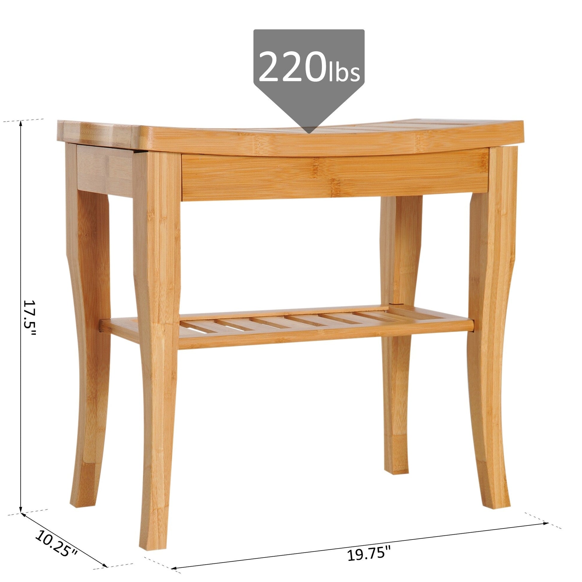 HomCom 20 Long Bamboo Wood Shower Bench Seat With Lower Storage Shelf - 10.25*19.75*17.5