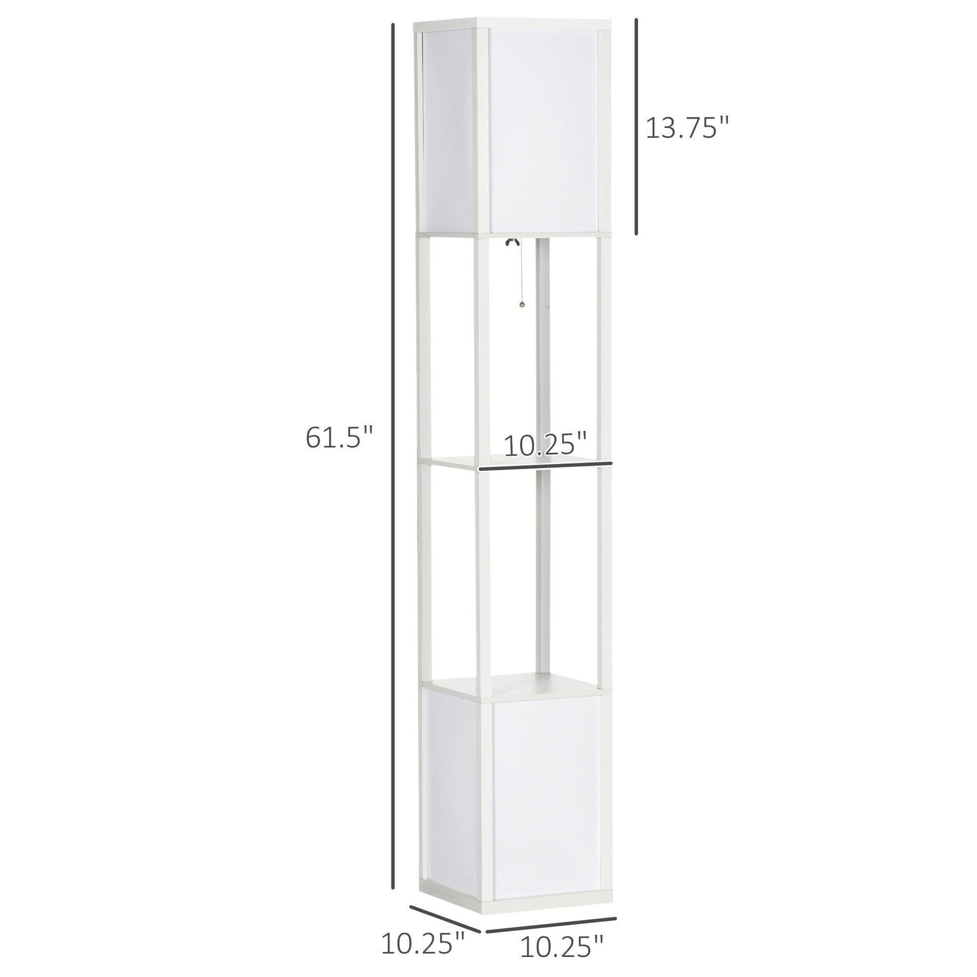 HOMCOM Floor Lamp with Shelves, Dual Light, Modern Tall Standing Lamps, with Fabric Lampshade (Bulb not Included)