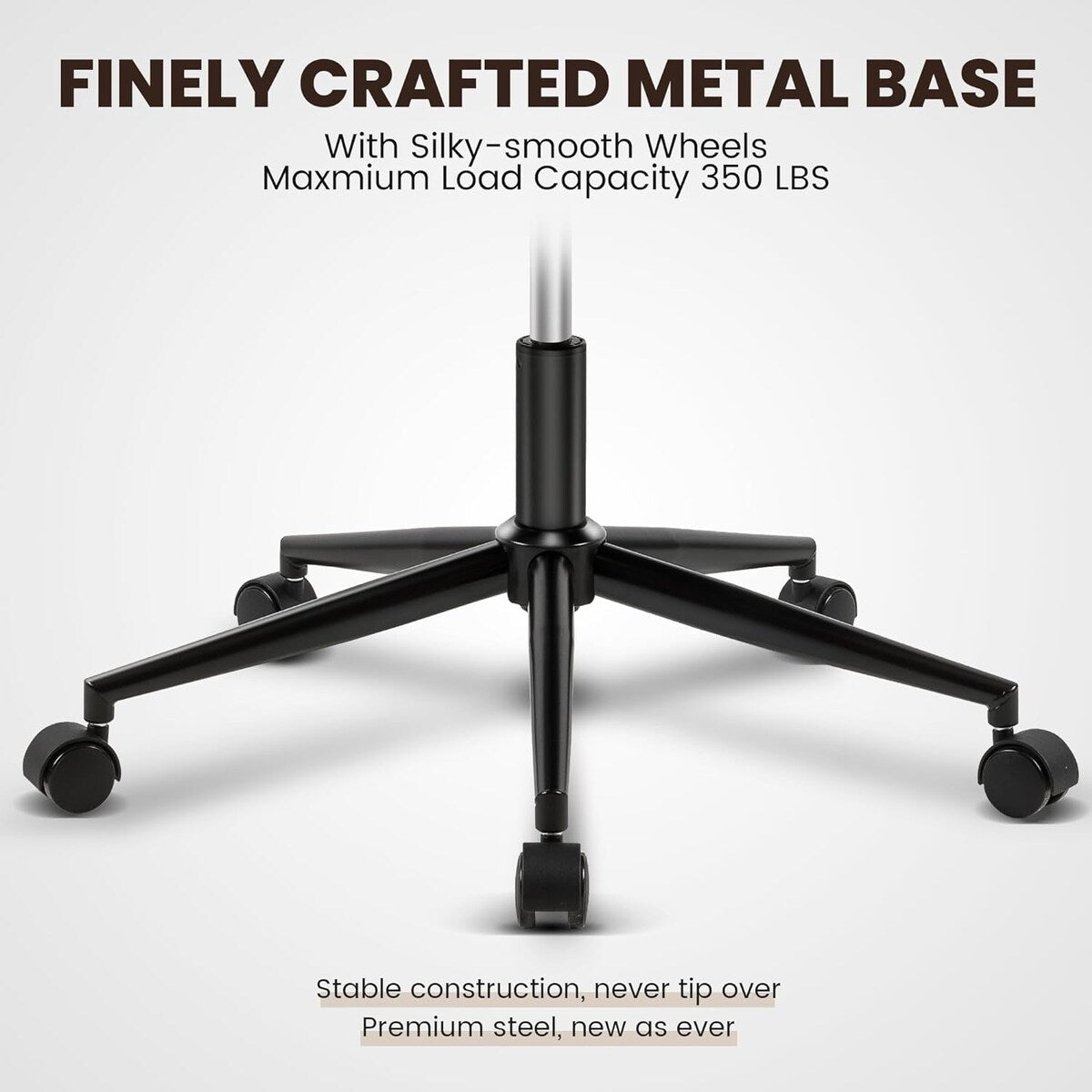 - STABLE STRUCTURAL DESIGN. The sturdy metal base structure, SGS and TUV certificated gas spring, and careful handling of every structural detail ensure the maximum sturdiness of our armless office chair. NO WOBBLE. SUPER STURDY. The surface of the metal structure is coated with several layers of anti-rust paint. New as ever even after years of using our desk chair. Protective footpads included.