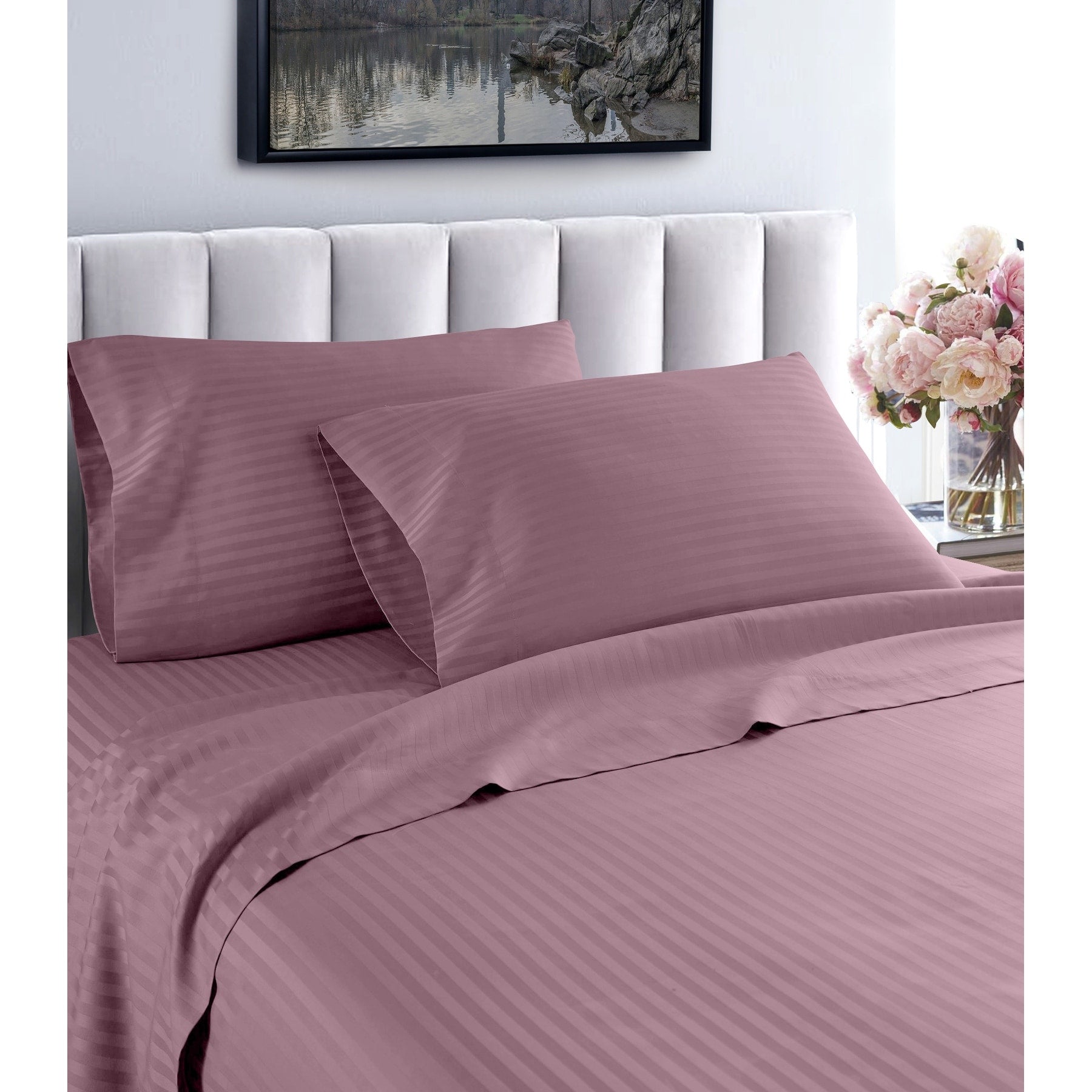 Drift off to sleep wrapped in the luxury and comfort of these Egyptian cotton sheets from Porch & Den. Crafted from 100-percent Egyptian cotton with a dense, 1200 thread count, these sheets are soft, breathable, and durable. The simple tone-on-tone stripe design is available in a variety of stylish colors, completing the lavish appeal of these cozy sheets.Features: Made from 100-percent Egyptian cotton 1200 thread count Durable fabric Striped pattern Gets softer after every wash Accommodates mattresses up to 15 Inches Machine washable—wash separately in cold water on a gentle cycle for approximately 15 minutes. Do not wash with other items. Do not bleach. Tumble dry on low. Iron as needed. Twin Dimensions: 1 Flat Sheet 66 inches wide x 96 inches long 1 Fitted Sheet 39 inches wide x 75 inches long 1 Pillowcase 20 inches wide x 30 inches longTwin XL Dimensions: 1 Flat Sheet 66 inches wide x 96 inches long 1 Fitted Sheet 39 inches wide x 80 inches long 1 Pillowcase 20 inches wide x 30 inches longFull Dimensions: 1 Flat Sheet - 81 inches wide x 96 inches long 1 Fitted Sheet - 54 inches wide x 75 inches long 2 Pillow Case - 20 inches wide x 30 inches longQueen Dimensions: 1 Flat sheet: 90 inches wide x 102 inches long 1 Fitted sheet: 60 inches wide x 80 inches long 2 Pillowcases: 20 inches wide x 30 inches longKing Dimensions: 1 Flat sheet: 102 inches wide x 108 inches long 1 Fitted sheet: 78 inches wide x 80 inches long 2 Pillowcases: 20 inches wide x 40 inches longCalifornia King Dimensions: 1 Flat Sheet 102 inches wide x 108 inches long 1 Fitted Sheet 72 inches wide x 80 inches long 2 Pillow Case 20 inches wide x 40 inches long