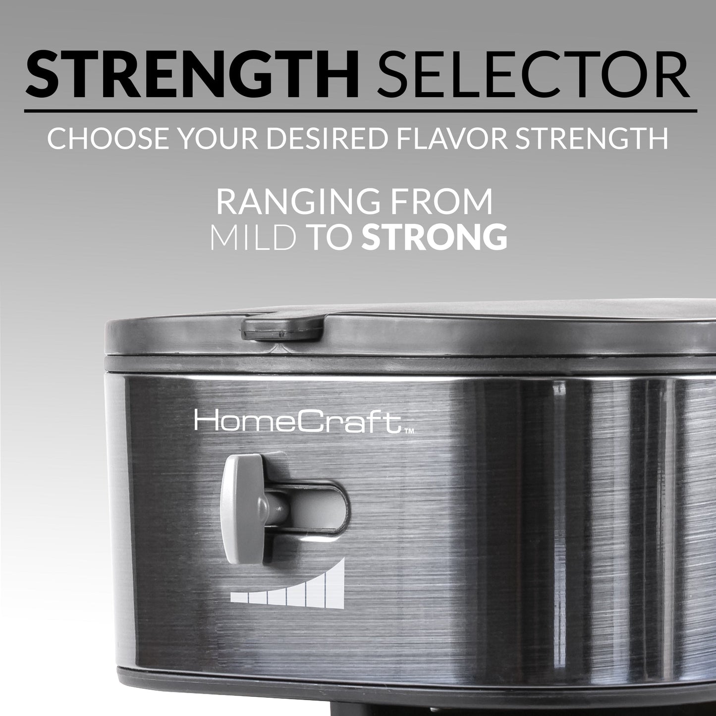 - STRENGTH SELECTOR DIAL: Choose your desired flavor strength using the strength selector dial - ranging from mild (left) to strong (right) FLAVOR ENHANCER: Add lemon, herbs and other sweeteners to the flavor extraction chamber to further enhance the flavors