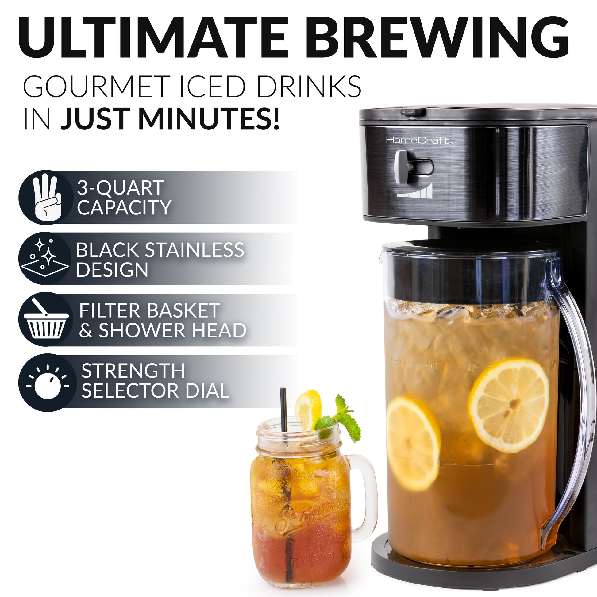 HomeCraft 3-Quart Black Stainless Steel Cafe Ice Iced Coffee and Tea Brewing System