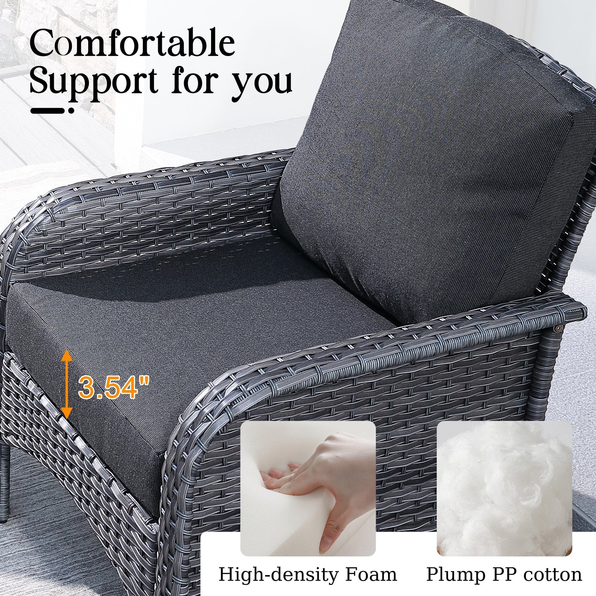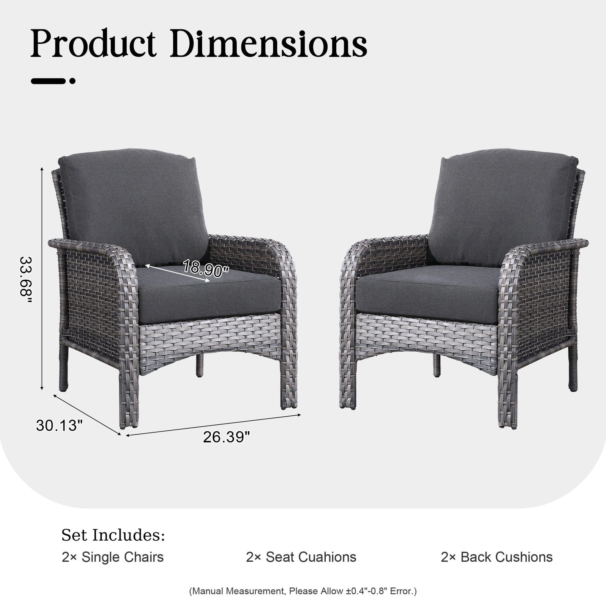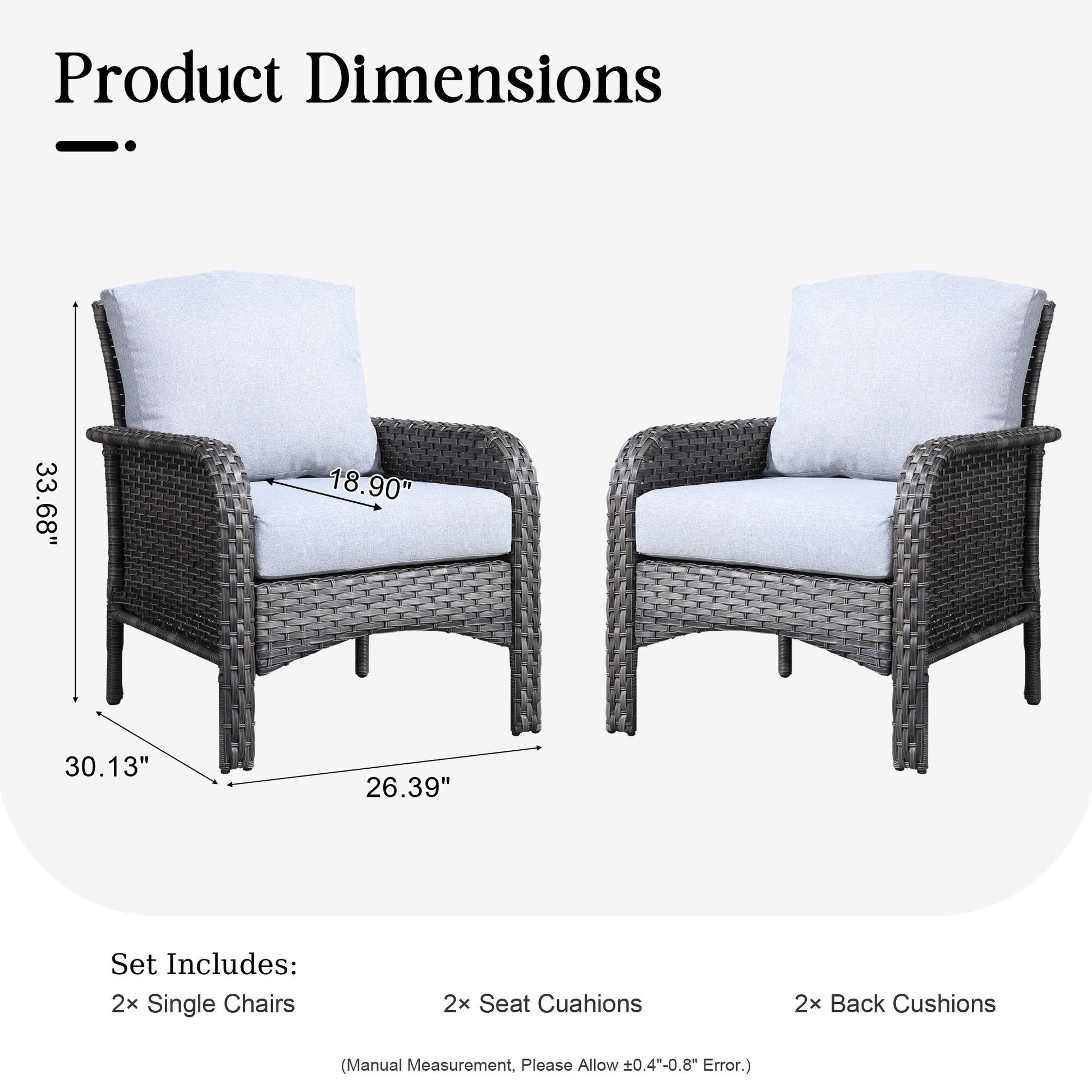 Relax in cozy relaxation and casual conversations with HOOOWOOO 2-piece Wicker Rattan Outdoor Patio Furniture Chair Set. Featuring handwoven PE wicker and powder-coated steel frame provides durability and long-lasting use. This set with seat and back cushions, no matter from the color matching or unique design, does not lose the taste of the style and combines with practicability and artistry.