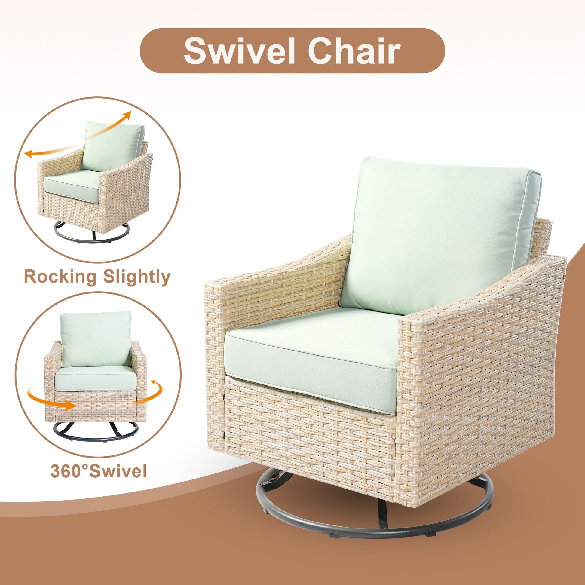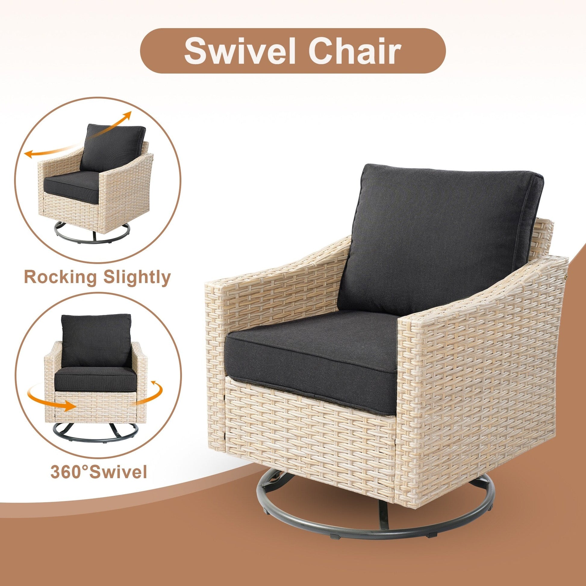 HOOOWOOO 6-piece Wicker Patio Outdoor Furniture Fire Pit Set with Swivel Rocking Chair