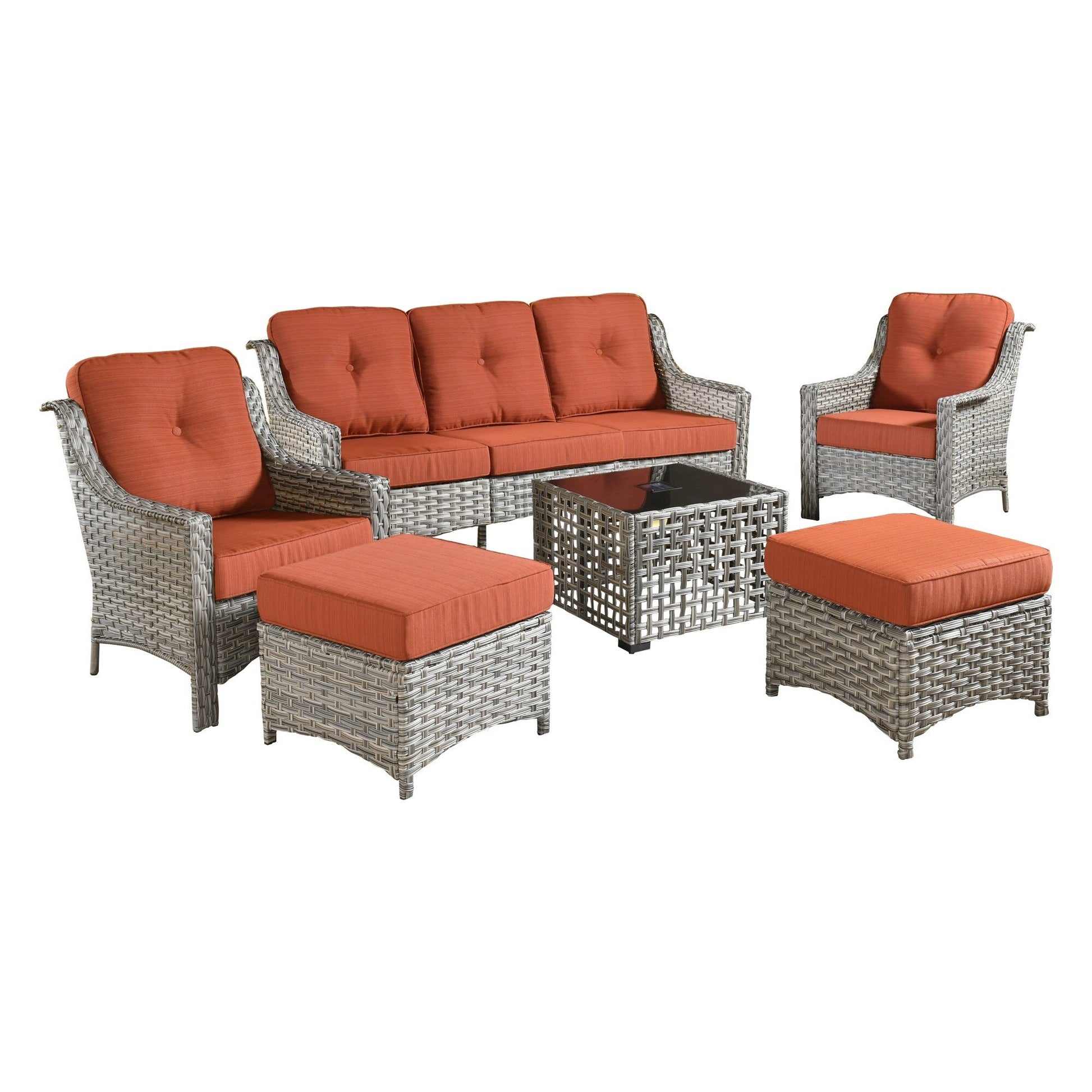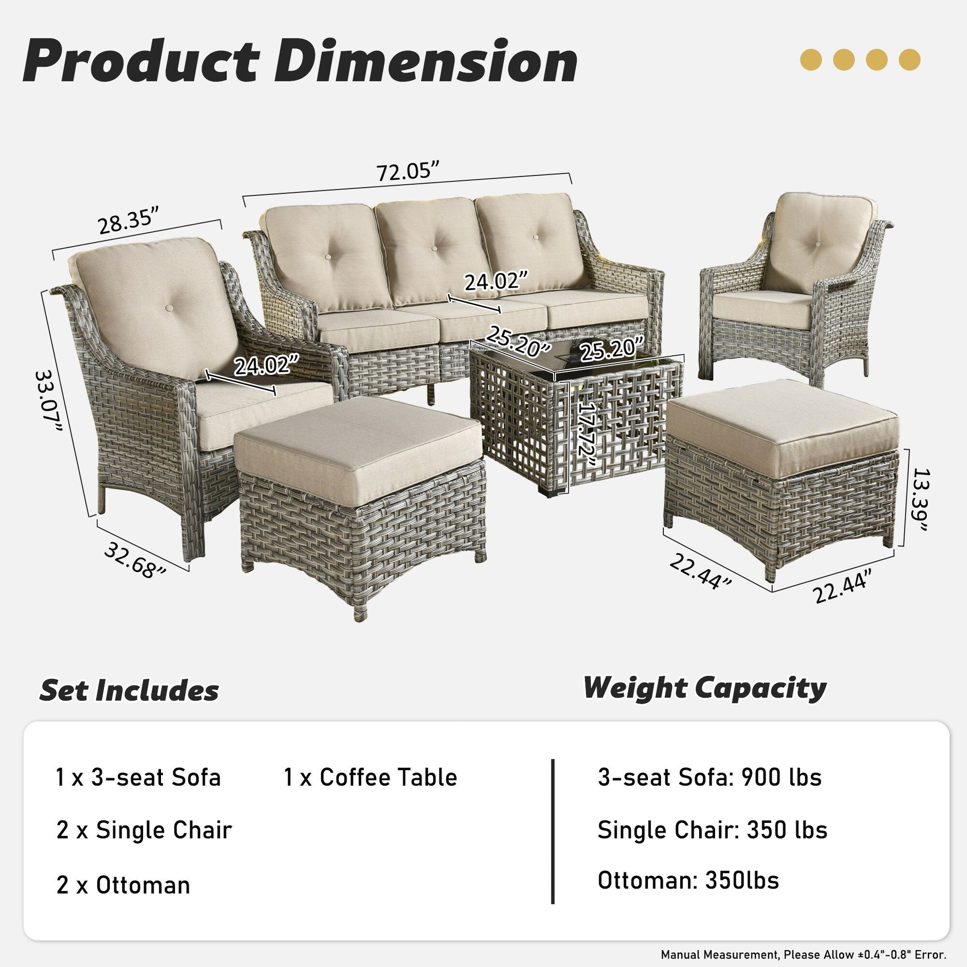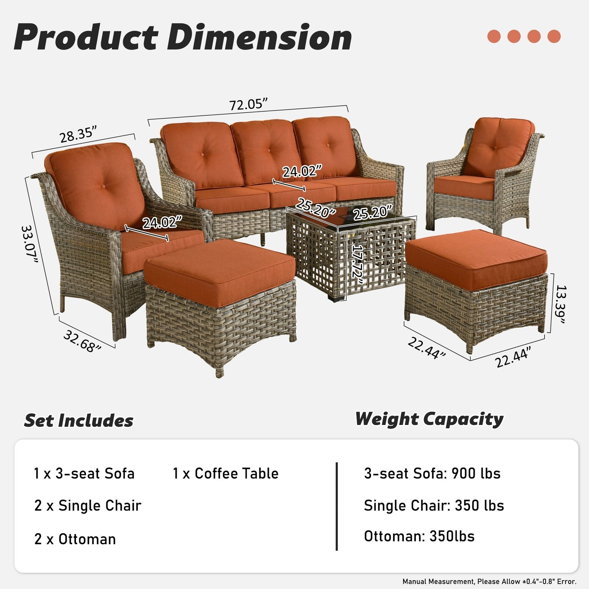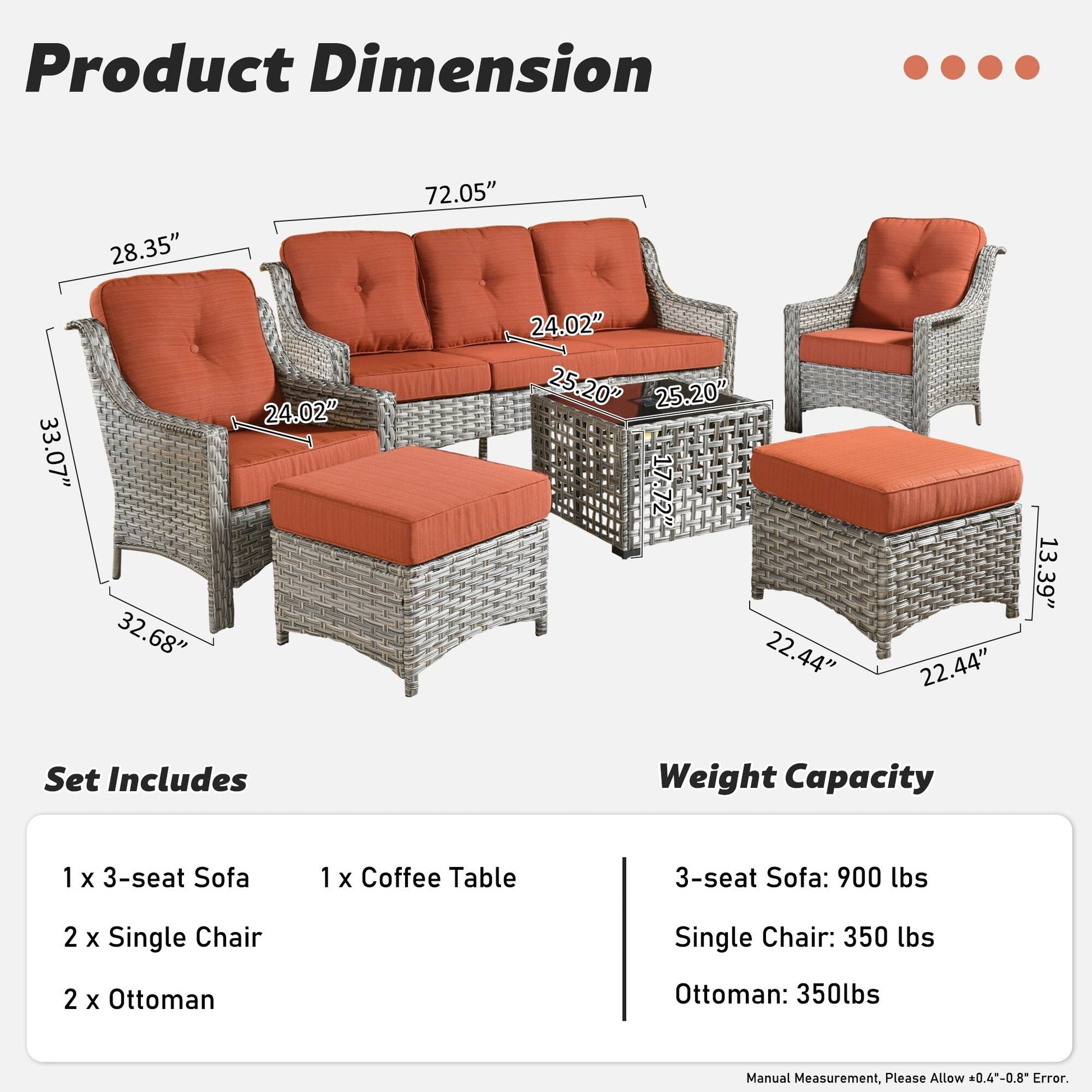 HOOOWOOO 6-pieces Wicker Patio Furniture Conversation Set with Coffee Table