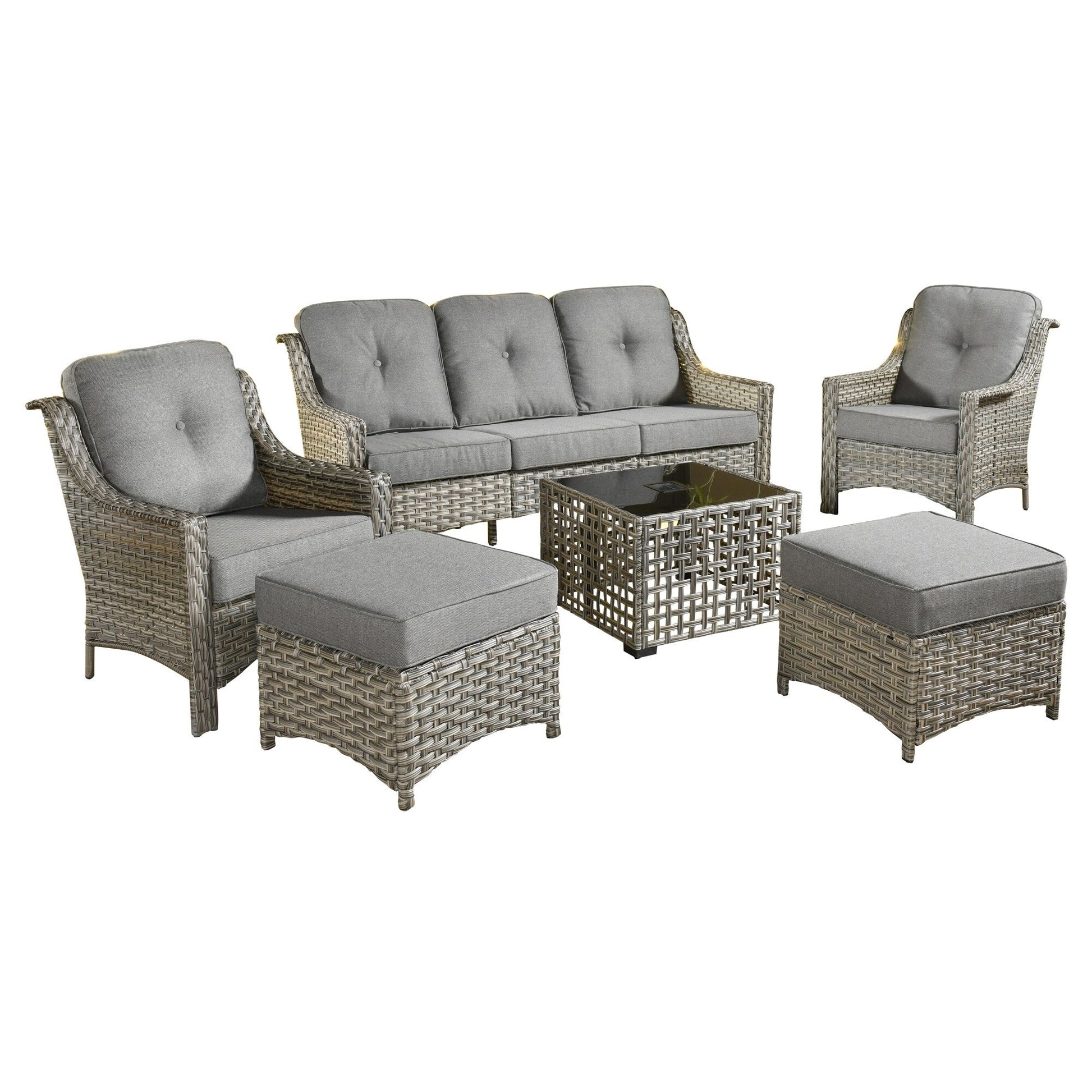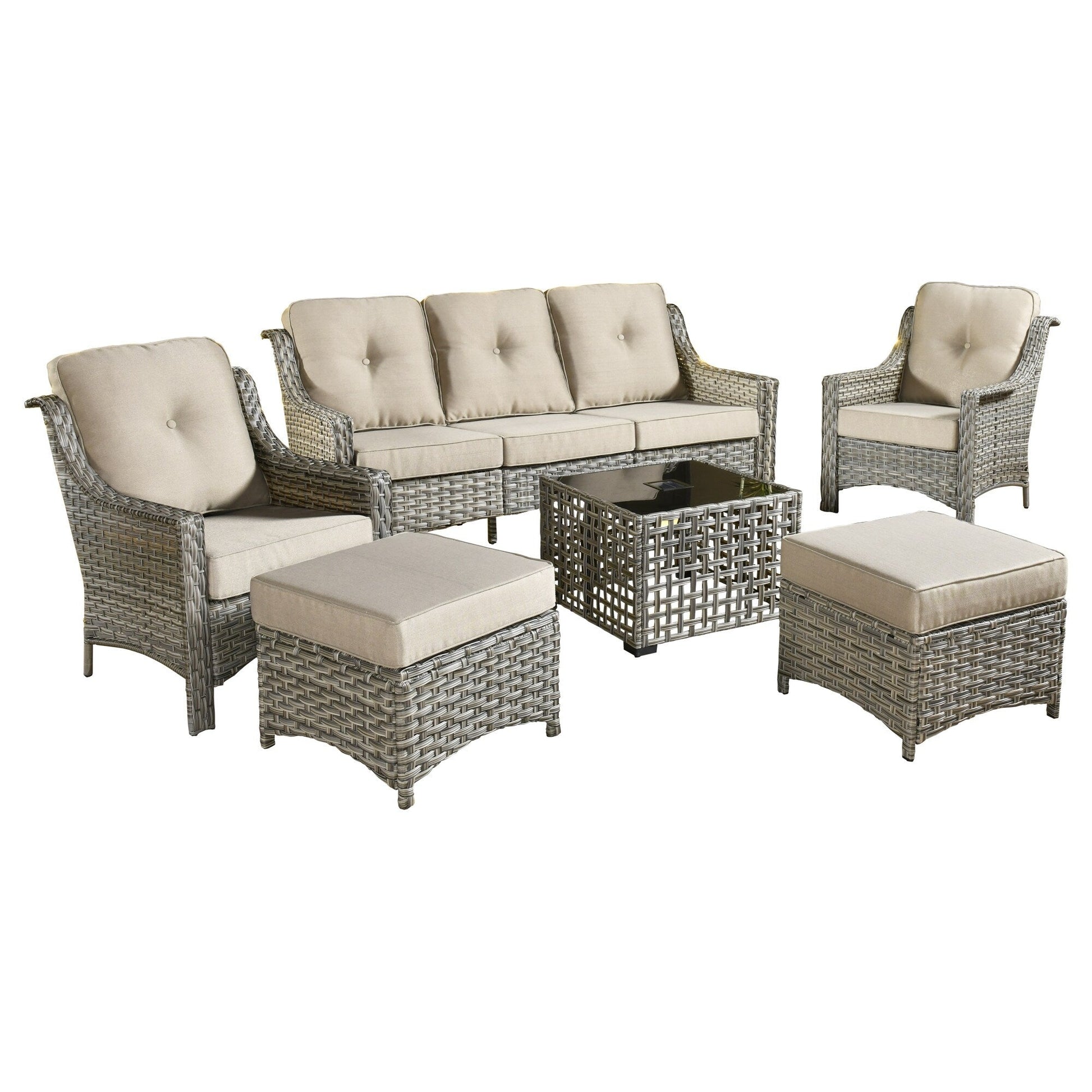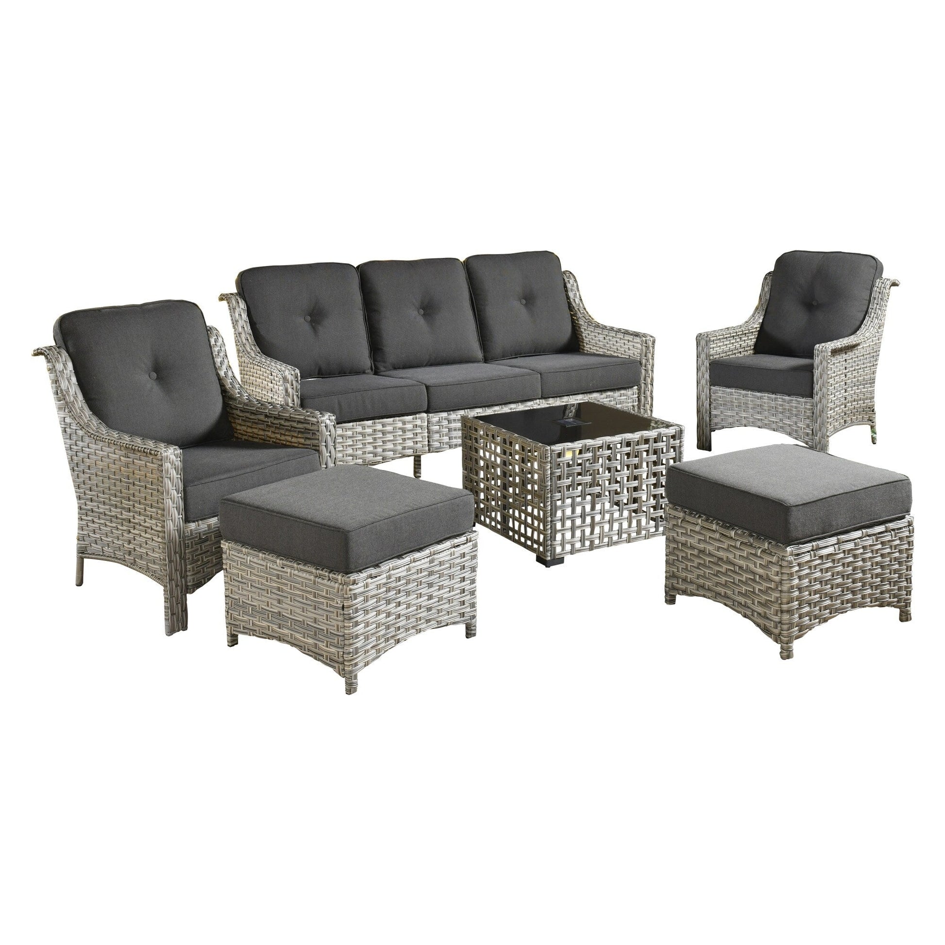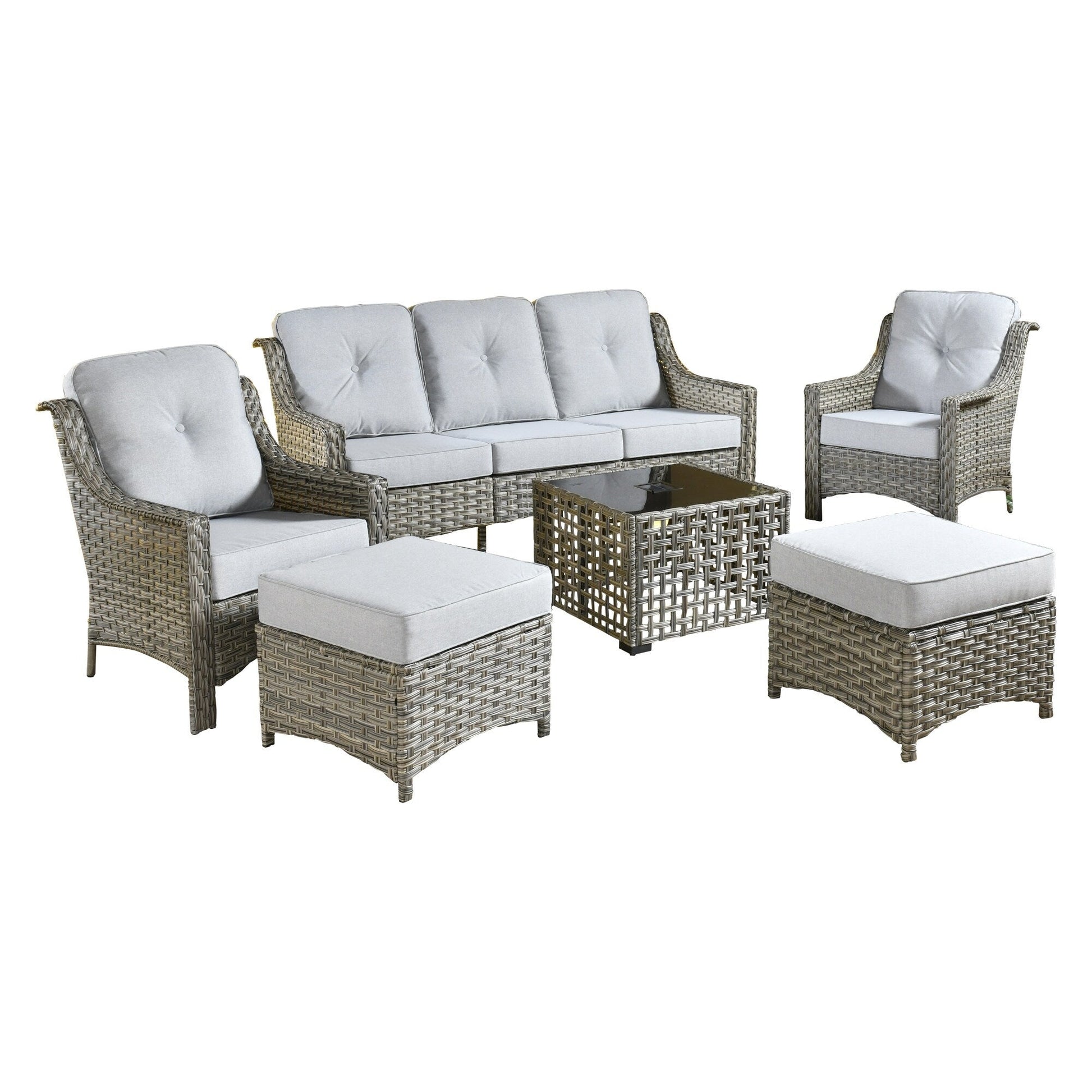 HOOOWOOO 6-pieces Wicker Patio Furniture Conversation Set with Coffee Table