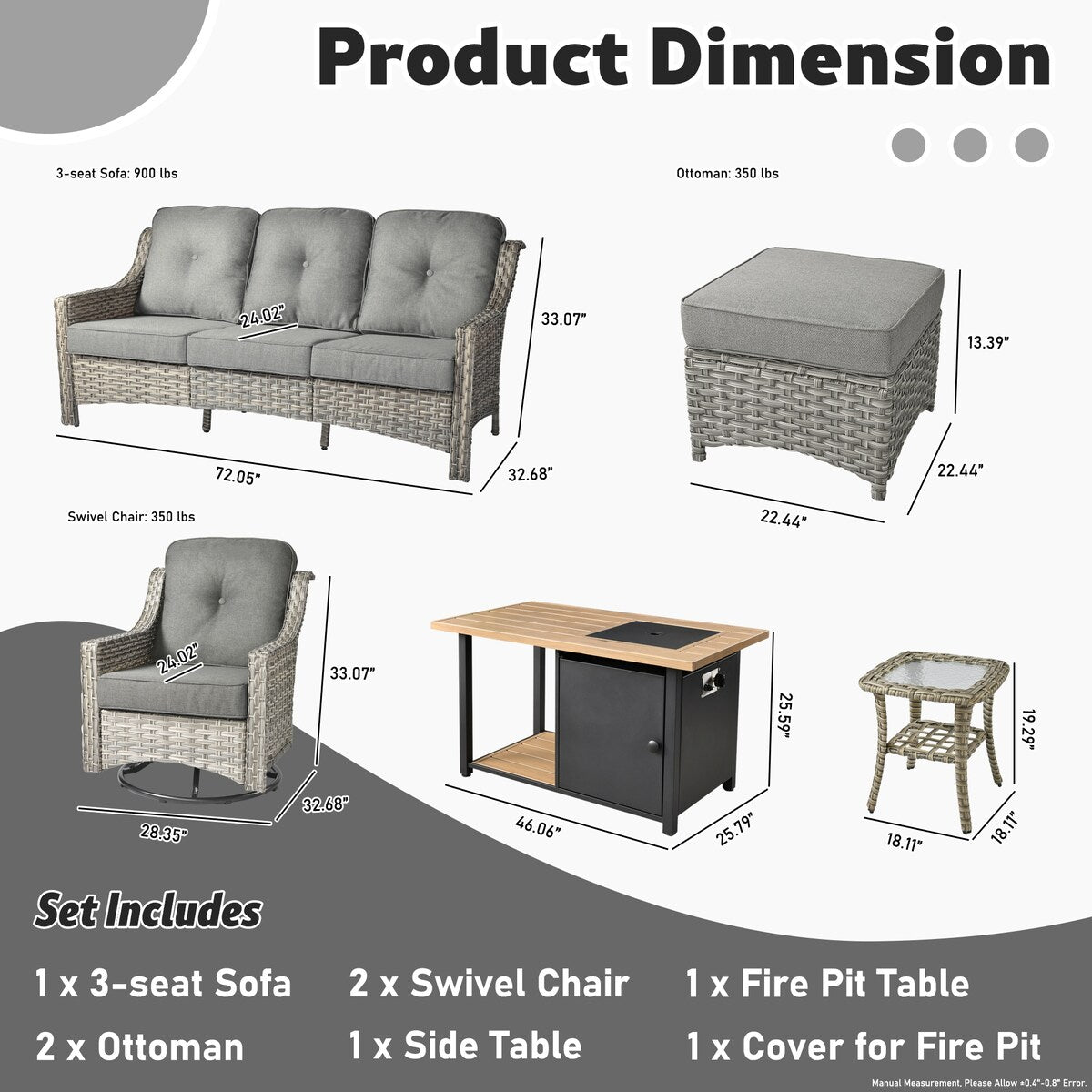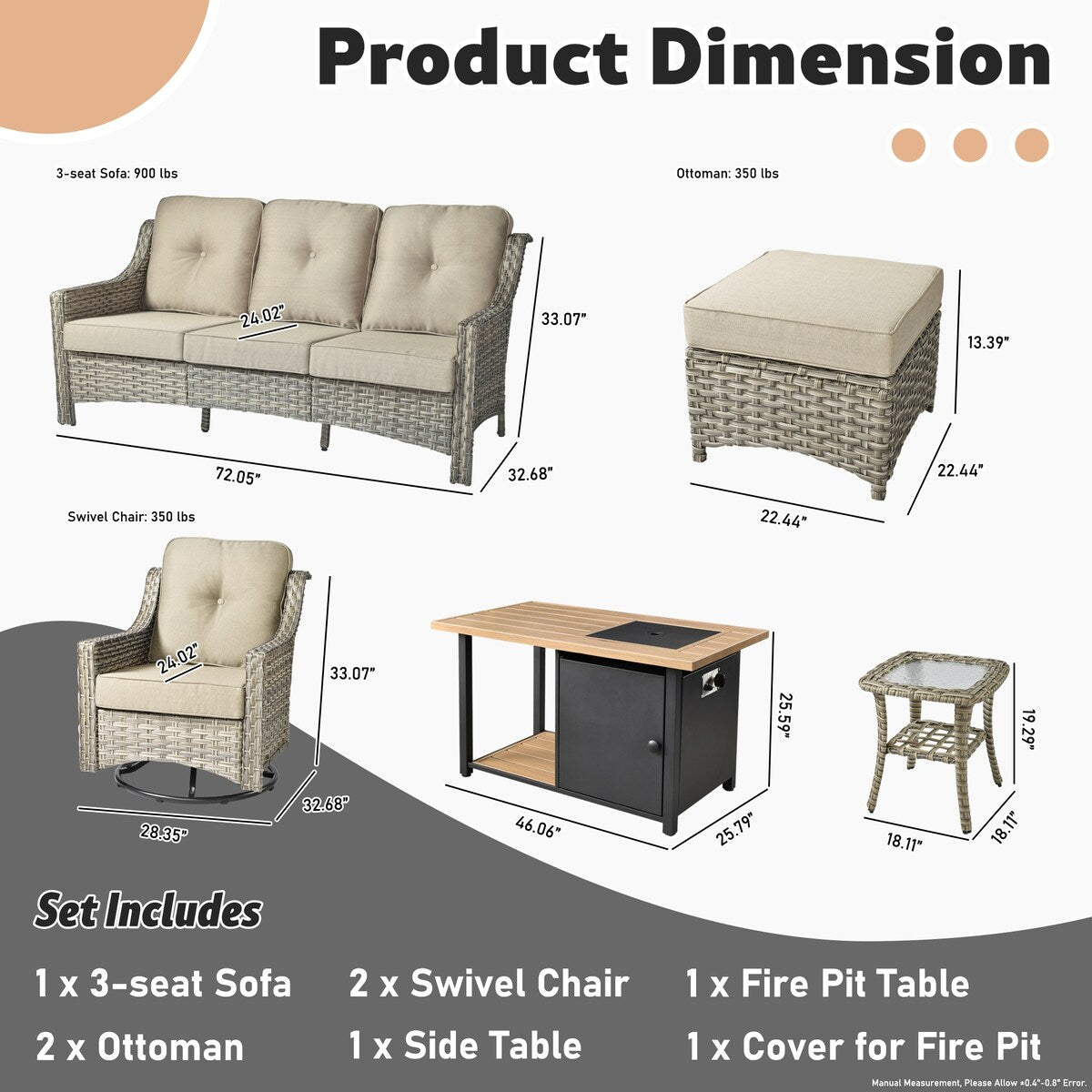 Fire pit table: 46.06' L*25.79' W*25.59' H?
