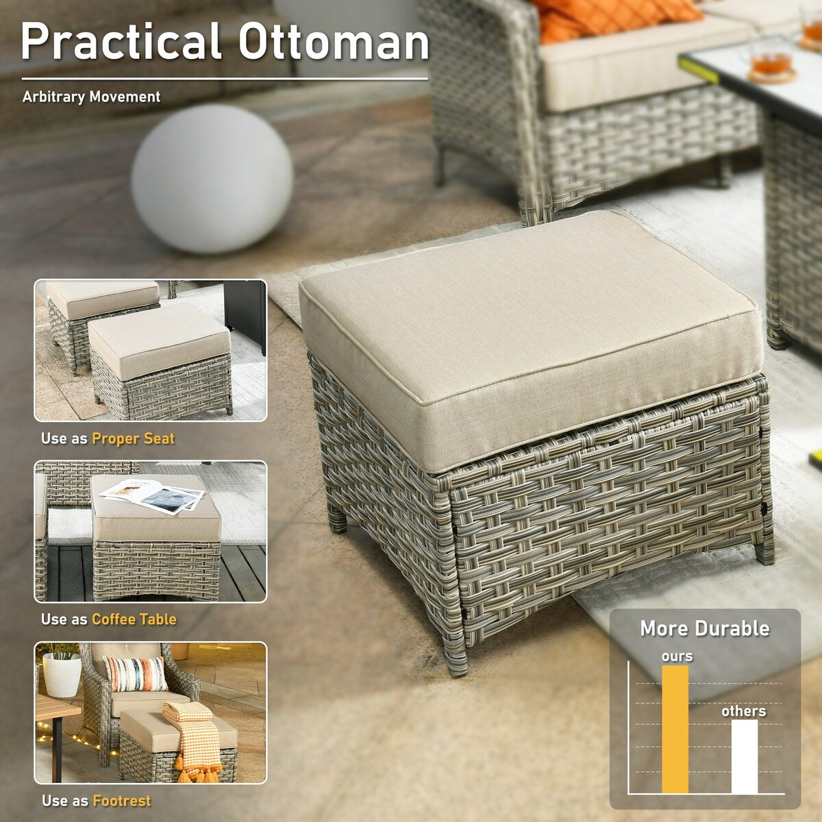 - Practical ottoman can be used as seat, table and footrest