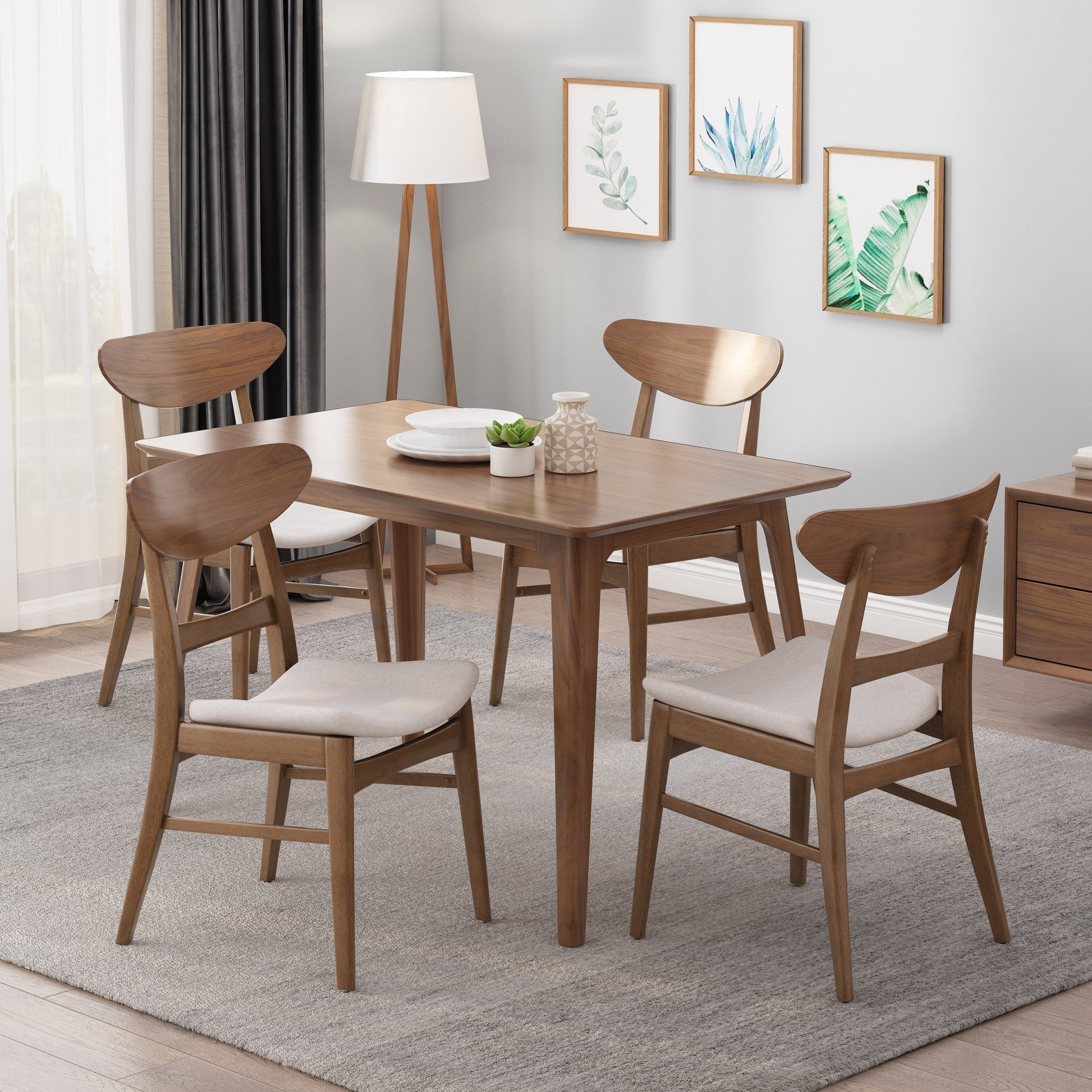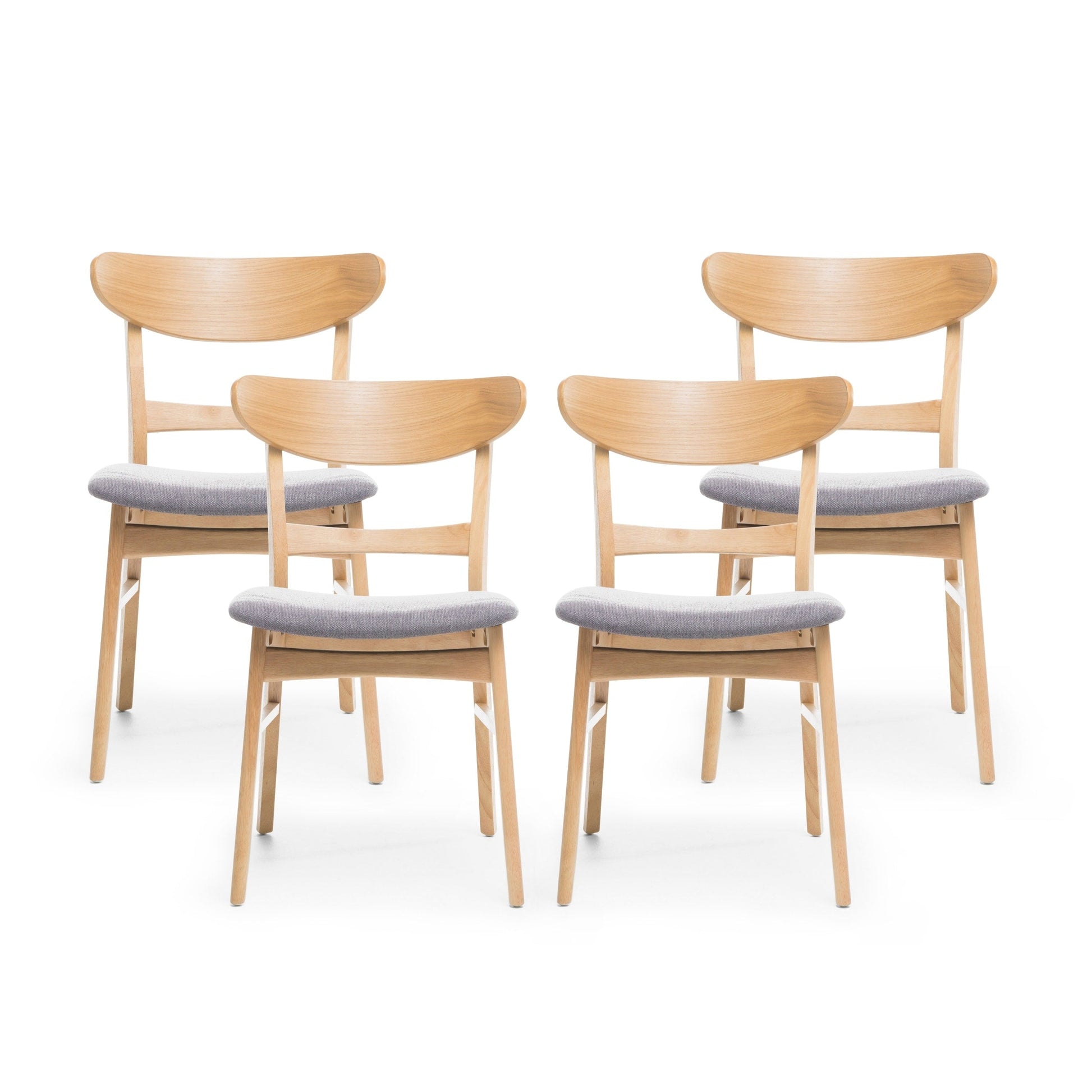 Introduce an elegant touch of mid-century modern style to your dining area with the Idalia Dining Chairs by Christopher Knight Home. Featuring iconic splayed legs and clean lines, this set of four armless chairs is perfect for adding sophistication to any space. The chairs are constructed with a robust rubberwood frame and foam-cushioned seating for firm support. The gently curved backs and beautifully finished wood frames add a refined appearance to these chairs. Choose from six different options, each featuring a gorgeous natural-grain look, combined with a stunning finish and beautifully upholstered seats. Assembly is required, and all the instructions and tools needed for assembly are included.