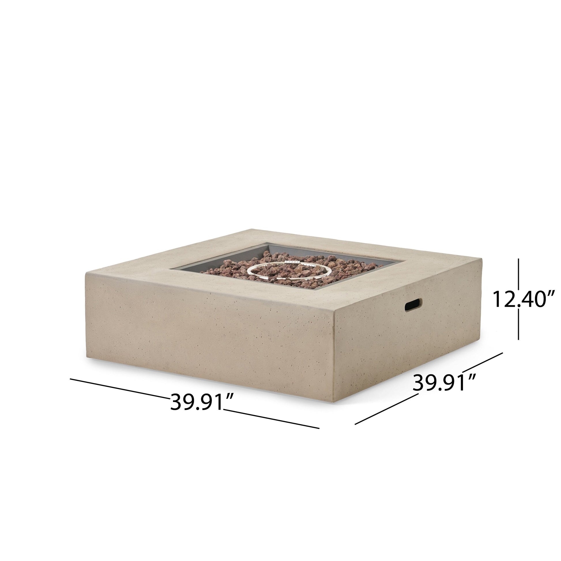 - Fire table: 40 inches deep x 40 inches wide x 12.50 inches tall