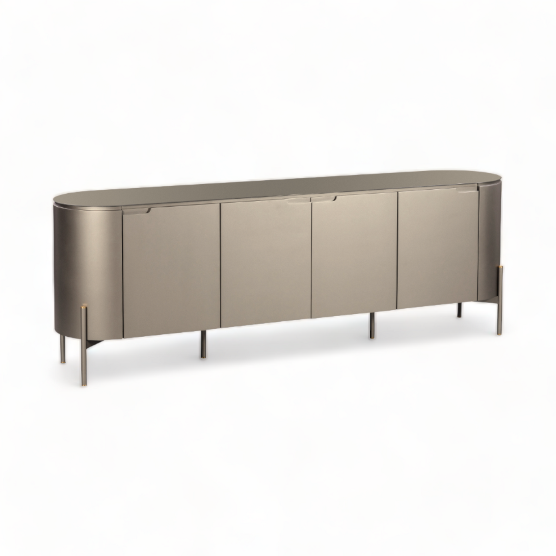 [description] Conçu exclusivement pour les salles à manger modernes Habitus, le buffet India Urano allie beauté de ses formes et fonctionnalité. Il est doté d'un grand caisson aux bords arrondis, de quatre portes de rangement et d'étagères intérieures. Il est doté d'un plateau en verre couleur Urano et de pieds métalliques ronds. Ce grand buffet moderne et remarquable est parfait pour apporter une touche design aux espaces contemporains.