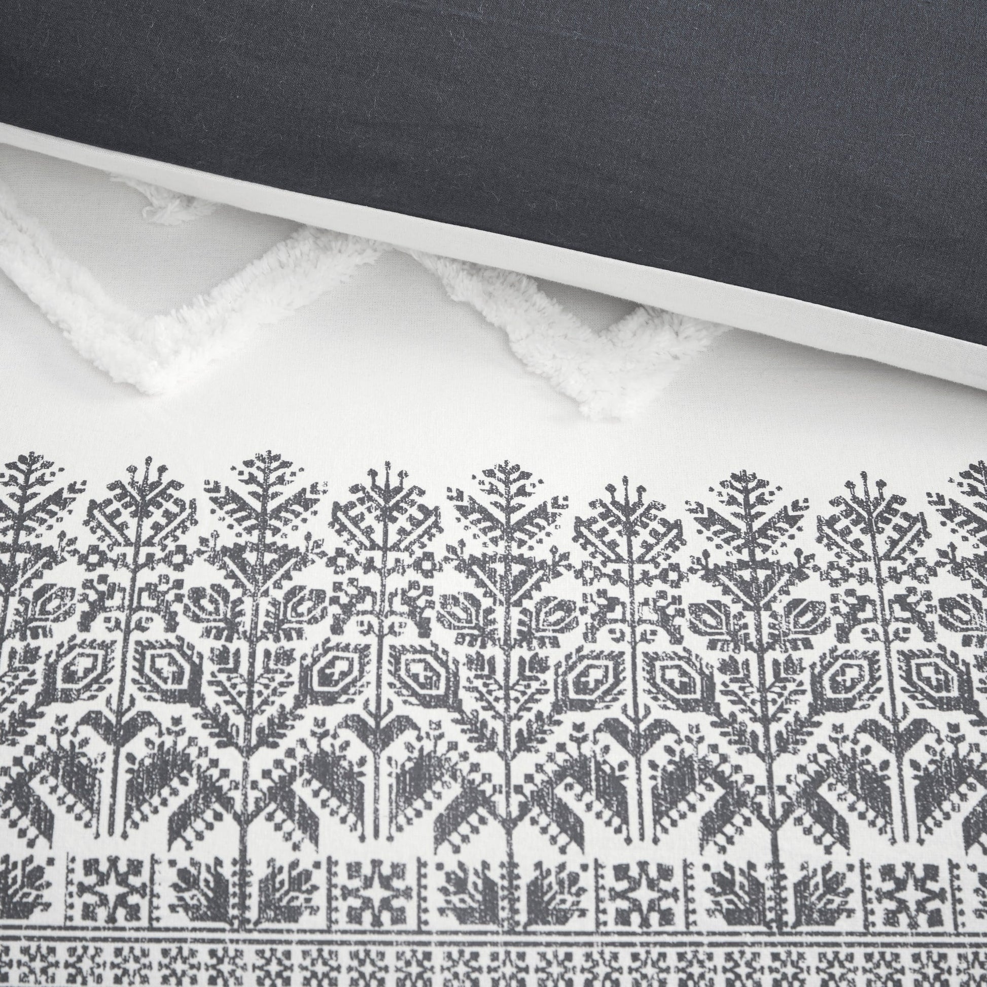 - Farmhouse cotton duvet cover set with tufted white chevron chenille