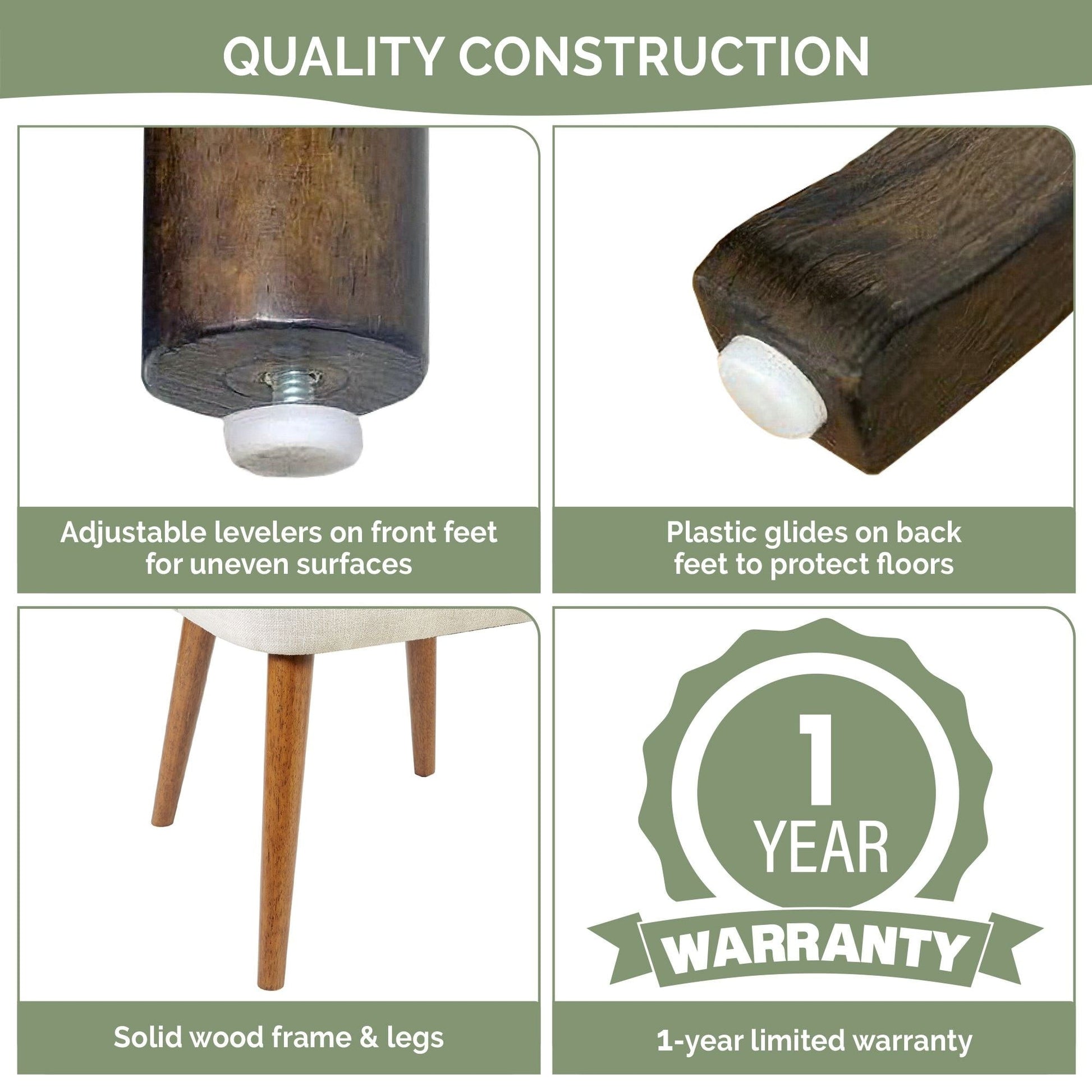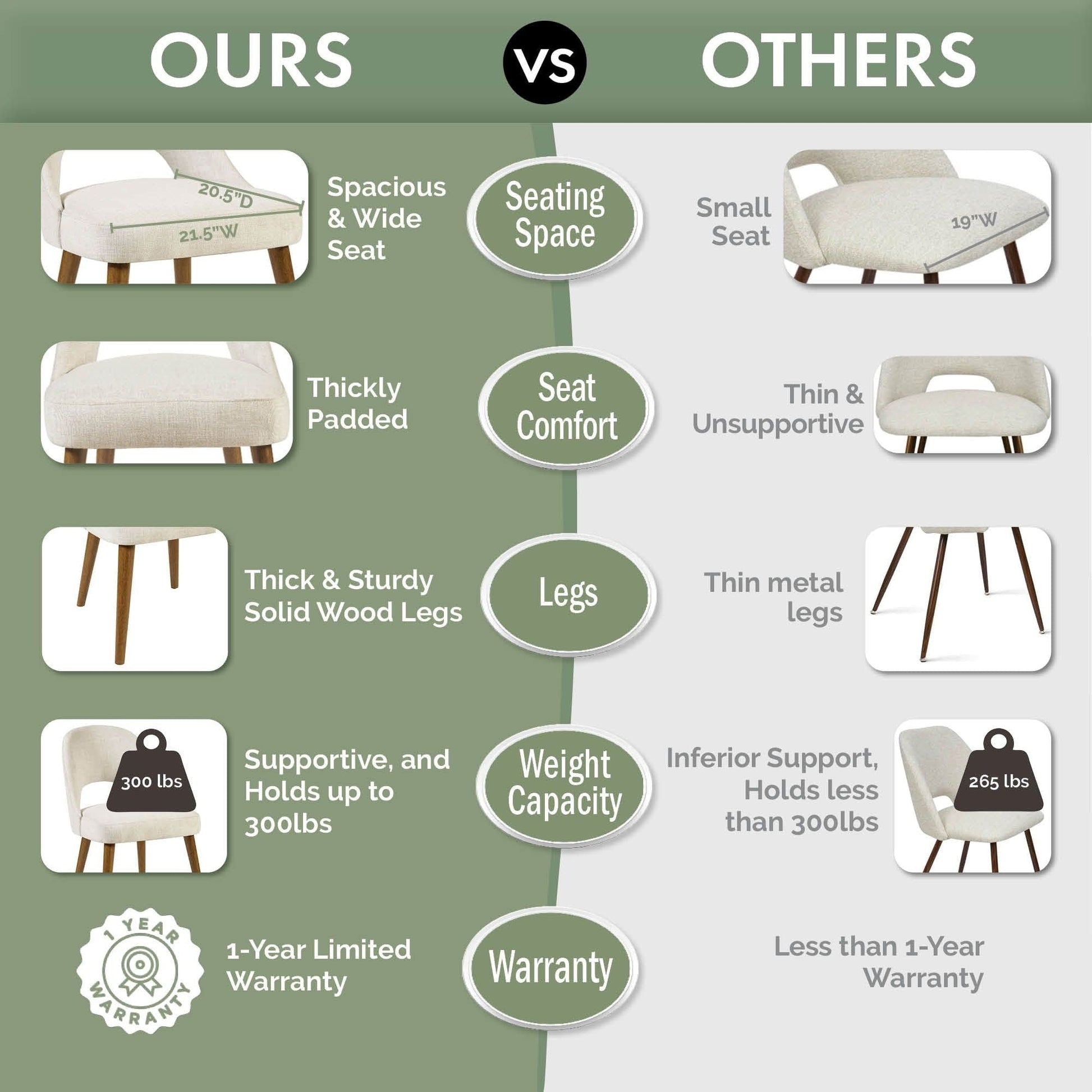 - Sturdy construction with a solid wood frame and wood legs that can hold up to 300 lbs