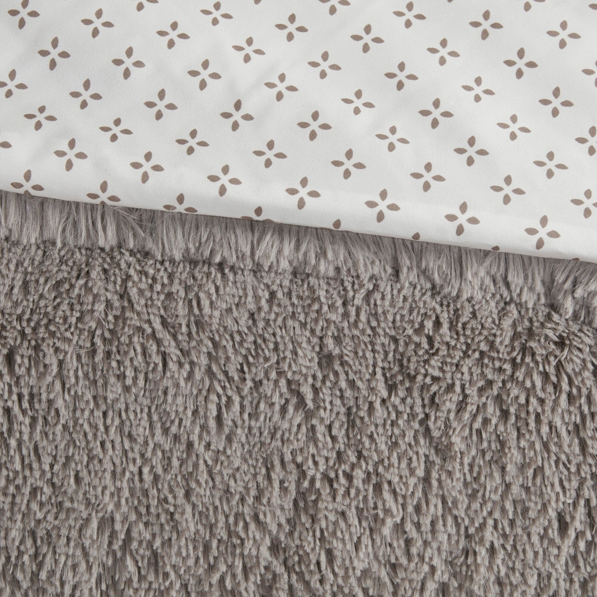 - The Intelligent Design Effie Shaggy faux fur Comforter is very soft and reversible to microfiber with beautiful petals print. Naturally, shedding may occur in the first few washes of the product.