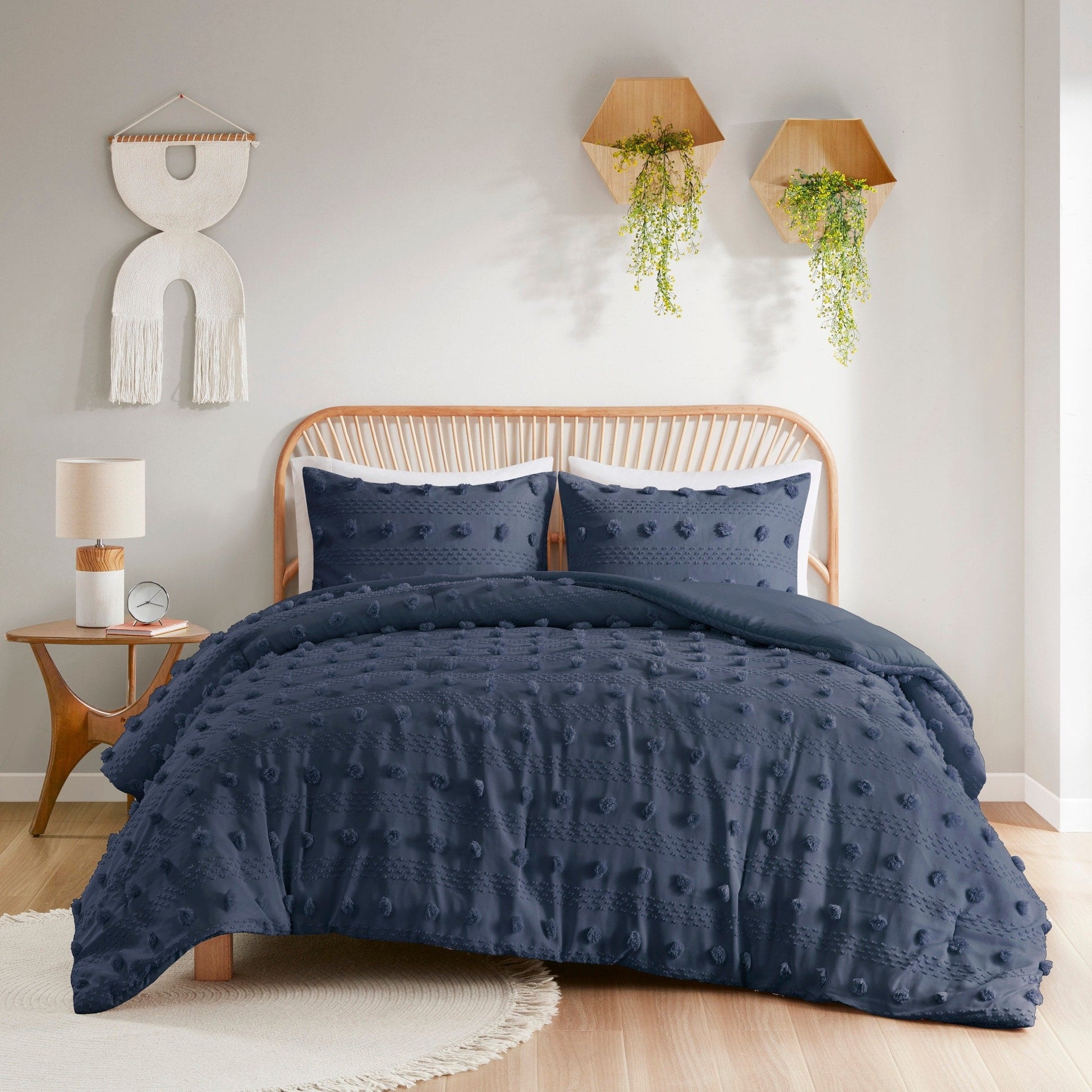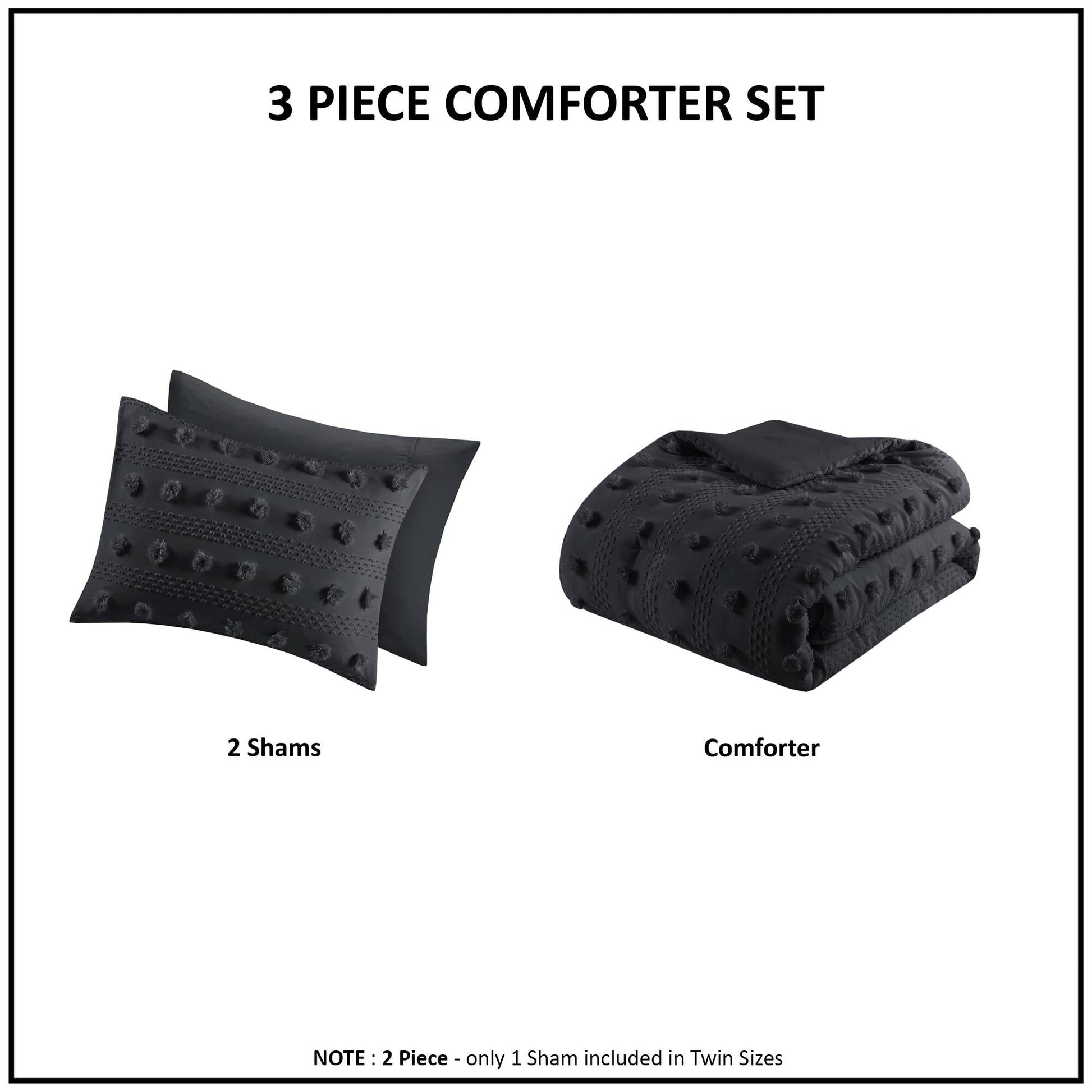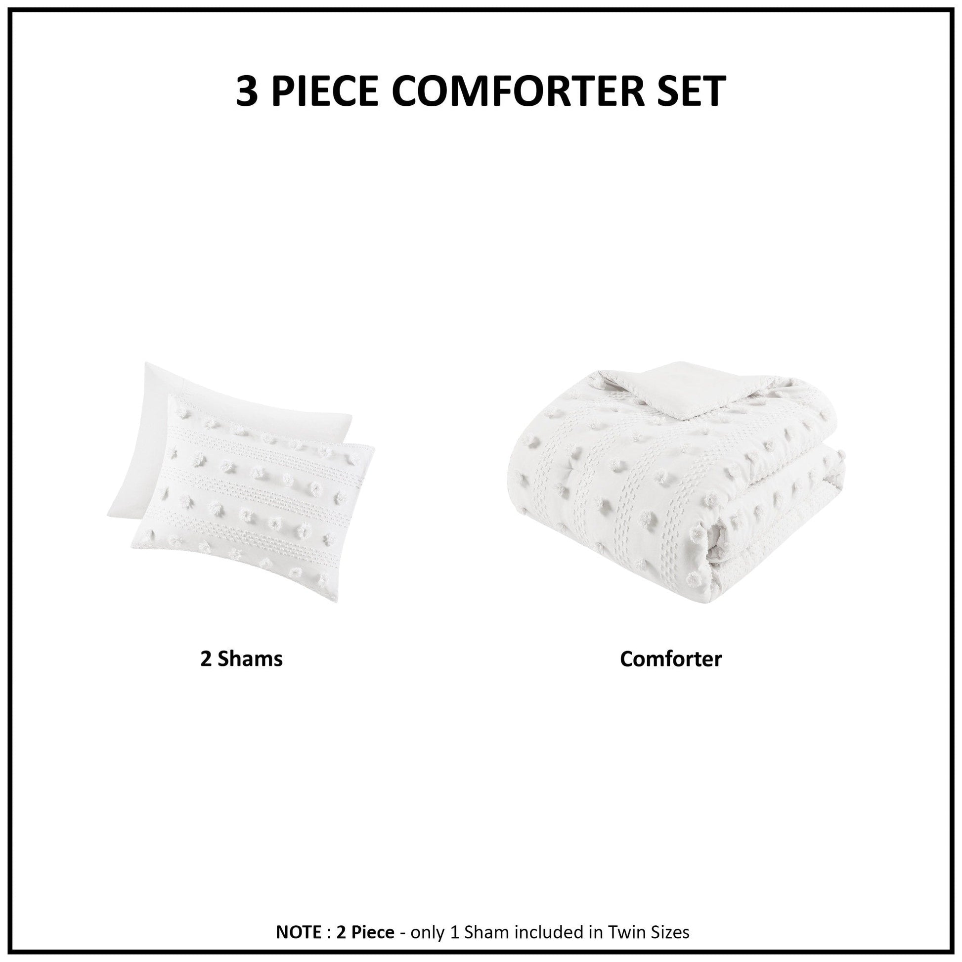 Refresh your bedroom with the elegant style of Intelligent Design's Vera Clip Jacquard Comforter Set. This OEKO-TEX certified comforter features fun and playful clip jacquard pompoms that add dimension to the top of the bed for a lovely look.
