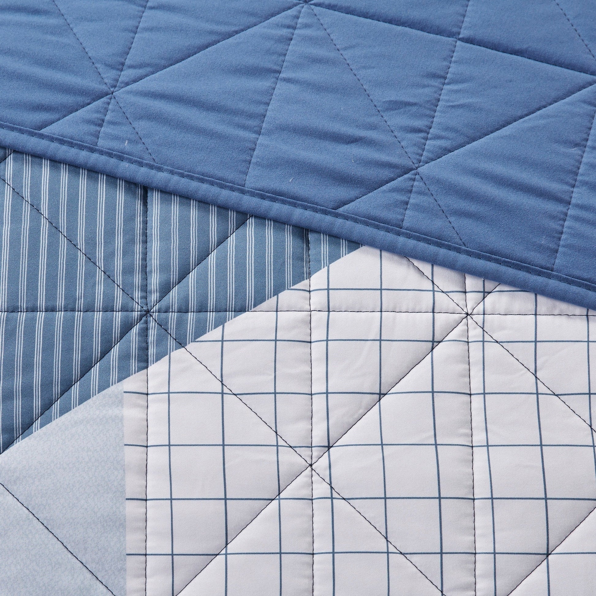 Intelligent Design Wesley Blue Patchwork Printed Reversible Quilt Set