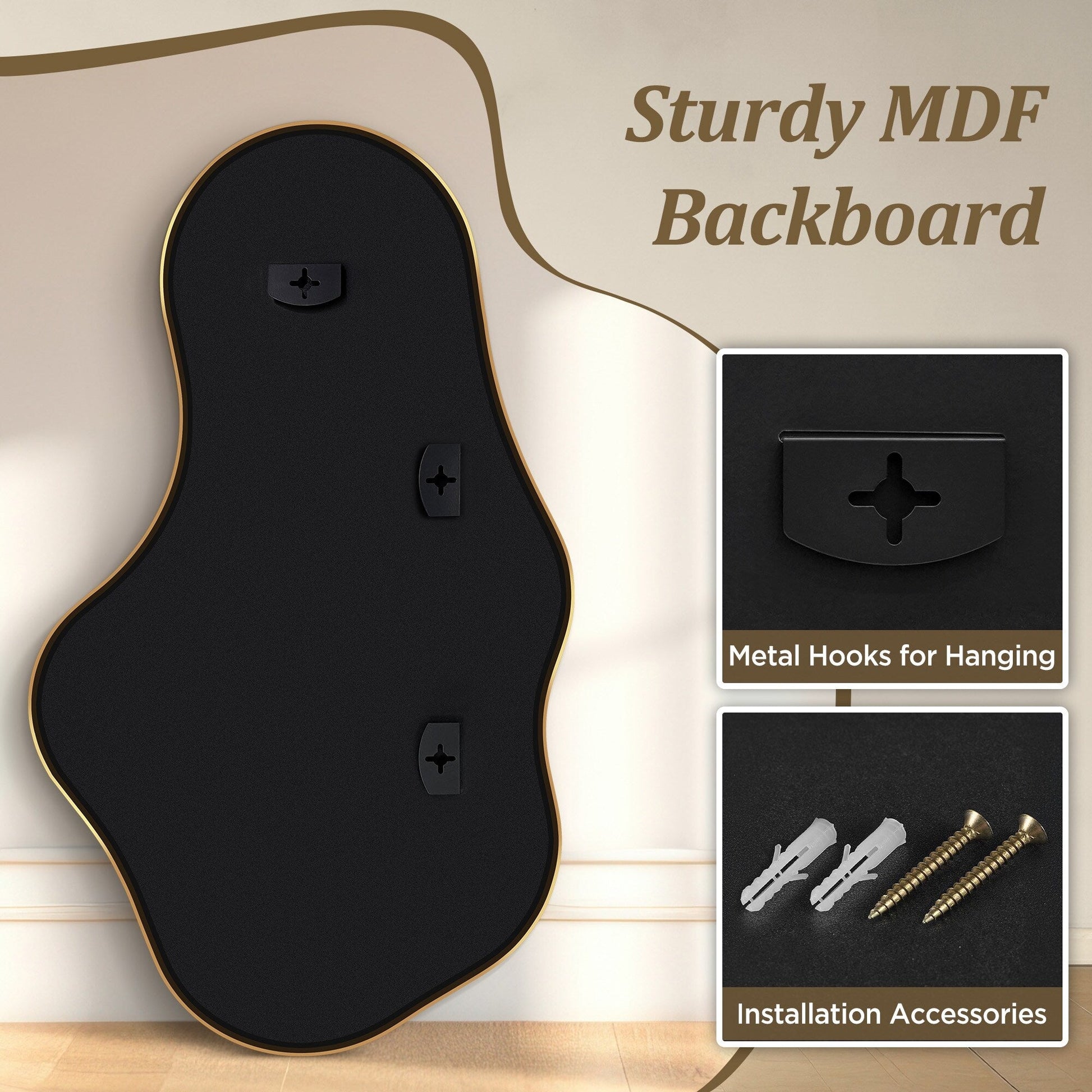 - High-quality Material: This asymmetrical wall mirror is made of brushed aluminum alloy frame, solid MDF backboard and HD tempered glass to enhance its durability and prolong the service life, giving you the best visual and usage experience.