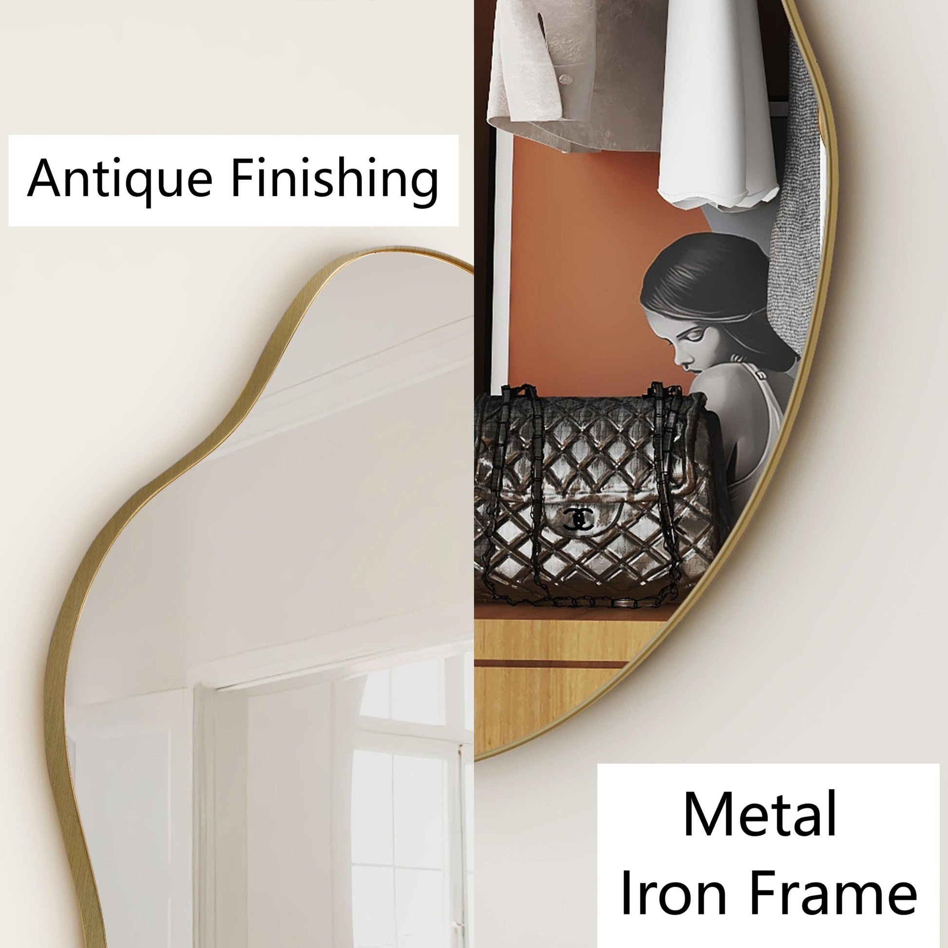- 【Unique and Modern Design】Featuring modern lines and a unique design, this irregular mirror serves as a stunning decorative piece. Perfect for living rooms, entrance halls, walkways, and bedrooms, it enhances the artistic appeal of any space.
