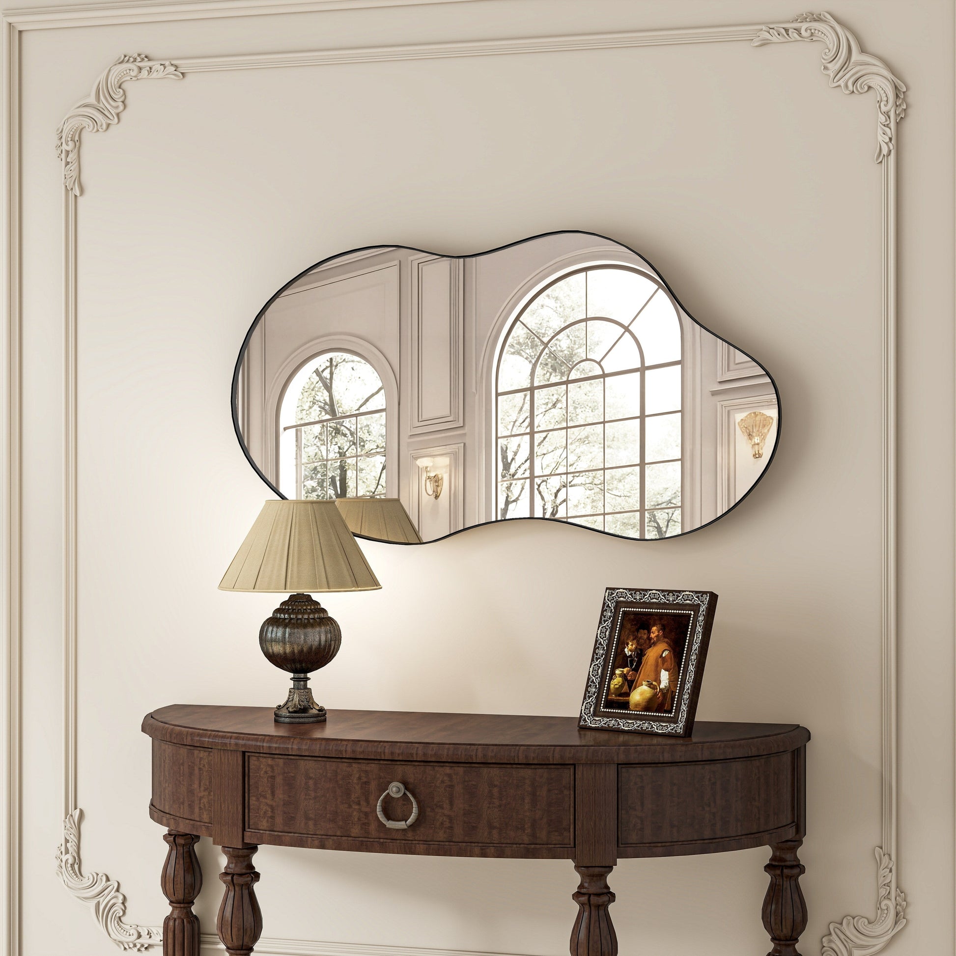Kind Reminder: This mirror is handcrafted, slight gaps may exist between the frame and mirror, and minor color variations in the frame may occur due to craftsmanship.