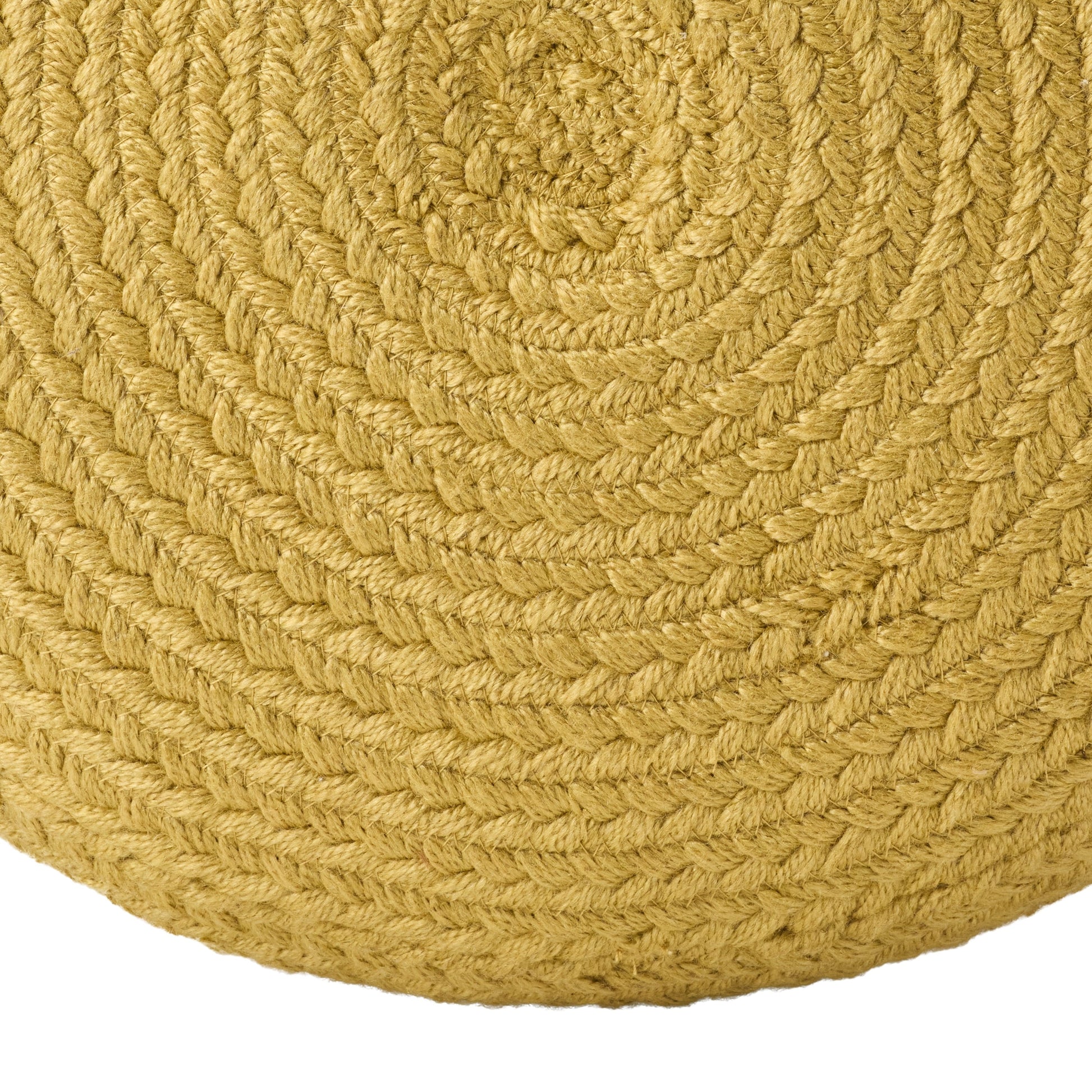Bring the coastal, globally inspired vibes of natural fiber to your indoor or outdoor living space with the Jaipur Living Saba Solar Indoor/Outdoor Pouf Ottoman. Boasting a texture-rich cover handwoven from all-weather 100% polyester in India, this round pouf is durable enough to withstand the outdoor elements while mimicking the organic style of jute accents, lending texture and earthy neutrality to any style decor. The braided cord design wraps around a high-quality Styrofoam bean filled cushion that provides you with the perfect amount of comfort and support under your seat or feet. Use this bohemian pouf as an ottoman or foot stool, spare seating, accent table, or decorative accessory to incorporate a coastal piece into your living room, bedroom, patio, or porch decor. With a wide array of color options, it's easy to get just the right look to fit you and your space.