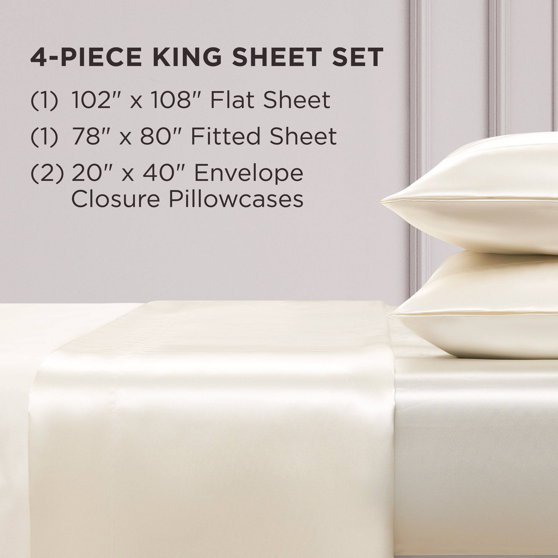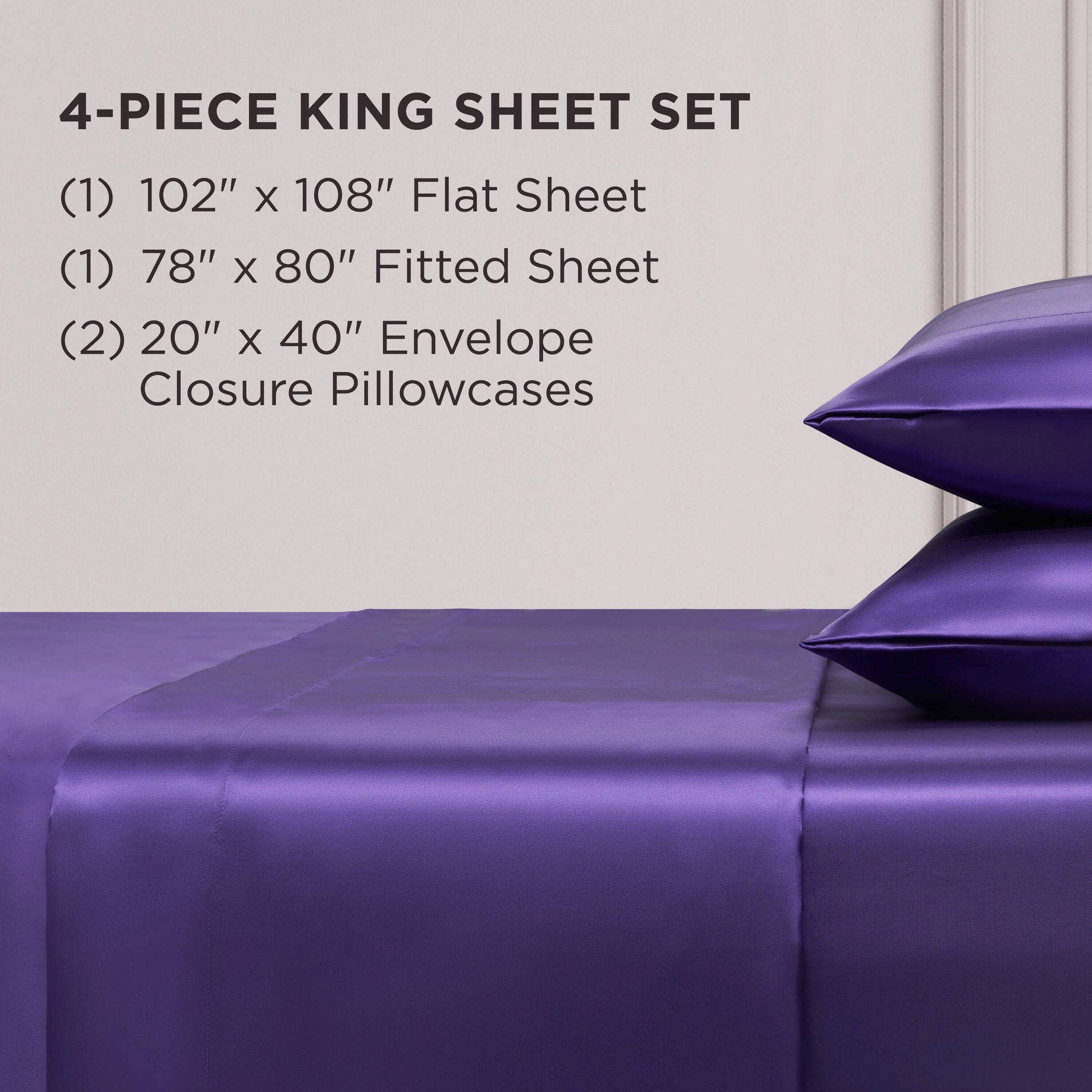 - Each King Size 4-Piece Set Includes Two Pillowcases (20' x 40'), one Fitted Sheet (78' x 80'), and one Flat Sheet (102' X 108')