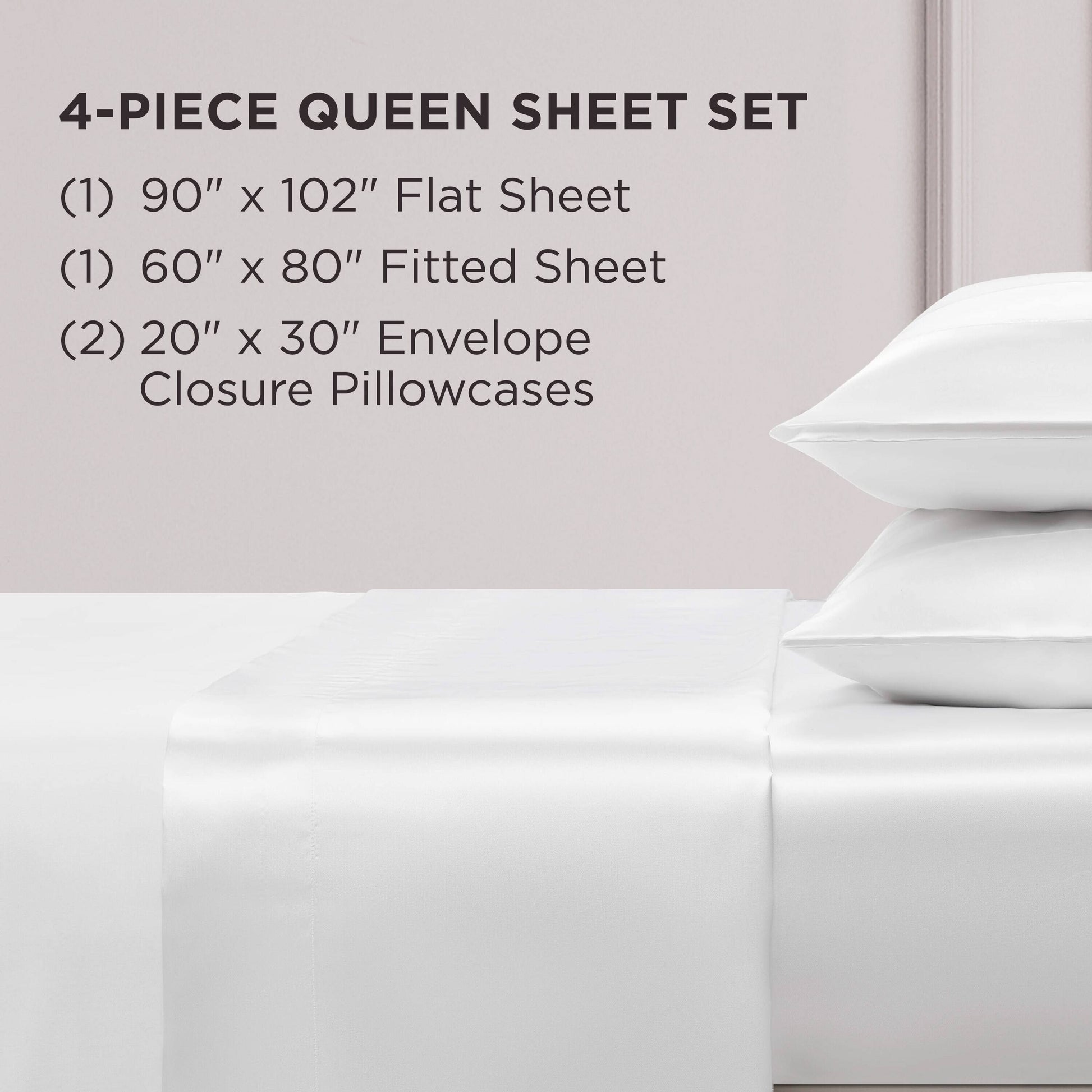- Each Queen Size 4-Piece Set includes two pillowcases (20' x 30'), one fitted sheet (60' x 80'), and one flat sheet (90' x 102')