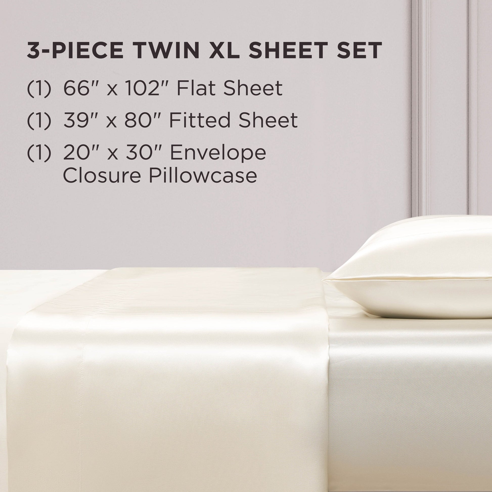 - Each Twin XL Size 3-Piece Set includes one pillowcase (20' x 30'), one fitted sheet (39' x 80' x 12'), and one flat sheet (66' x 102')