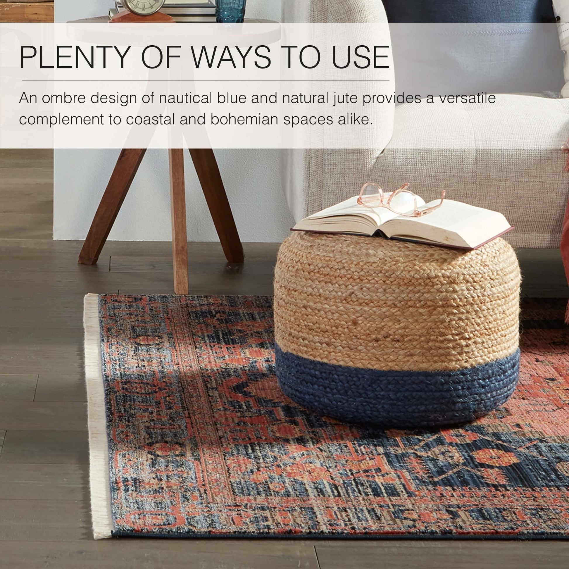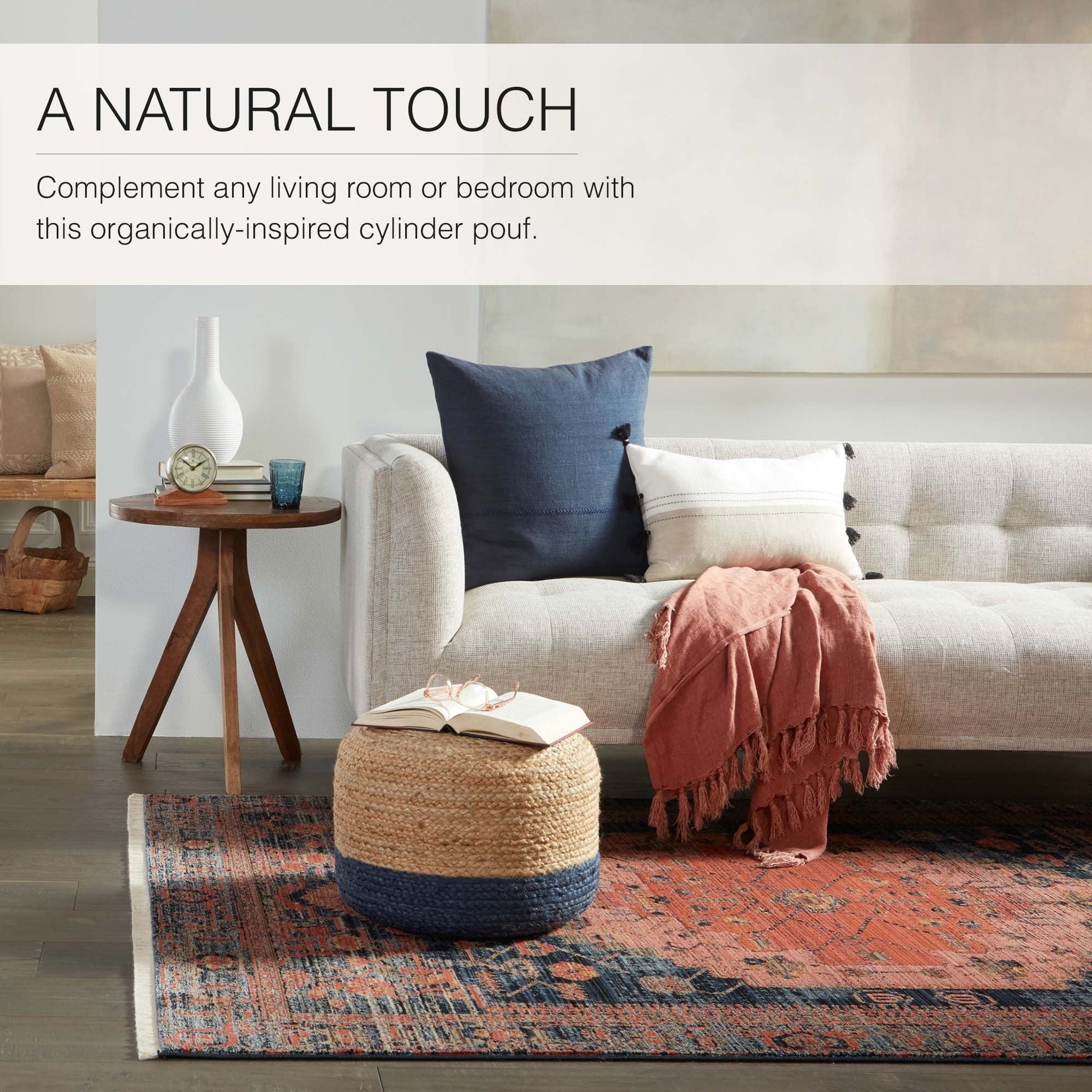 Elevate your home space with the delightfully bohemian style of the Jaipur Living Jute Pouf Ottoman. Natural fibers and a light, natural colorway make this round pouf a breezy coastal farmhouse accent in your living room or bedroom. Boasting a texture-rich cover handwoven of 100% braided jute in India, this handcrafted pouf ottoman lends natural, organic-inspired style, inviting global vibes, and long-lasting durability to any home. The braided cord design wraps around a high-quality Styrofoam bean filled cushion that provides you with the perfect amount of comfort and support under your seat or feet. Use this bohemian pouf as an ottoman or foot stool, spare seating, accent table, or decorative accessory to incorporate a coastal piece into your home decor. With a wide array of both solid and two-tone color options, it's easy to get just the right look to fit you and your space.