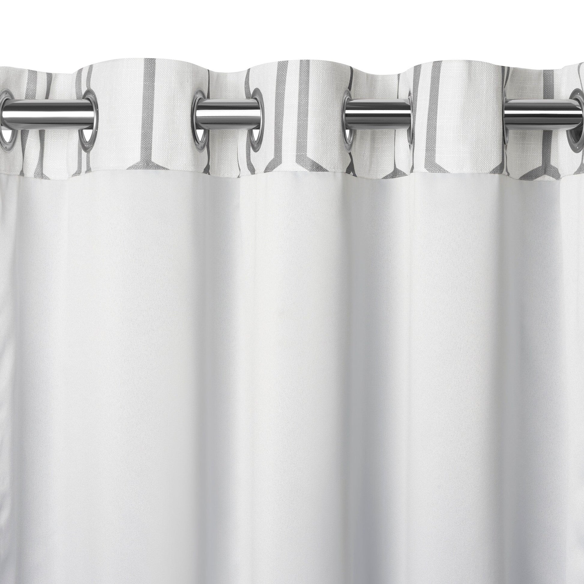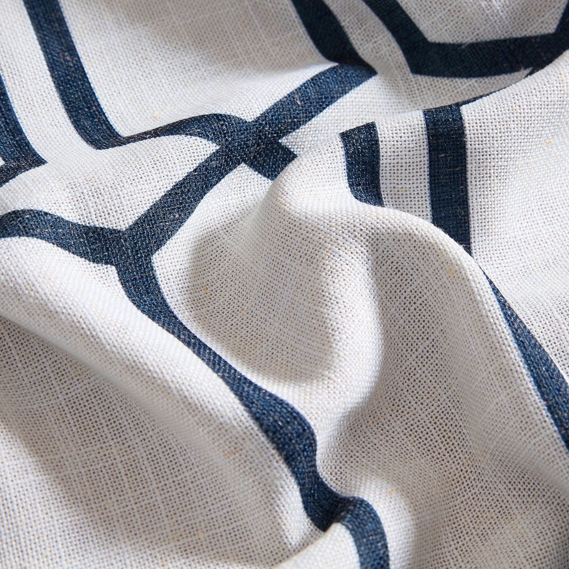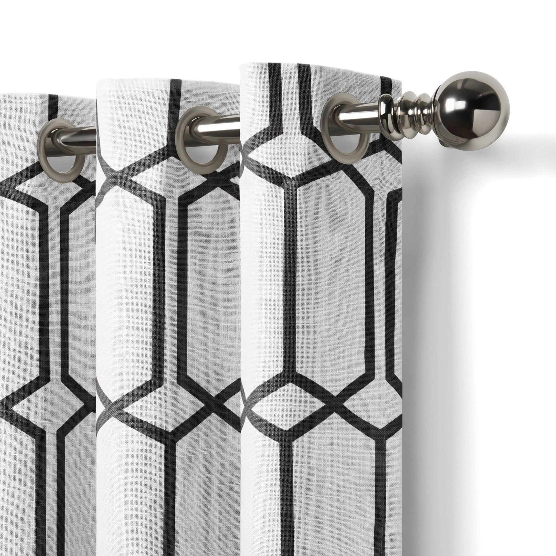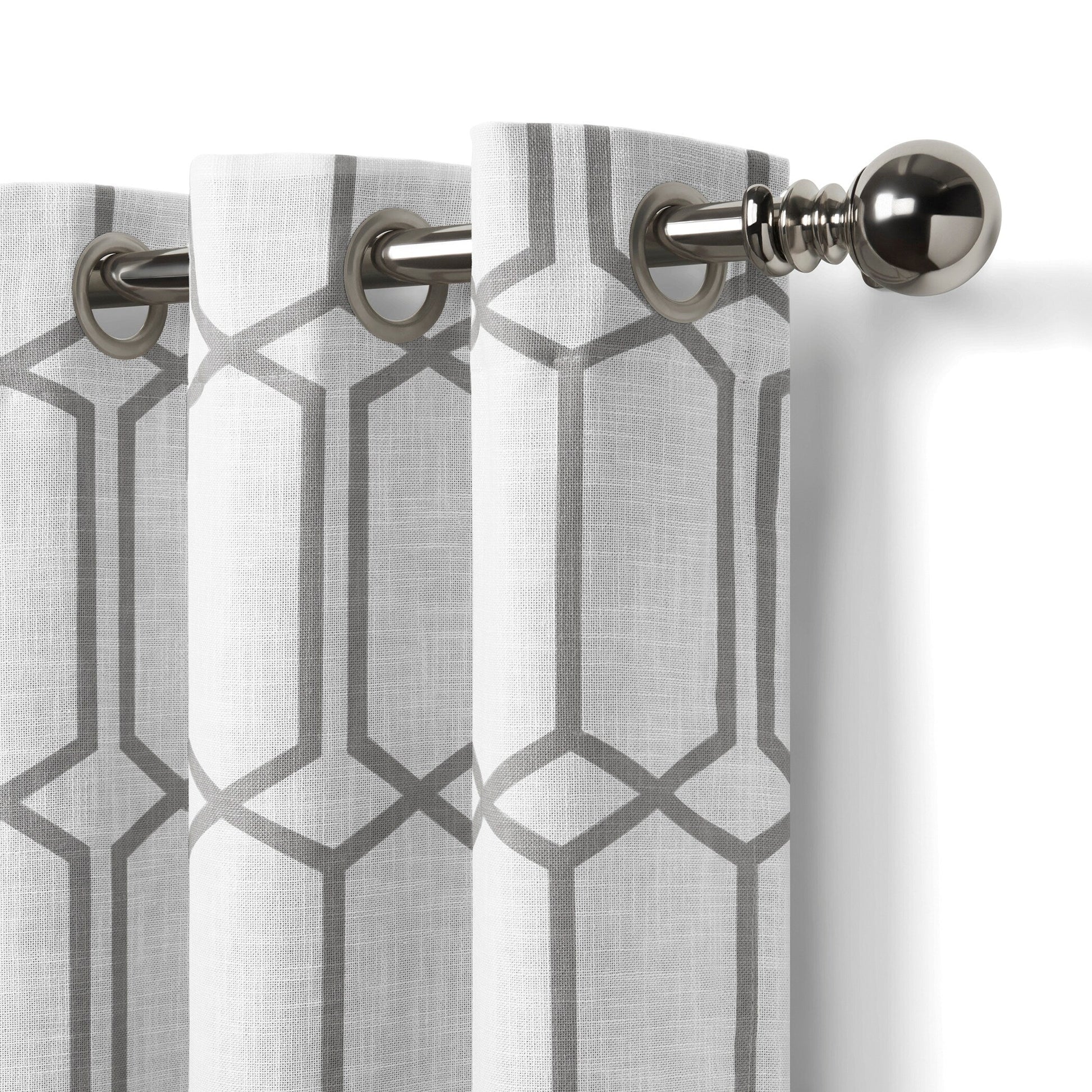 Timeless and elegant, the Kaiden Geometric Room Darkening Window Curtain Collection is sure to bring an elevated, modern touch to your home. Featuring an all-over geometric trellis pattern on a linen blend ground, these panels are perfect for creating a trendy aesthetic that complements a wide variety of decor styles such as eclectic, contemporary, and mid-century. With an off-white liner affixed to the back, the Kaiden panels prevent most light from entering windows to help darken any room for your best sleep. Ideal for bedrooms, living rooms, nurseries, and home offices. Curtain panels feature 1.65 inch brushed silver grommets, which are recommended with up to a one inch rod for maximum movement. Easy care for, these versatile drapes are crafted from a luxurious poly-linen blend and are machine washable.