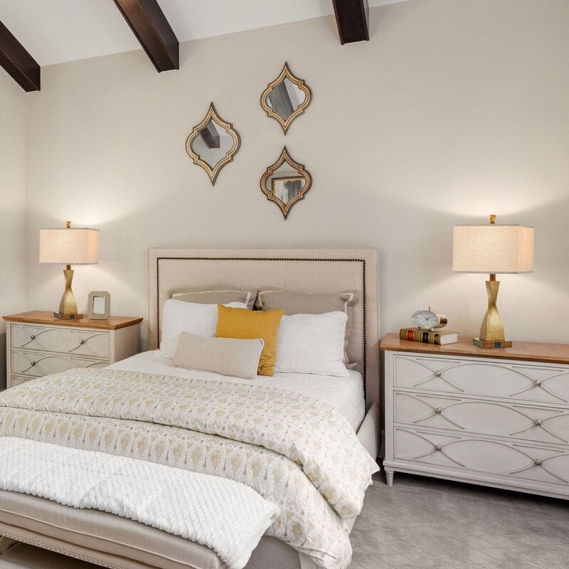 Architecturally designed spiral lamp base with cubic lamp shades, this lamp set is a nice solution for any living space. One USB port and one Type C port included on the square lamp base makes it also perfect for your home office. Distressed finish and contrasting hardware, this lamp set offers a classic country look, add a casual and breezy note.