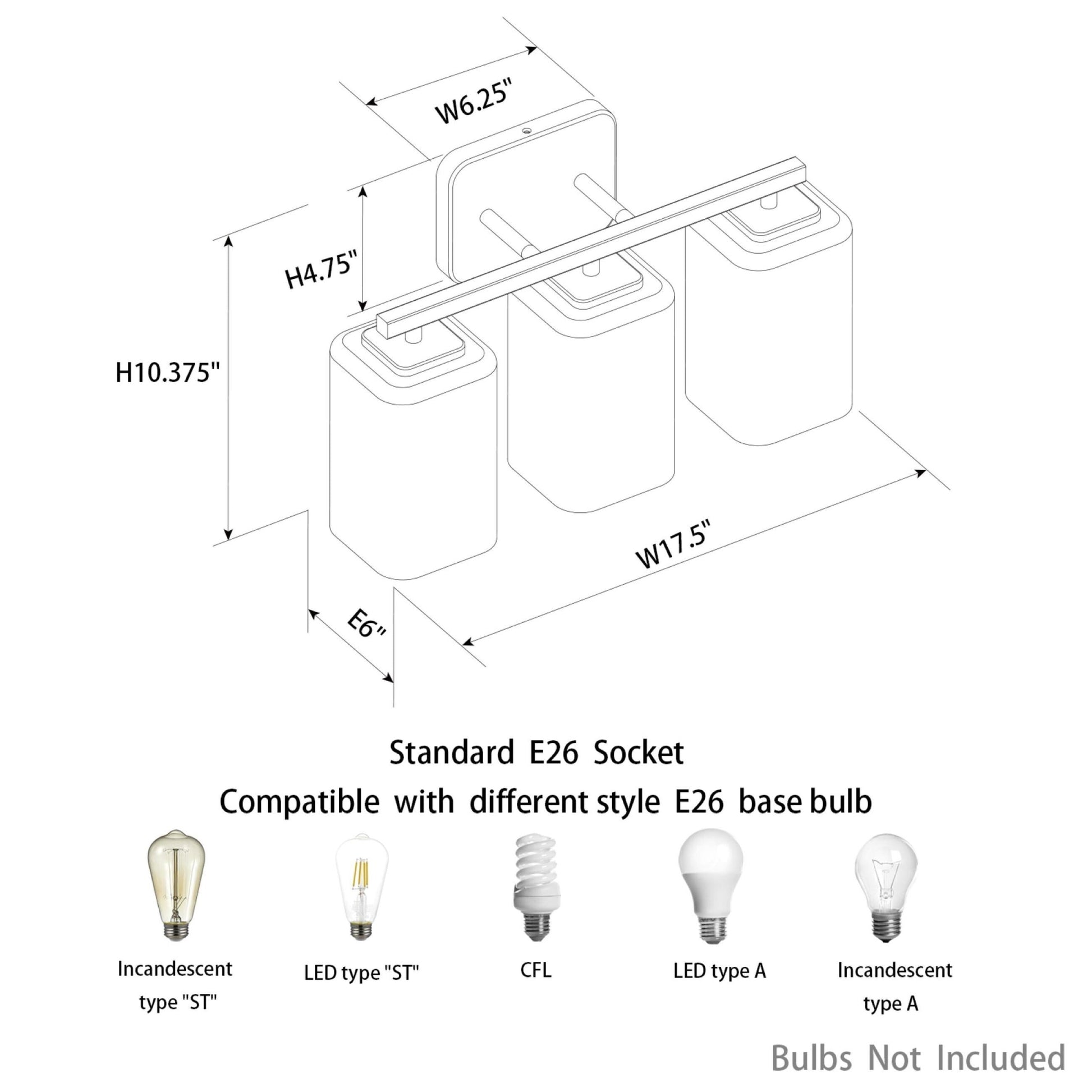 KAWOTI 3 Light Bathroom Vanity Light with rectangular Glass Shade