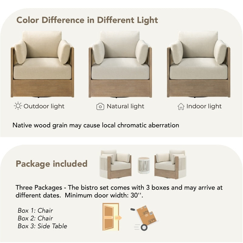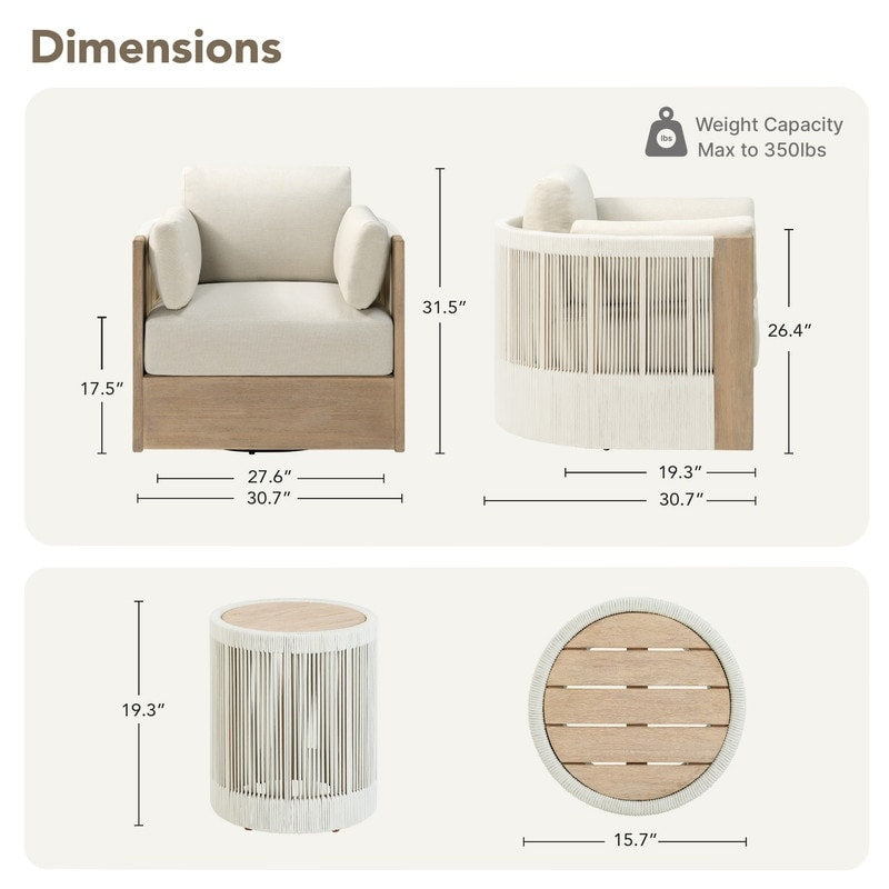 Upgrade your outdoor seating with the Khloe Acacia Wood Swivel Patio Chair. Designed for style and durability, this swivel chair features a sturdy FSC-certified acacia wood frame, handwoven weather-resistant polypropylene rope, and plush cushions for superior comfort. The smooth 360-degree swivel lets you easily turn to enjoy your surroundings. Ideal for patios, balconies, and gardens, this outdoor furniture blends modern design with all-weather resilience. Enjoy a sleek look, effortless maintenance, and long-lasting quality. Perfect for outdoor relaxation!