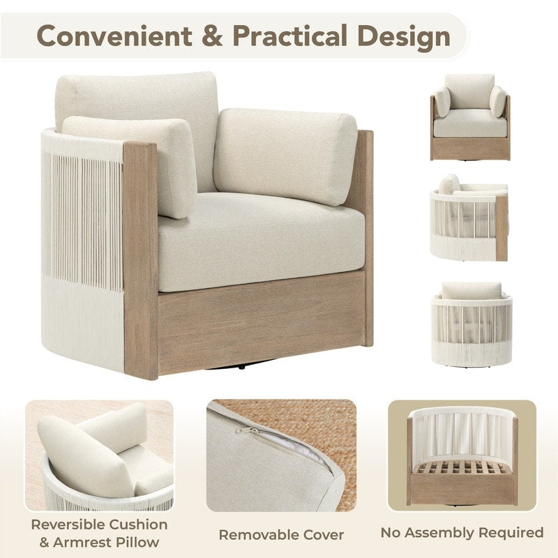 Khloe Outdoor Wood Patio Furniture Swivel Chair