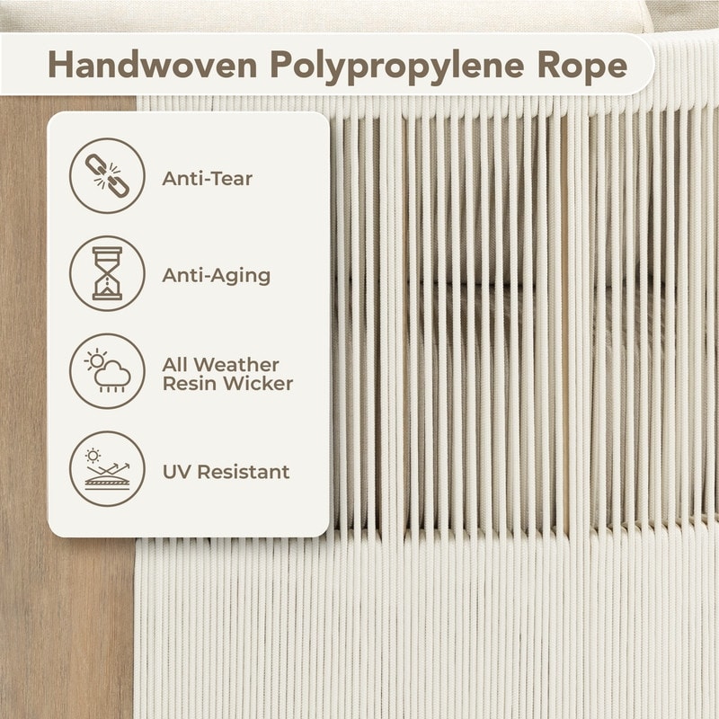 - Easy Maintenance - Water-resistant cushions & handwoven rope can be spot cleaned