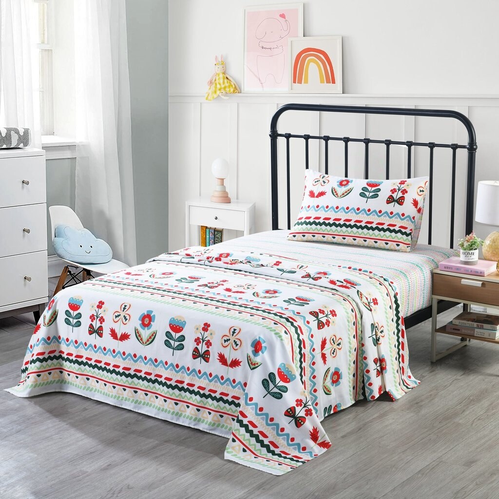 Make bedtime enjoyable with this Kids Cotton Sheet Set! Made from 100% cotton, this sheet set is both comfortable and breathable, ensuring a good night's sleep. The fun and playful designs are perfect for any young boy or girl, making them eager for bedtime. This sheet set is easy to care for and machine washable. Available in Twin and Full sizes.