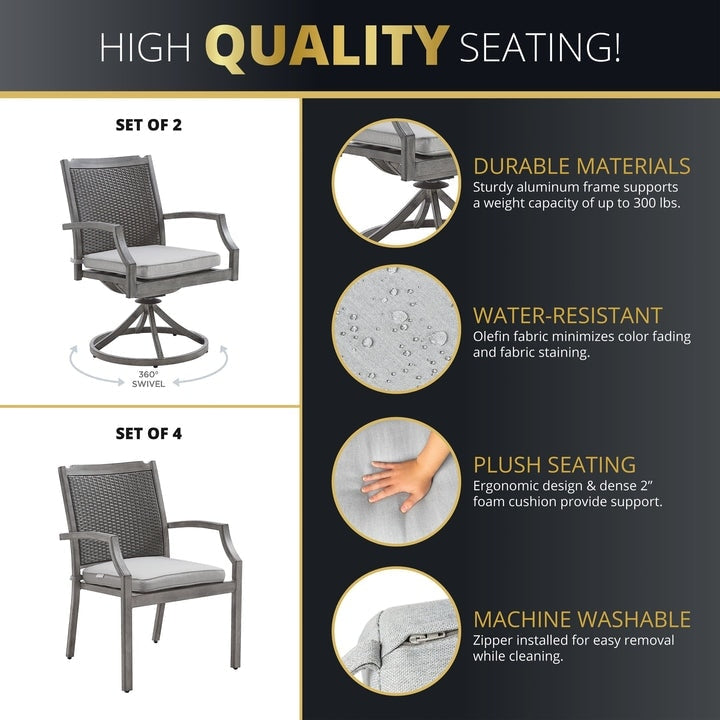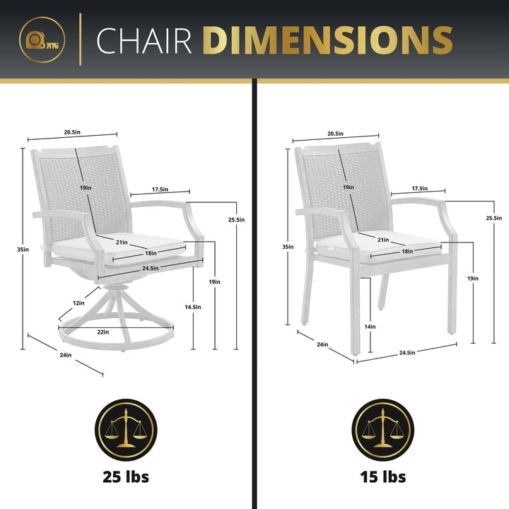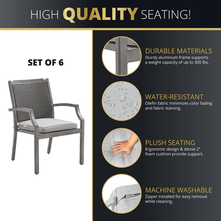 - Comfortable Design: The pre-assembled outdoor dining chairs feature contoured backs for support and come with 2' cushions for relaxation and comfort. The cushion covers are removable with zippers and machine-washable for long-term durability.
