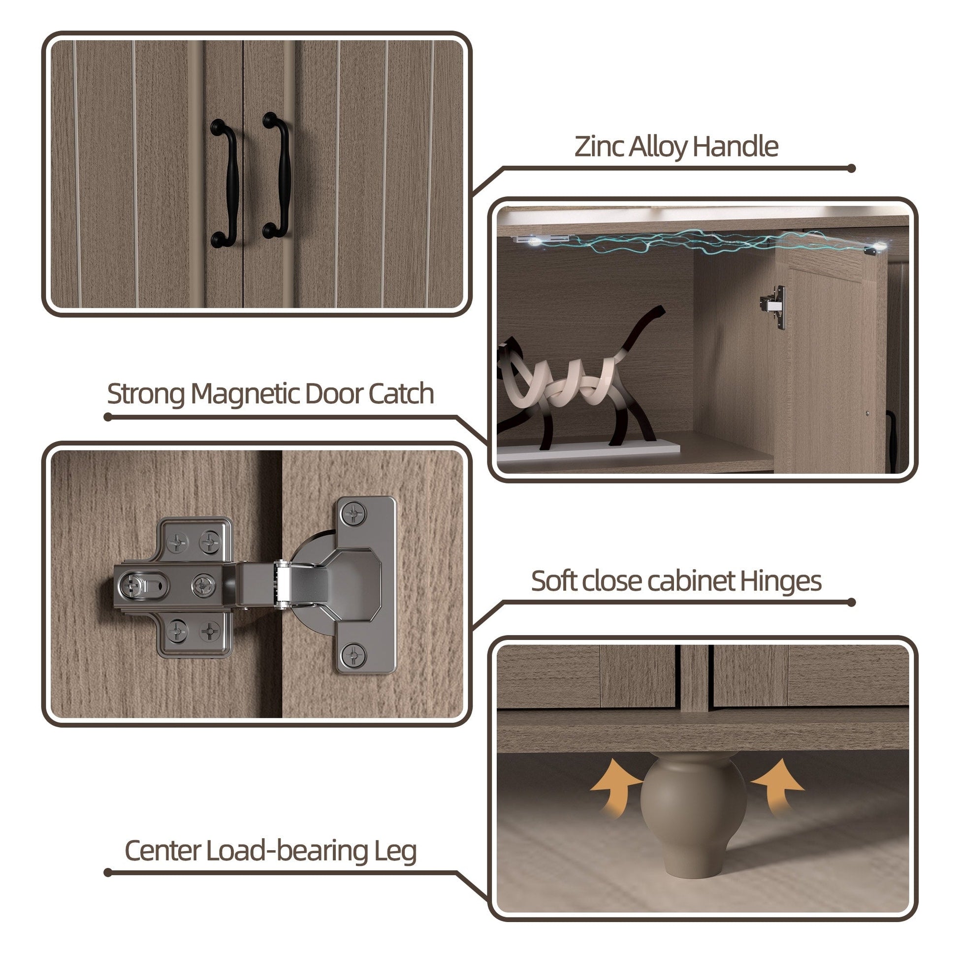 This buffet will be a great choice for your home. The buffet is designed by MDF materials and wooden legs, which is durable and water resistant. This cabinet includes 4 doors that may accommodate your kitchenware and other knickknacks. You can also choose to remove the shelf to store bulky goods. Staying organized has never been easier.