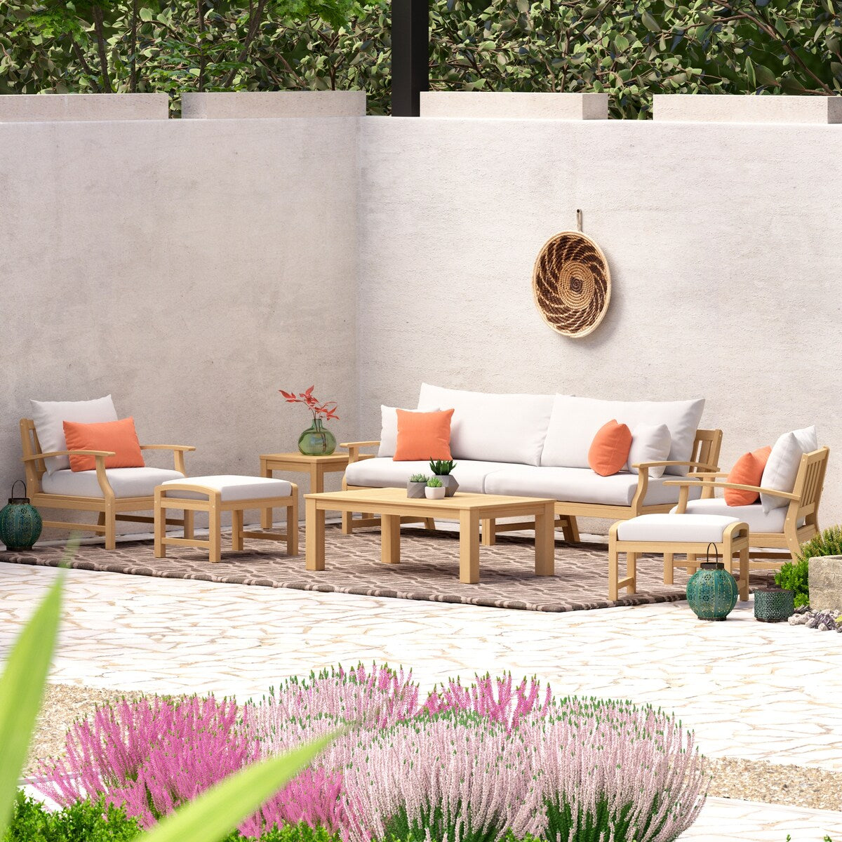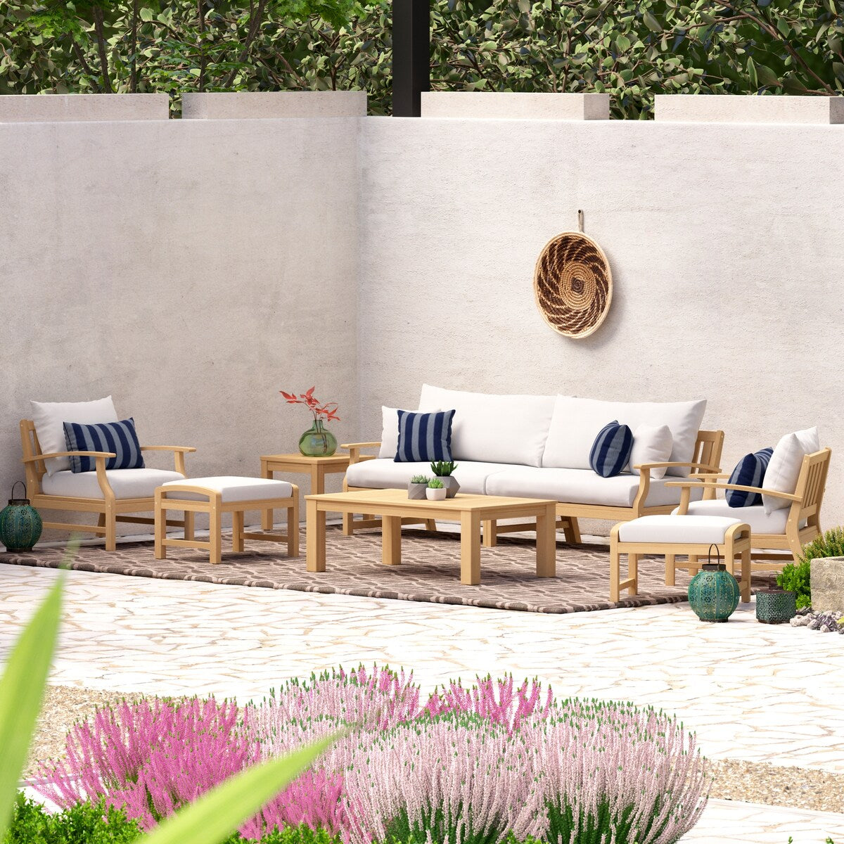 This expertly crafted 8-piece set is the ideal al fresco entertainment piece. Made entirely from acacia wood, it is durable and easy to maintain. With its traditional style, it easily elevates any patio into the perfect place to relax.