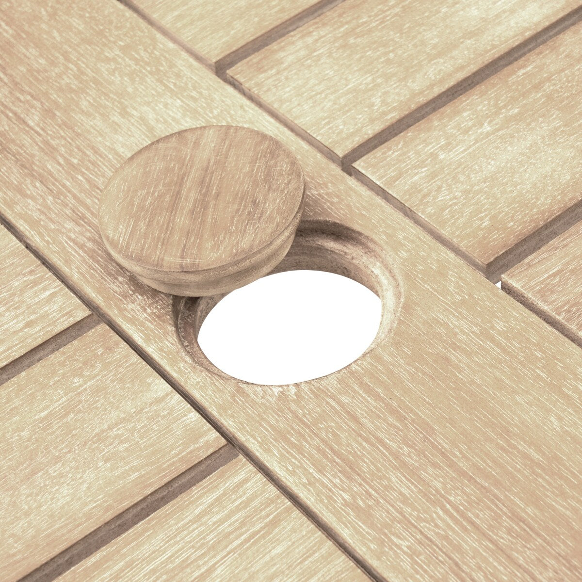 Take your friends and family for a meal outdoors with the Kooper 9-Piece Dining Set. Made with weather resistant acacia wood, this piece settles seamlessly into the beauty of the landscape. There's never been a better way to get more sunshine in your life.
