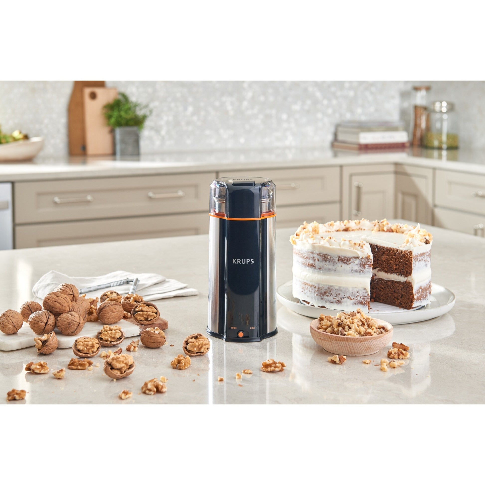It is called the ULTIMATE grinder, because it is a kitchen tool you will reach for three times a day. In the morning, easily and quietly grind fresh coffee in less than 15 seconds for the perfect morning brew. At noon, blend your own spices for that summer BBQ and give your taste buds a surprise. And for dinner, with little to no prep, grate cheese in 5 pulses for the smoothest mac-n-cheese sauce. Designed to be powerful, quiet, and easy to use. A patent pending Silent Vortex Technology makes this the quietest grinder, and a powerful DC Motor allows for High and Low speed grinding to tackle all of your kitchen needs, and a stainless steel removable grinding bowl makes cleaning up easy.