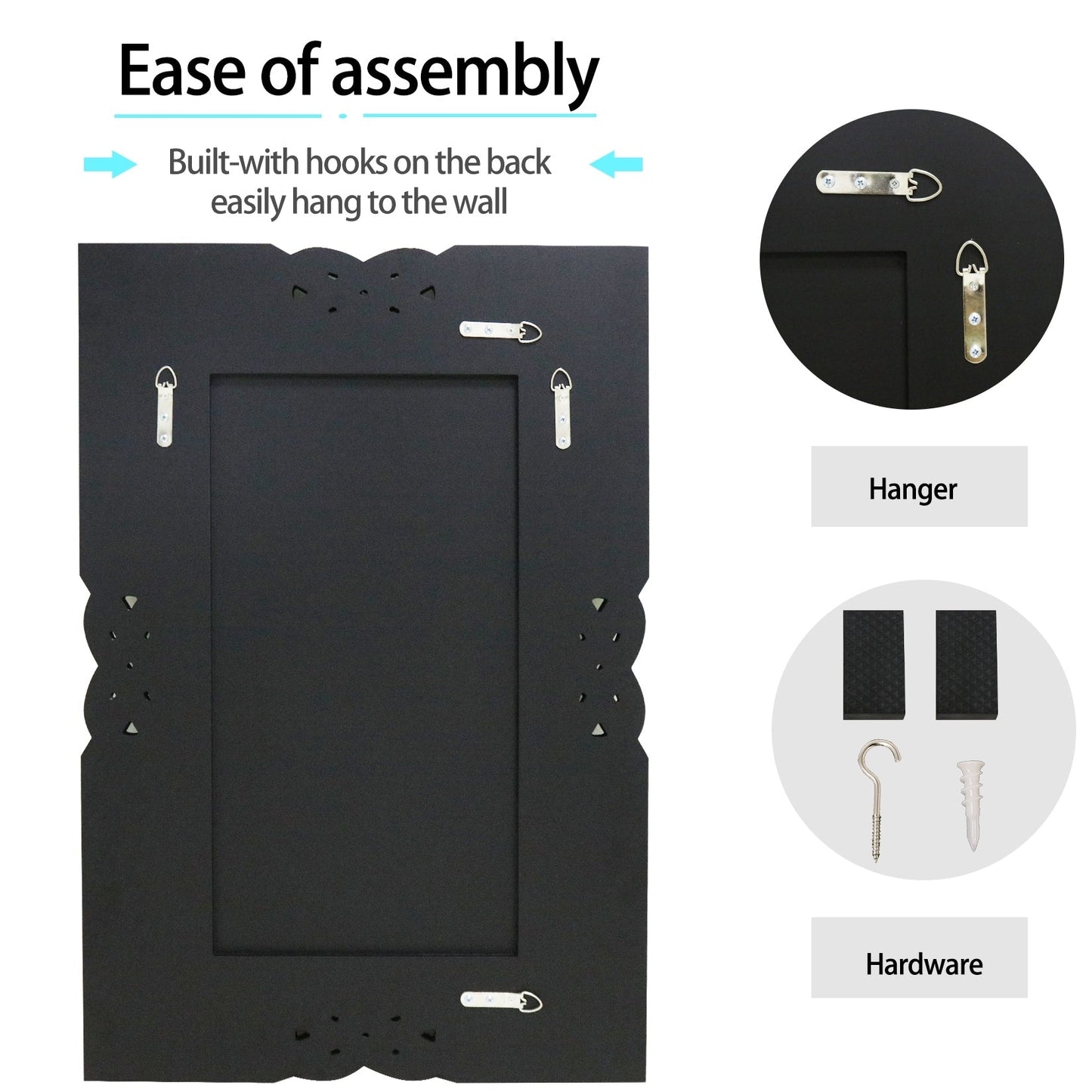 Hung the mirror with four D-ring hooks on the back, both support hanging vertically or horizontally.